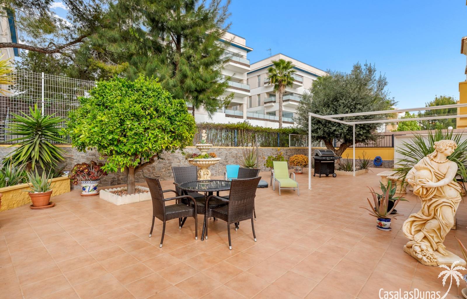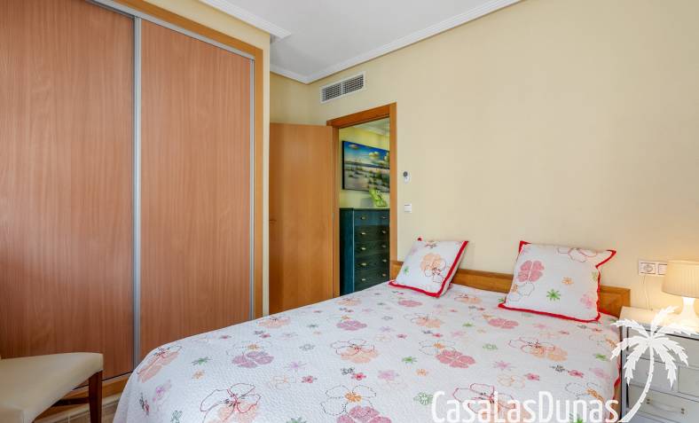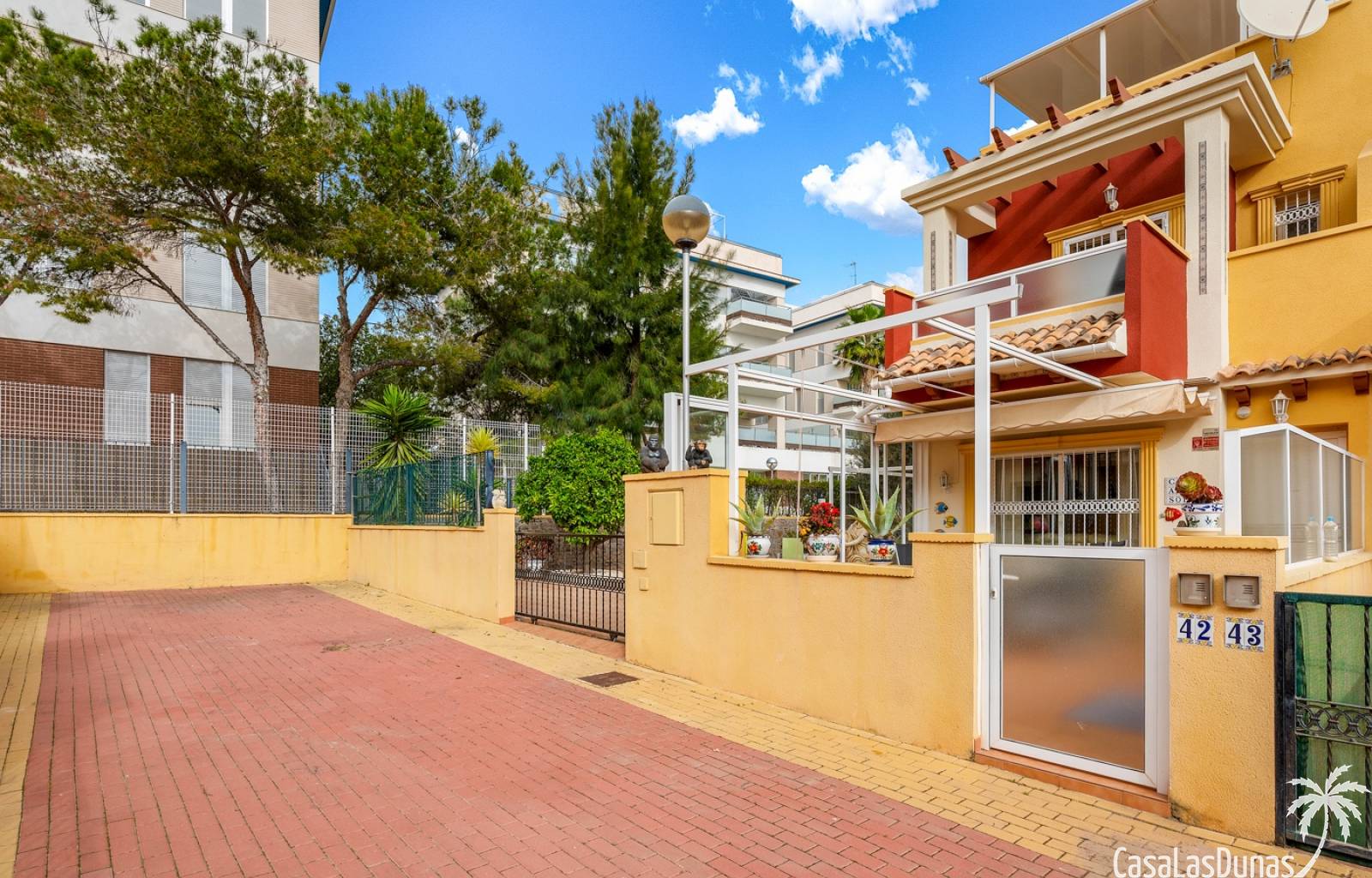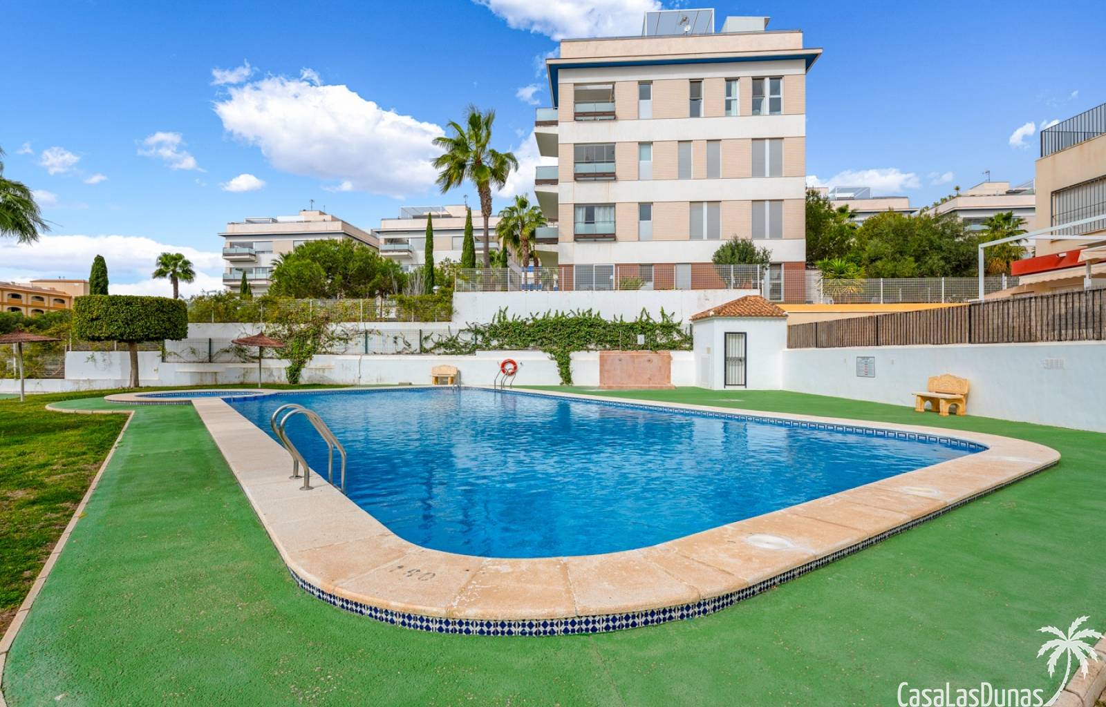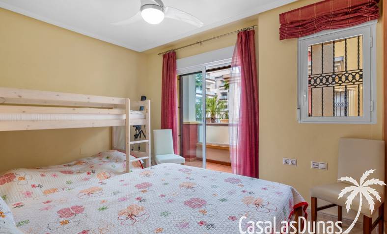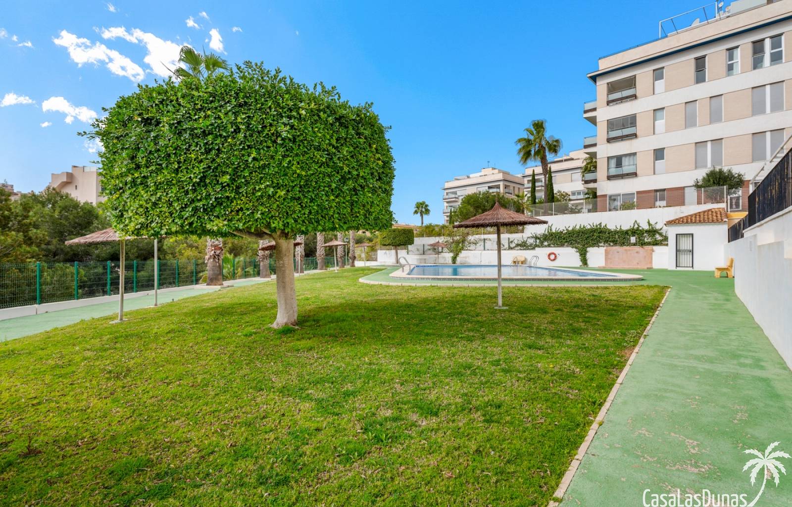 La propiedad forma parte de una urbanización cerrada con acceso a una hermosa piscina comunitaria, ideal para disfrutar del cálido clima mediterráneo.