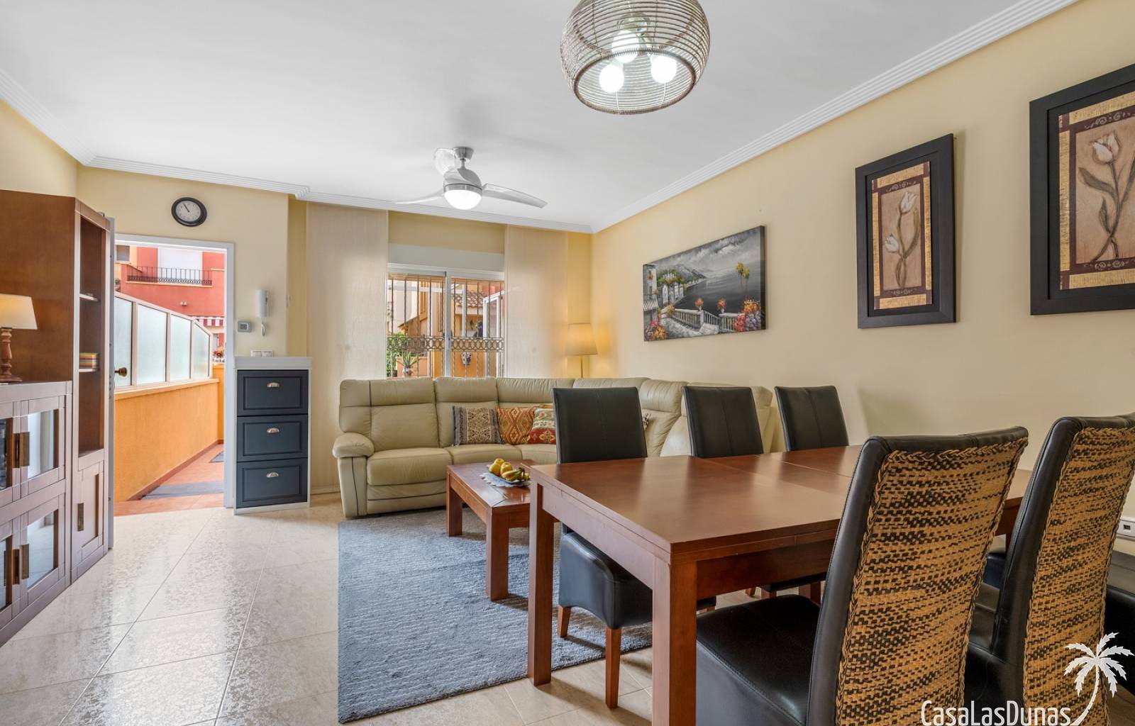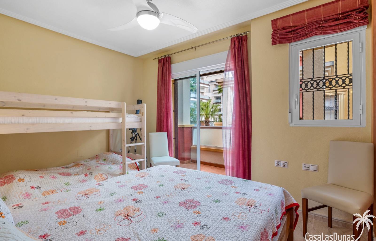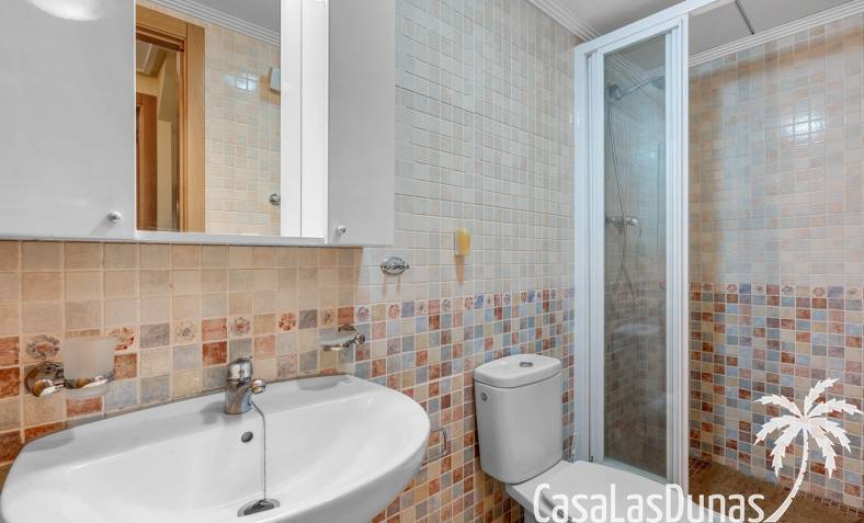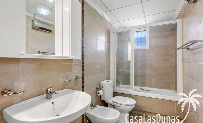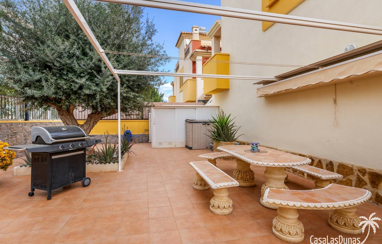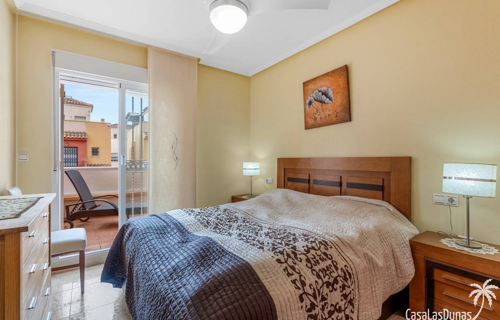 La propiedad forma parte de una urbanización cerrada con acceso a una hermosa piscina comunitaria, ideal para disfrutar del cálido clima mediterráneo.