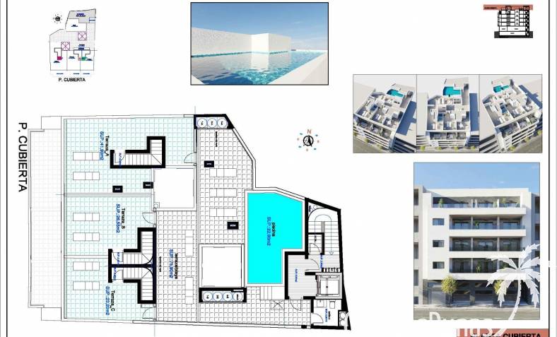 Los residentes pueden disfrutar de un solárium exclusivo en la azotea con piscina comunitaria, accesible por ascensor o escaleras. Esta zona privada es perfecta para relajarse, tomar el sol y disfrutar de las vistas panorámicas de la ciudad. Ofrece un refugio tranquilo sobre las animadas calles de Torrevieja y añade un valor significativo a la promoción.