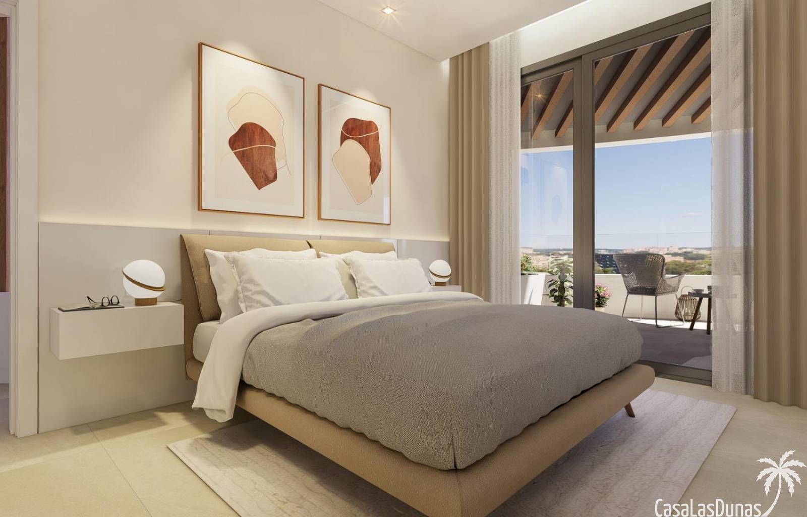 Todas las viviendas cuentan con amplias terrazas orientadas al sur que ofrecen hermosas vistas al mar y abundante luz natural durante todo el día. El ático ofrece espacio exterior adicional con su propio solárium privado, creando una zona ideal para relajarse y recibir invitados mientras se disfruta de vistas panorámicas de la costa.