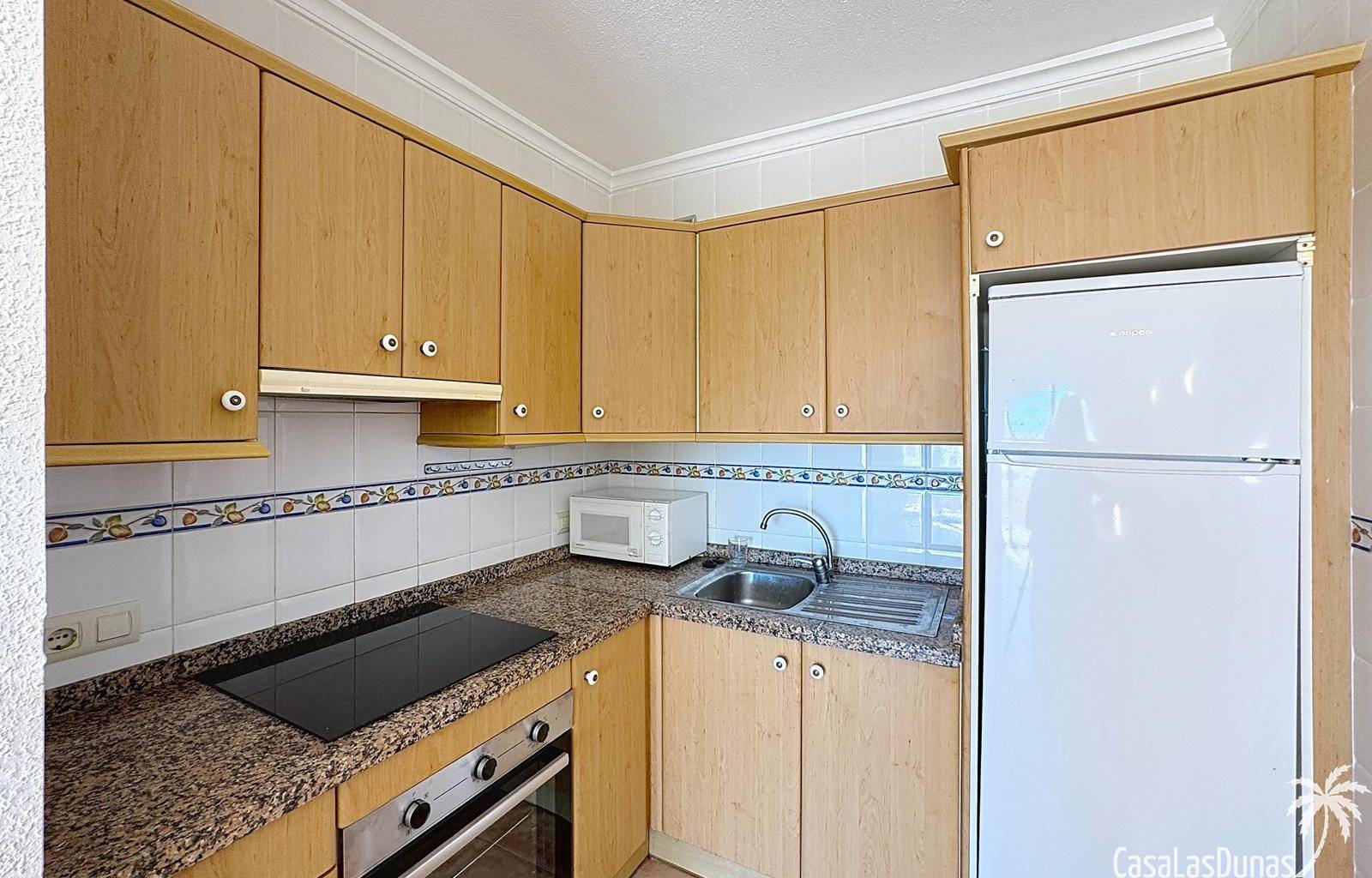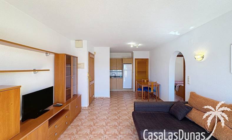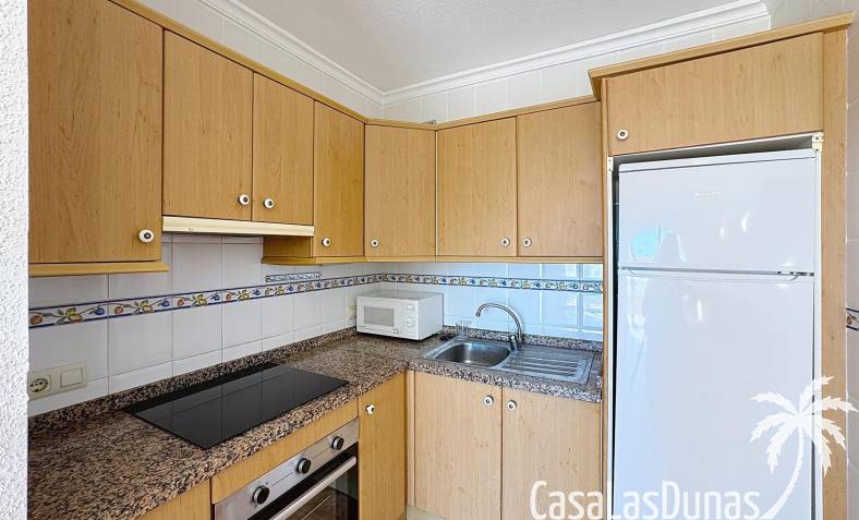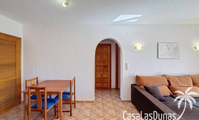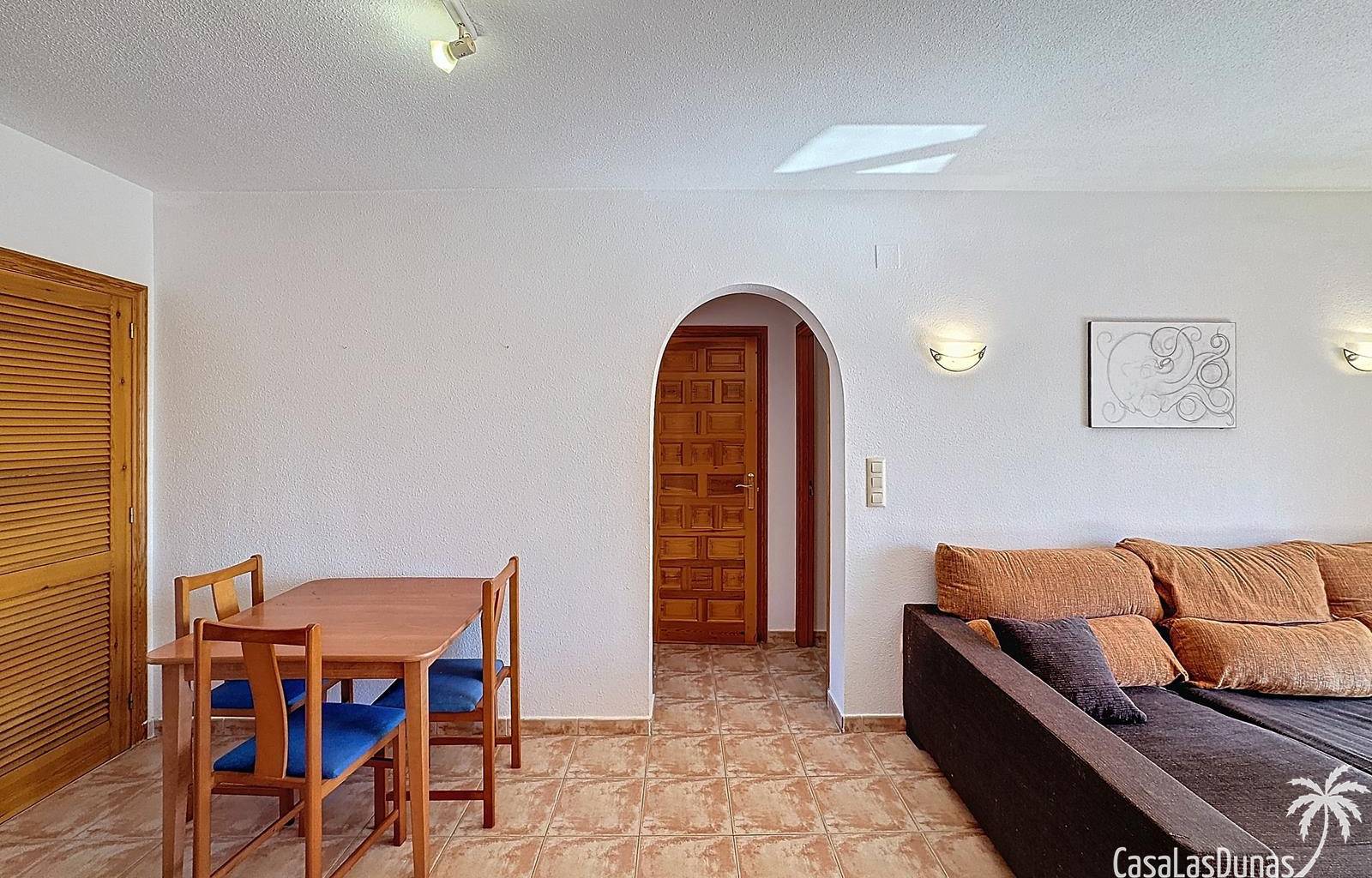 Este apartamento con terraza de 8 m² se encuentra a pocos pasos del supermercado Pepe la Sal y de varios restaurantes en la zona residencial de Cumbre del Sol. Ubicado en la primera y última planta, el apartamento cuenta con salón-comedor con cocina abierta y acceso a la terraza, dos dormitorios y un baño. Los residentes también tienen acceso a una gran piscina comunitaria.