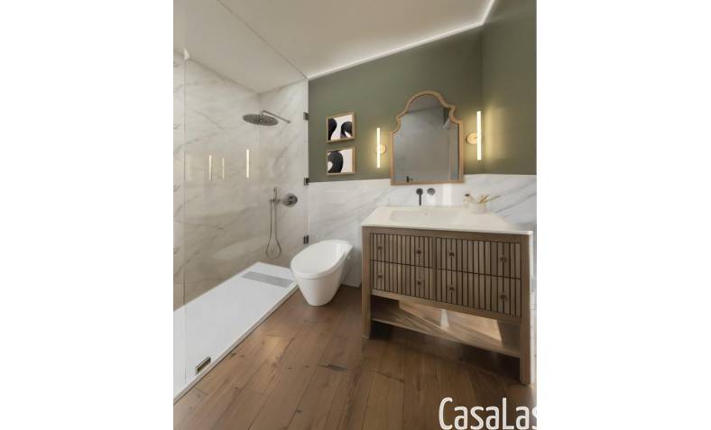 Los cuartos de baño vienen totalmente equipados con muebles de tocador y mamparas de ducha, mientras que otras características incluyen una puerta de entrada de seguridad reforzada, un sistema aerotérmico para el agua caliente y un ascensor que da servicio a todas las plantas.