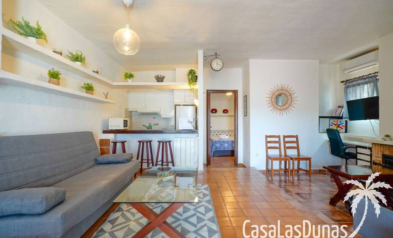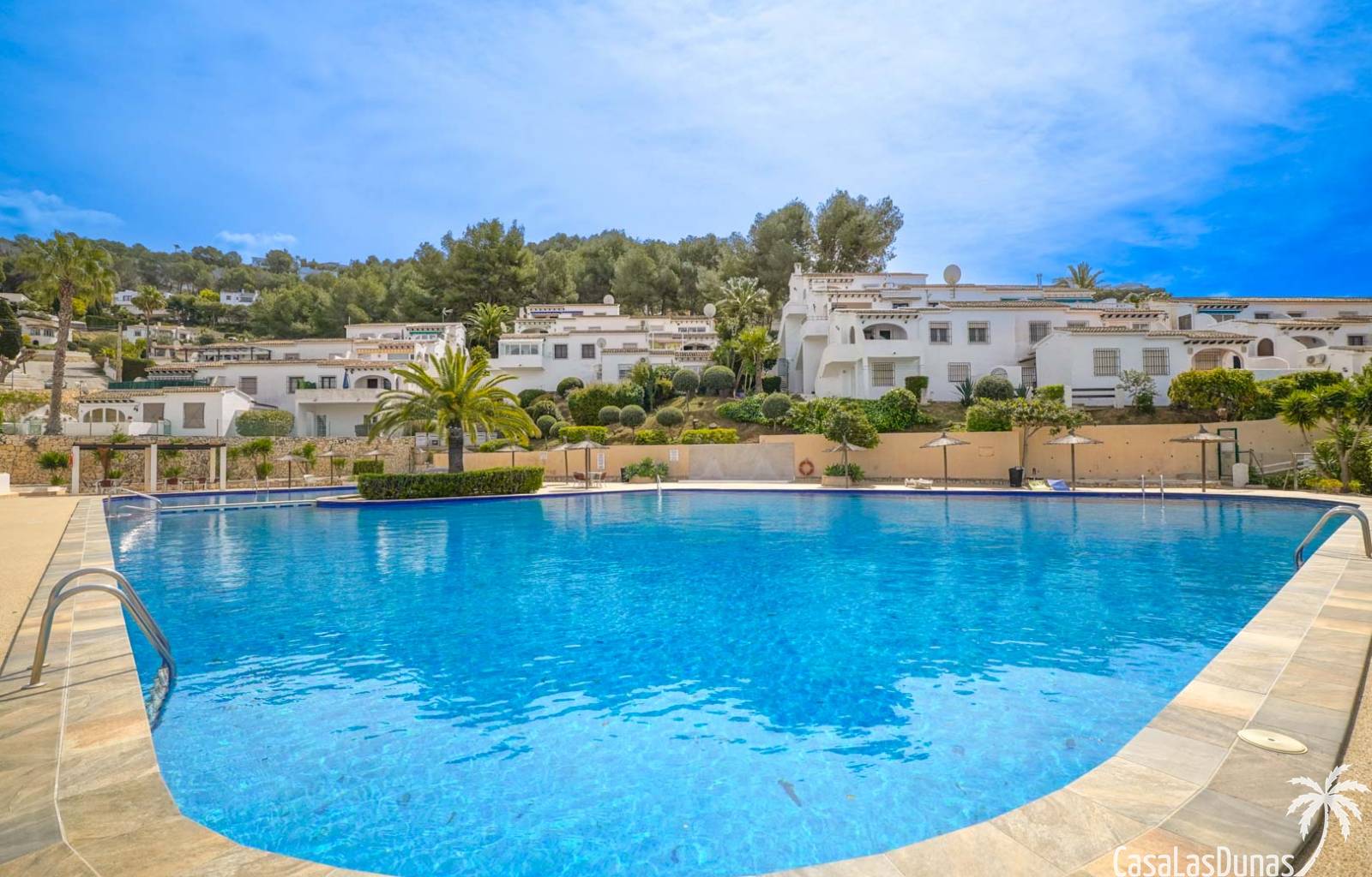 Este apartamento en Moraira cuenta con garaje privado y trastero bajo la zona de estar, y se encuentra en un encantador complejo con una gran piscina comunitaria. En la planta baja, la propiedad dispone de garaje privado y un amplio trastero independiente, con acceso al apartamento tanto por escalera exterior como desde la calle, lo que garantiza mayor flexibilidad. En la primera planta, una terraza con vistas al valle da acceso a la vivienda, que consta de salón-comedor con cocina semiabierta y dormitorio principal con baño en suite. El complejo cuenta con una gran piscina comunitaria rodeada de zonas verdes, ideal para relajarse.