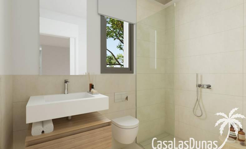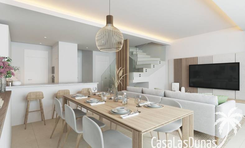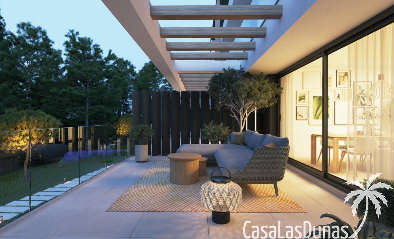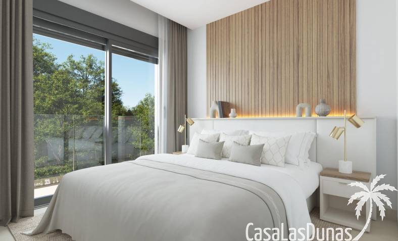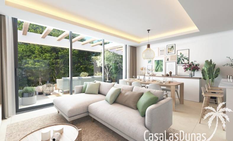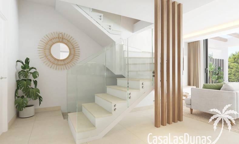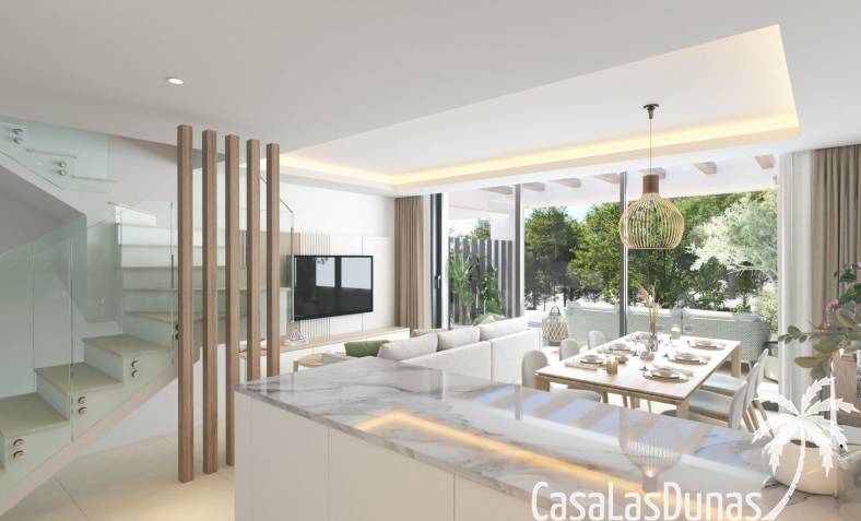 Todas las viviendas están construidas con acabados de primera calidad y tecnología moderna. Cuentan con aire acondicionado, calefacción por sistema aerotérmico y cocinas totalmente equipadas con electrodomésticos Siemens de alta gama. Las ventanas de cristal de suelo a techo mejoran la luz natural y crean una conexión perfecta entre las zonas de estar interiores y exteriores. La orientación de cada vivienda se ha planificado cuidadosamente para garantizar la privacidad y el aprovechamiento óptimo de la luz mediterránea.