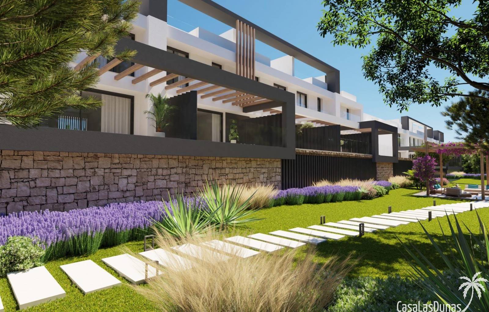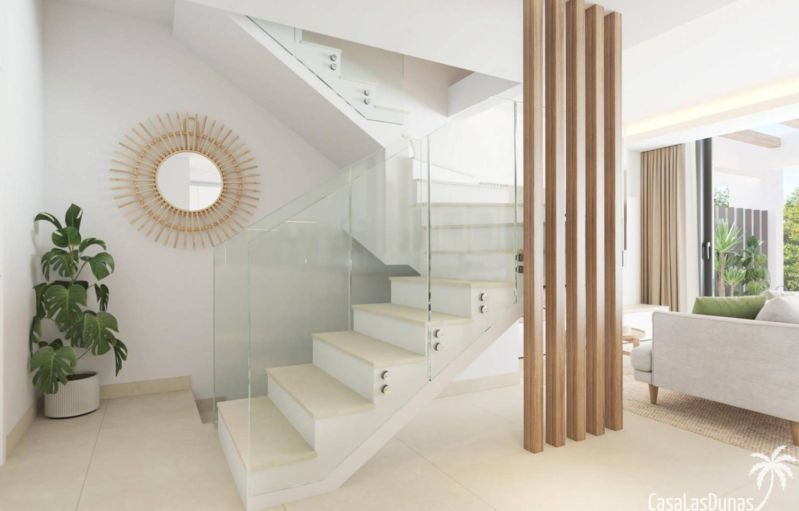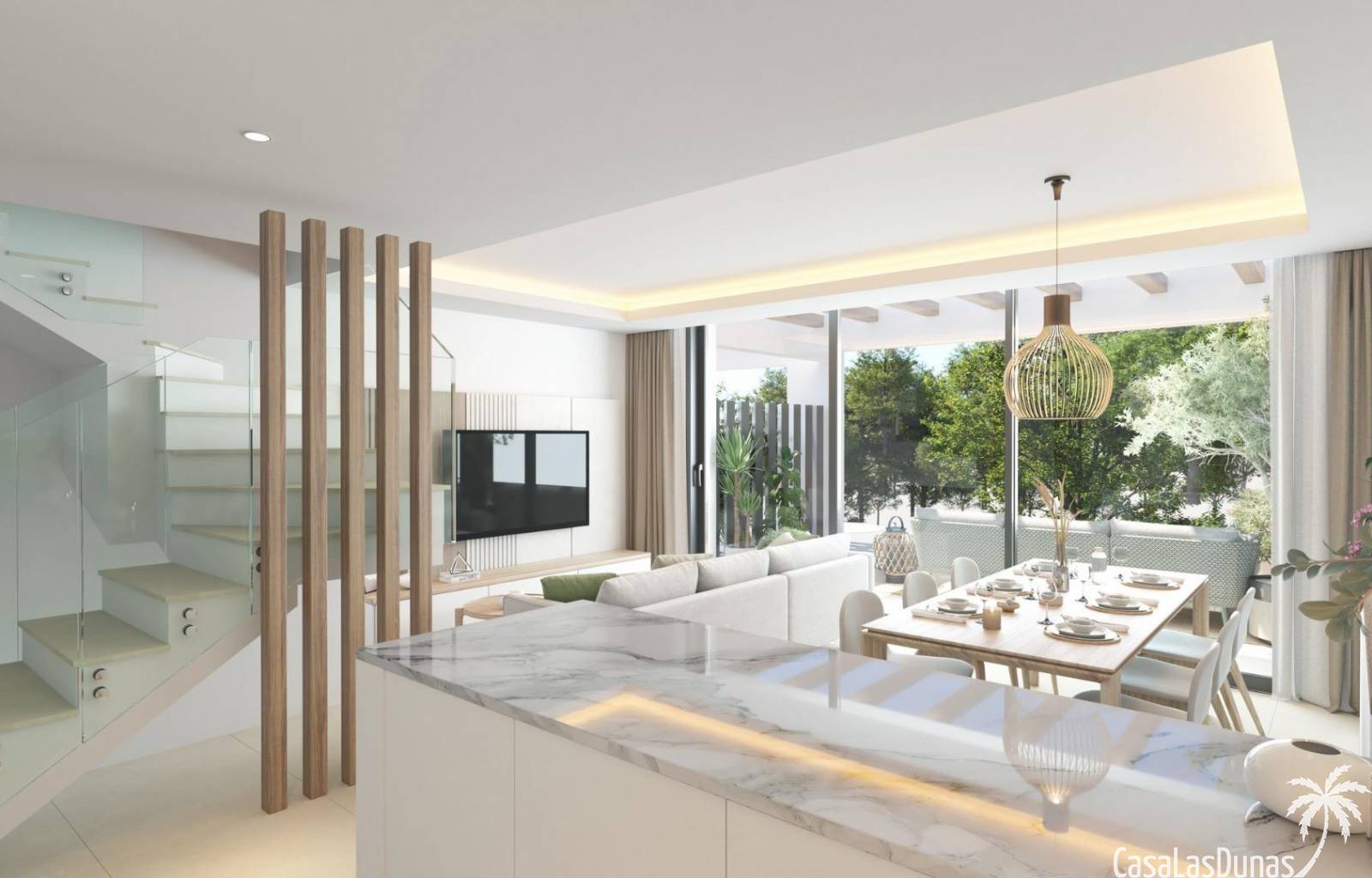 Todas las viviendas están construidas con acabados de primera calidad y tecnología moderna. Cuentan con aire acondicionado, calefacción por sistema aerotérmico y cocinas totalmente equipadas con electrodomésticos Siemens de alta gama. Las ventanas de cristal de suelo a techo mejoran la luz natural y crean una conexión perfecta entre las zonas de estar interiores y exteriores. La orientación de cada vivienda se ha planificado cuidadosamente para garantizar la privacidad y el aprovechamiento óptimo de la luz mediterránea.