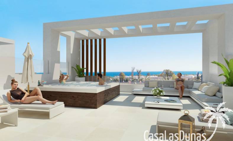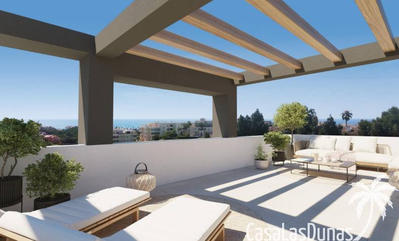 El solárium de la azotea ofrece un espacio ideal para disfrutar del clima mediterráneo y de las vistas al mar. Esta zona ofrece la posibilidad de instalar una piscina y una cocina de verano, creando un entorno perfecto para el descanso y el entretenimiento.