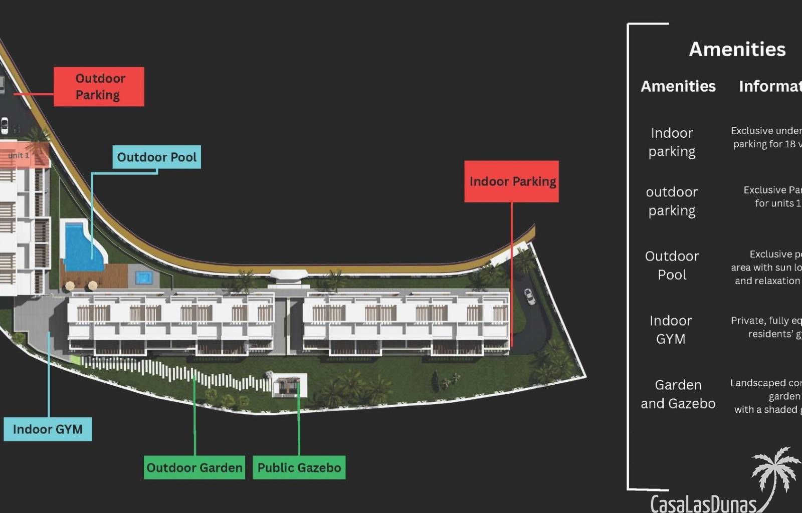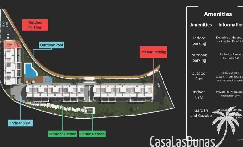 Los residentes pueden disfrutar de una completa zona de ocio diseñada para el bienestar y la relajación. Las instalaciones incluyen un gimnasio totalmente equipado, sauna y jacuzzi. En el exterior, la piscina comunitaria y la piscina infantil están rodeadas de jardines tropicales que ofrecen un entorno tranquilo y familiar.