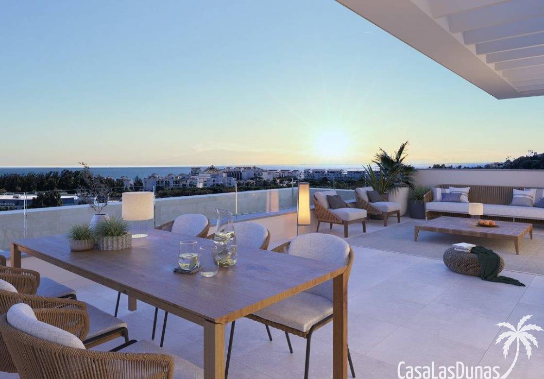 Il s'agit d'un complexe résidentiel moderne et fonctionnel fermé de 41 appartements avec une, deux et trois chambres, divisés en 2 blocs sur deux étages : rez-de-chaussée, premier étage et deuxième étage. Tous les appartements sont orientés au sud-est. Chacun des 41 espaces de vie spacieux s'efforce d'obtenir un mélange parfait de design et de confort. Conçu avec une grande attention aux détails, tels que de grandes baies vitrées, des carreaux de sol en porcelaine grand format et l'orientation de la maison garantissent une utilisation maximale de la lumière naturelle à tout moment de la journée. Les cuisines sont conçues comme une partie intégrante du salon pour créer un espace lumineux et spacieux pour un usage quotidien. Les spécifications de qualité comprennent la durabilité, la praticité et le confort des matériaux tels que les comptoirs en quartz, les appareils encastrés et l'éclairage à DEL intégré qui procurent chaleur et sophistication. L'élégance des salles de bains est constituée de carreaux de porcelaine grand format reflétant l'engagement global envers le design. Les espaces communs comprennent des jardins paysagers, une piscine extérieure, une salle de sport ainsi qu'une salle polyvalente. Ce développement de faible hauteur sur plan bénéficie d'un emplacement privilégié à West Estepona, à quelques minutes de la plage, dans une zone suburbaine calme. Cette zone émergente est connue pour sa large gamme de services, ses écoles internationales, ses supermarchés, ses hôpitaux, ses vastes installations sportives et ses espaces naturels. Une promenade de 5 minutes vous mènera à la célèbre plage d'Arroyo Vaquero, qui s'étend sur plus de 2,5 kilomètres. Dans un rayon de 20 kilomètres se trouvent 30 terrains de golf où vous pourrez passer de bons moments en famille ou entre amis. Juste à côté du complexe se trouvent deux des meilleurs terrains de golf de la région, Azata Golf et Valle Romano. En voiture, vous êtes à 5 minutes du centre d'Estepona et d'un large éventail d'installations de loisirs, de divertissements, de bars, de restaurants. Ne laissez pas passer cet appartement à couper le souffle sans vous renseigner. Contactez-nous par email info@casalasdunas.com ou par téléphone. Nous sommes heureux de vous conseiller!