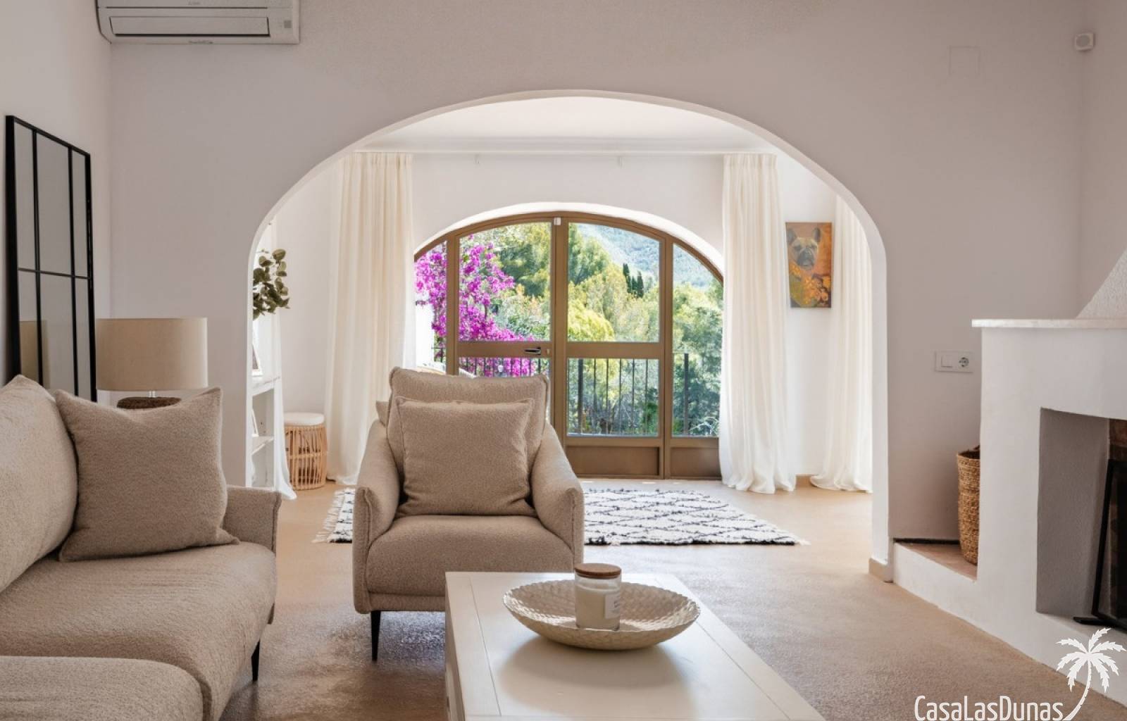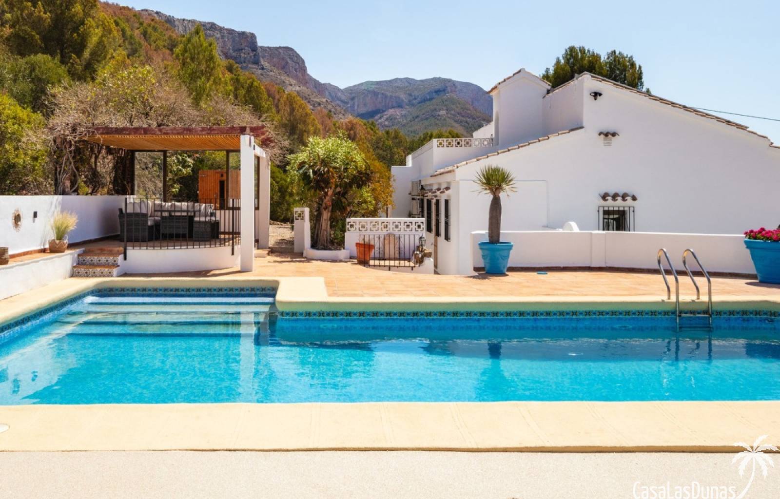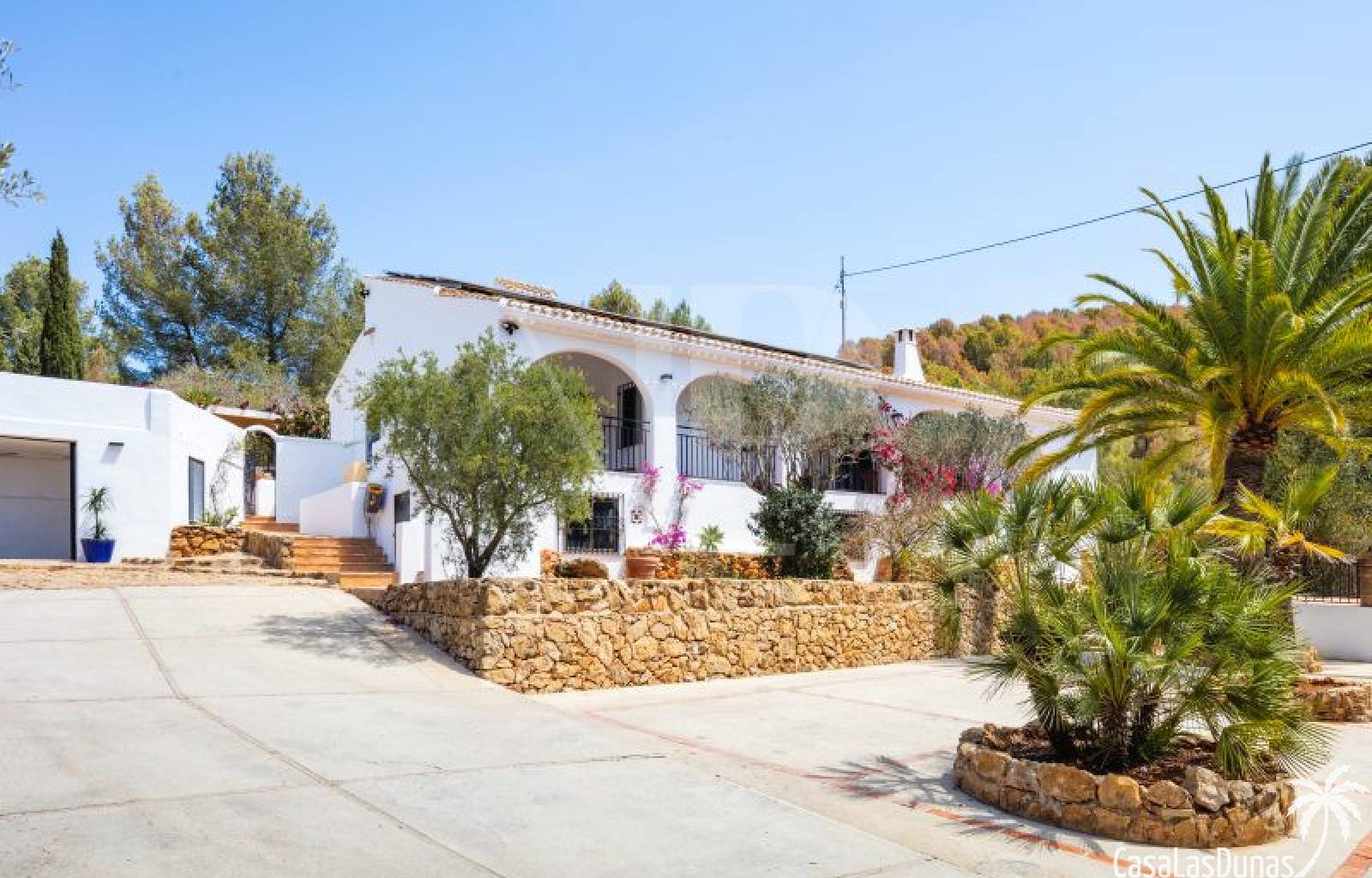 Cette finca entièrement rénovée avec de belles vues est située au milieu du parc naturel du Montgo au bout d'une impasse avec 100% d'intimité. La propriété dispose d'une allée avec un grand parking, un abri voiture et un garage. Il y a une résidence principale au dernier étage et un logement séparé pour les invités au sous-sol. La résidence principale dispose d'un spacieux salon/salle à manger et naya, d'une cuisine moderne, de 3 chambres et de 2 salles de bains. L'étage inférieur offre un appartement d'amis indépendant avec une chambre, une cuisine et un salon. Du côté ouest se trouve la terrasse de la piscine et du côté est se trouve également un agréable patio avec barbecue. La maison dispose du chauffage et de la climatisation via la climatisation contrôlée par un grand système solaire et des batteries et est proposée entièrement meublée.