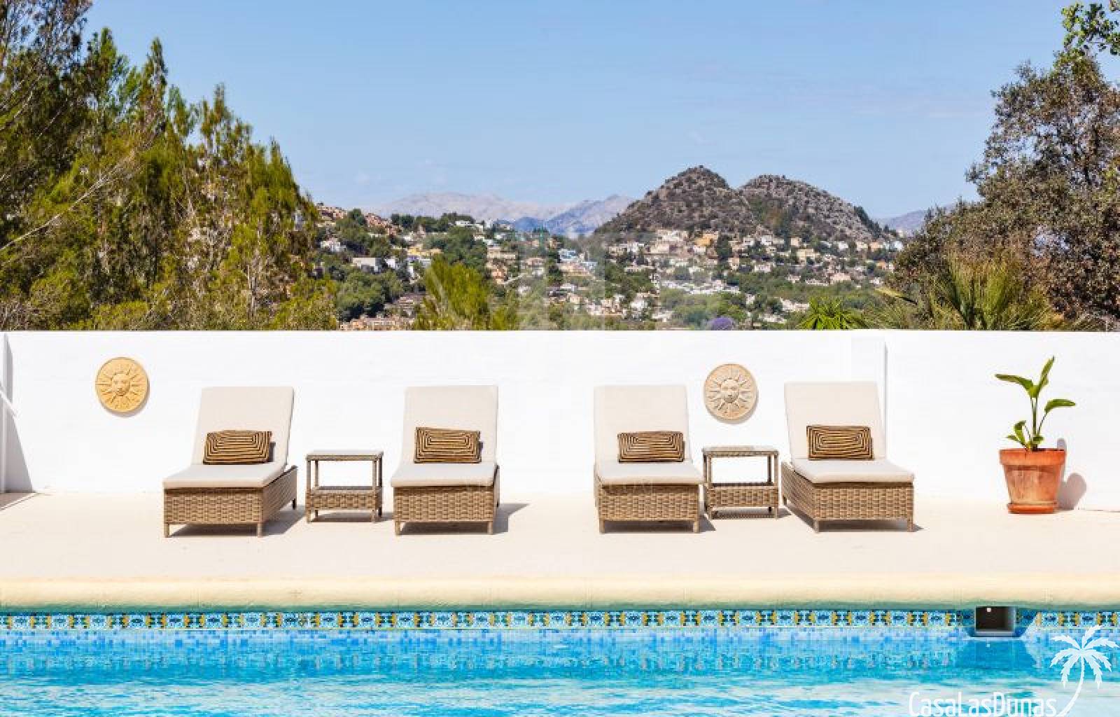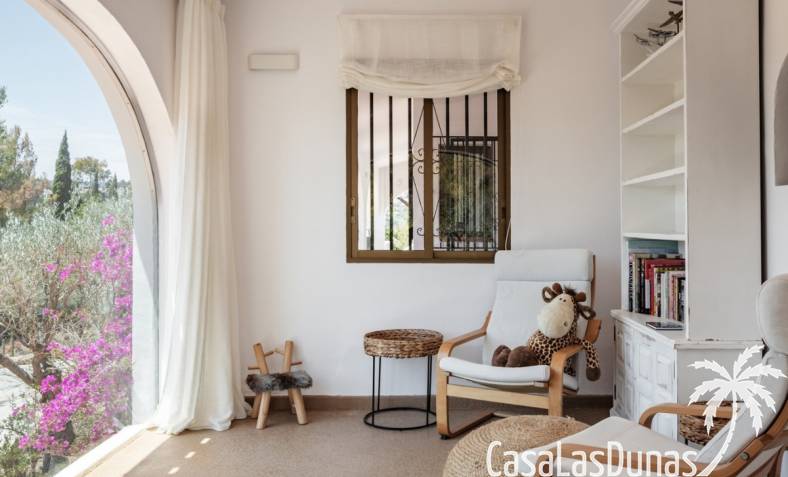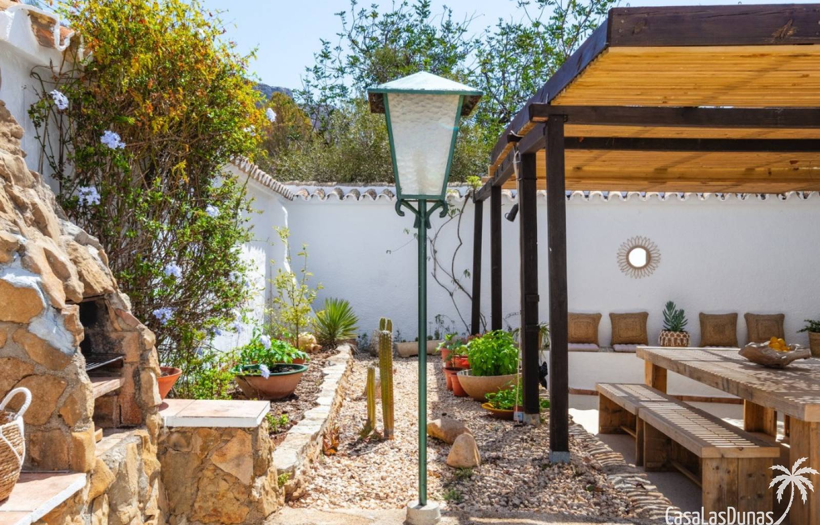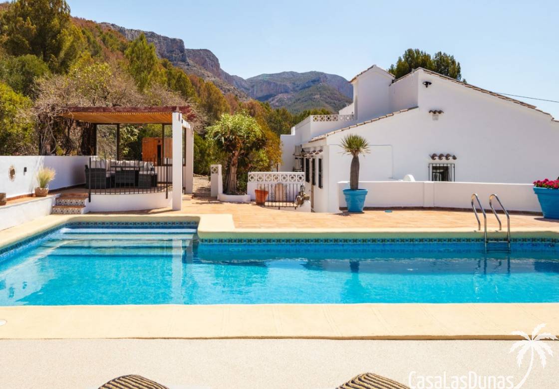 Cette finca entièrement rénovée avec de belles vues est située au milieu du parc naturel du Montgo au bout d'une impasse avec 100% d'intimité. La propriété dispose d'une allée avec un grand parking, un abri voiture et un garage. Il y a une résidence principale au dernier étage et un logement séparé pour les invités au sous-sol. La résidence principale dispose d'un spacieux salon/salle à manger et naya, d'une cuisine moderne, de 3 chambres et de 2 salles de bains. L'étage inférieur offre un appartement d'amis indépendant avec une chambre, une cuisine et un salon. Du côté ouest se trouve la terrasse de la piscine et du côté est se trouve également un agréable patio avec barbecue. La maison dispose du chauffage et de la climatisation via la climatisation contrôlée par un grand système solaire et des batteries et est proposée entièrement meublée.