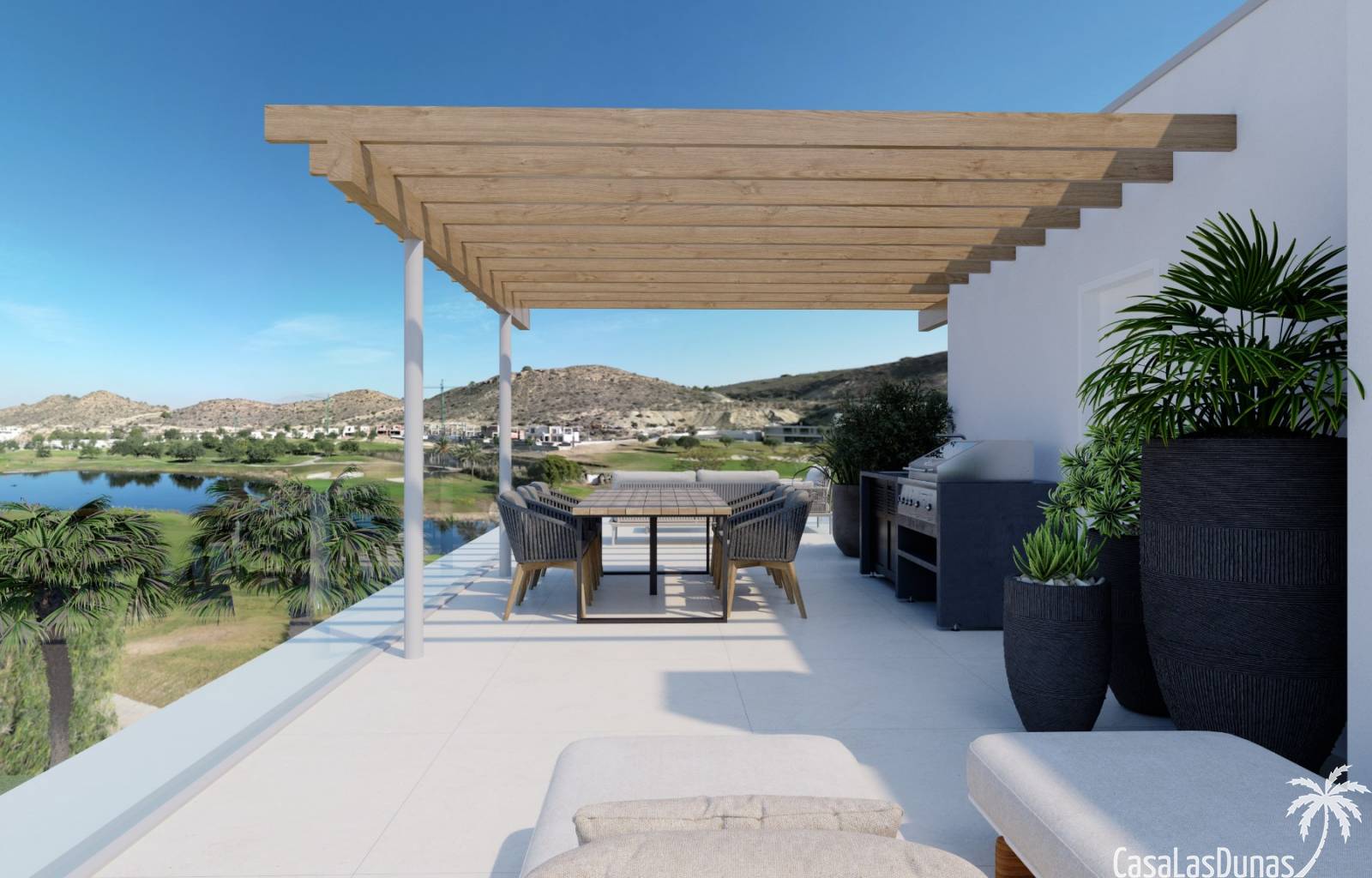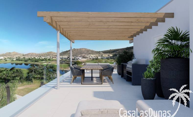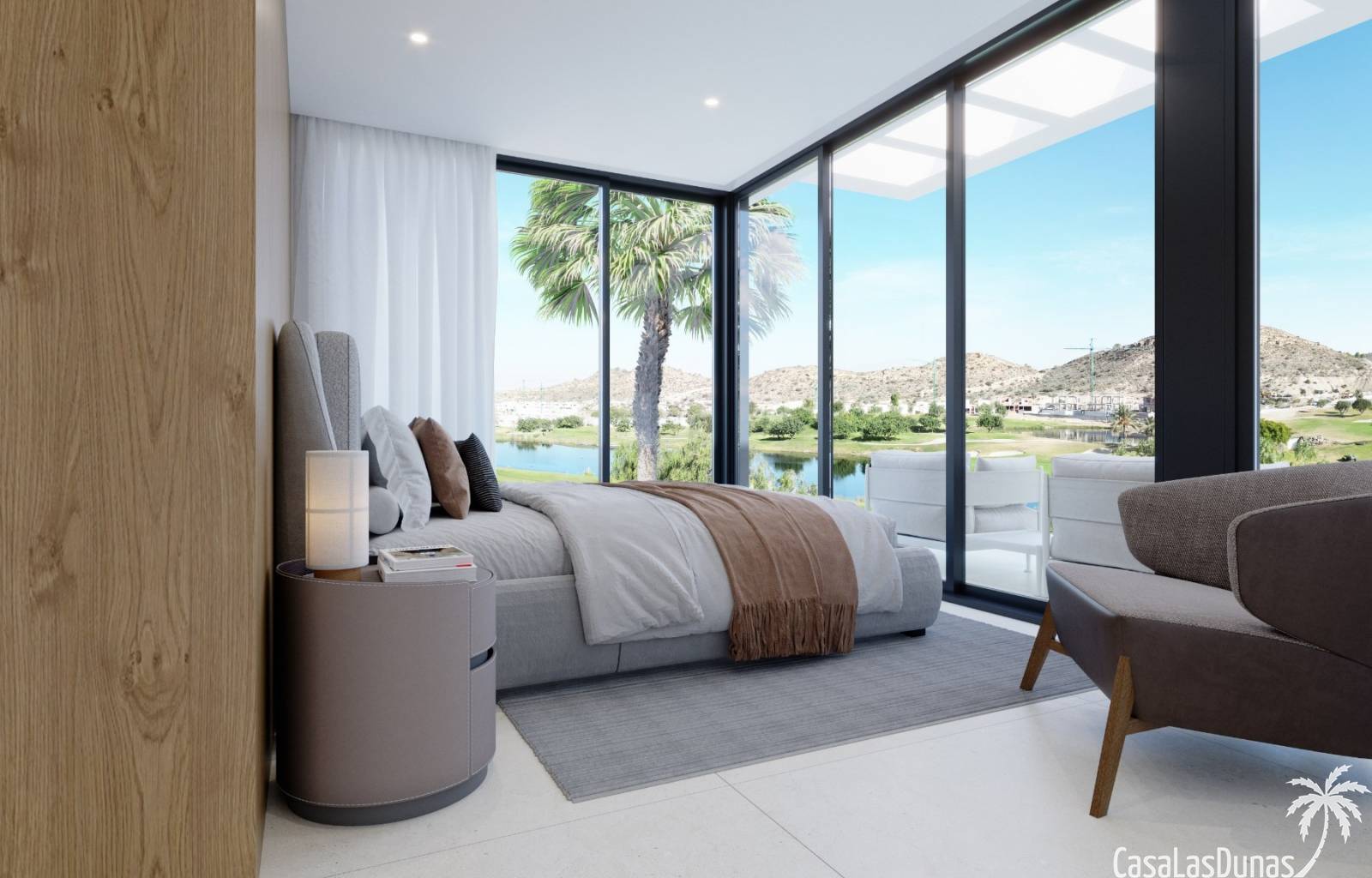 Cette nouvelle phase de villas extraordinaires jouit d'une vue imprenable sur le terrain de golf. L'espace de vie du rez-de-chaussée comprend un salon lumineux avec une cuisine entièrement équipée et des toilettes pour les invités. Profitez de la terrasse partiellement ensoleillée et partiellement ombragée et, bien sûr, de votre propre piscine de belles dimensions. En outre, la villa dispose de 3 chambres et de 2 salles de bains. Depuis la chambre principale, une terrasse offre une vue phénoménale sur le terrain de golf ainsi que sur le solarium. Dans le spacieux sous-sol, vous pouvez garer 2 voitures, il y a 2 salles de stockage et une salle polyvalente que vous pouvez aménager à votre guise (bureau, fitness, home cinéma, chambre d'amis,...) avec un accès direct à un jardin anglais. Il est possible d'installer un ascenseur dans la propriété moyennant un coût supplémentaire.