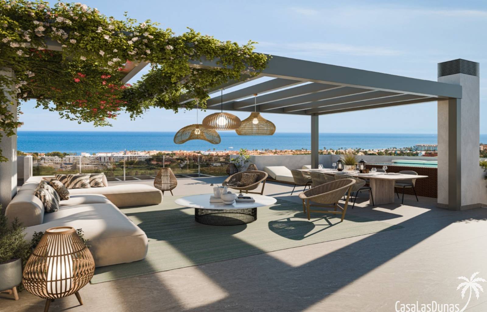 Ce complexe résidentiel exclusif de 99 appartements se compose de deux et trois chambres, répartis en rez-de-chaussée avec de vastes jardins et en attiques avec de grands solariums, s'adaptant aux différentes étapes de la vie de ceux qui souhaitent profiter de l'authentique style de vie méditerranéen. La cuisine et le salon s'intègrent dans un espace ouvert pour optimiser l'espace, créant des espaces polyvalents et modulables pour vous et vos proches. La cuisine italienne, entièrement équipée avec des meubles et des appareils électroménagers haut de gamme, allie fonctionnalité et élégance. Le salon s'ouvre sur l'extérieur par de grandes baies vitrées qui encadrent le paysage environnant, intégrant lumière naturelle et vue sur la mer à la décoration intérieure, pour une sensation de bien-être accrue. Profitez pleinement de la vie en plein air avec deux piscines, une pour adultes et une pour enfants, entourées de jardins soigneusement aménagés. Une salle de sport, un sauna, un espace de coworking avec cuisine et un simulateur de golf complètent l'expérience. Un espace détente chaleureux avec barbecue, idéal pour se détendre ou se retrouver, complète l'expérience. Grâce à la faible densité de construction, l'intimité et la tranquillité des résidents sont garanties. C'est pourquoi Casares Costa est l'endroit où vous aurez toujours le sentiment que tout s'intègre parfaitement.