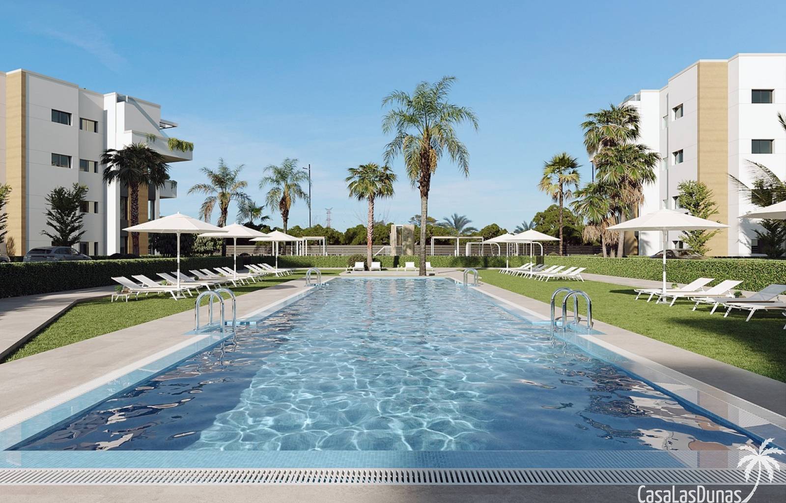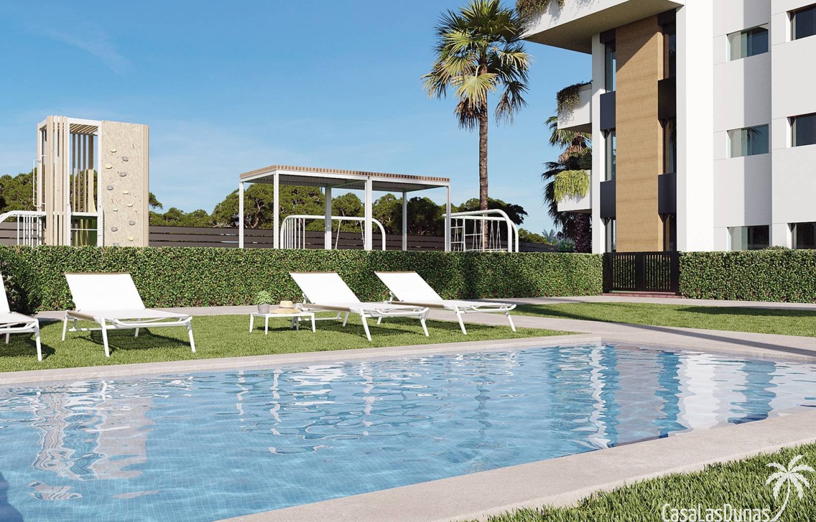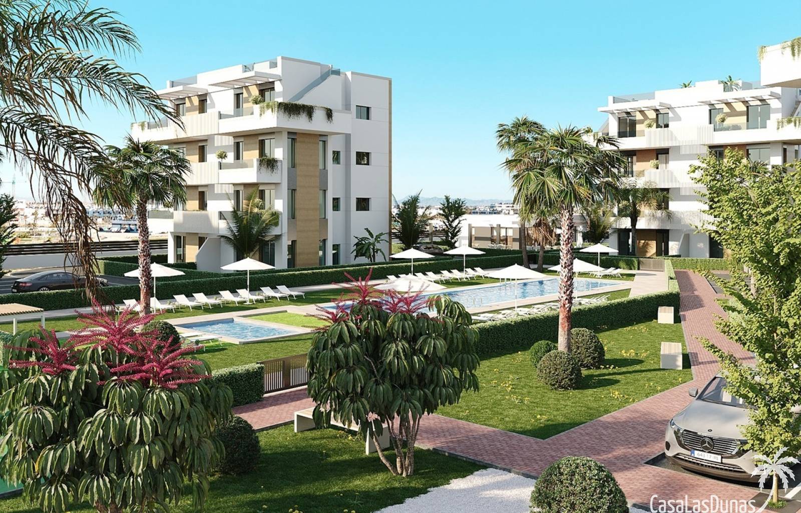 Le projet comprend 40 appartements modernes répartis dans cinq petits bâtiments au sein d'une résidence sécurisée et fermée. Ces appartements en rez-de-chaussée comprennent deux chambres, deux salles de bain, une cuisine entièrement équipée, la climatisation réversible, un cellier séparé et l'accès aux installations communes : une grande piscine, des jardins paysagers, des aires de jeux pour enfants, une salle de fitness, un club-house accueillant et même un espace réception.