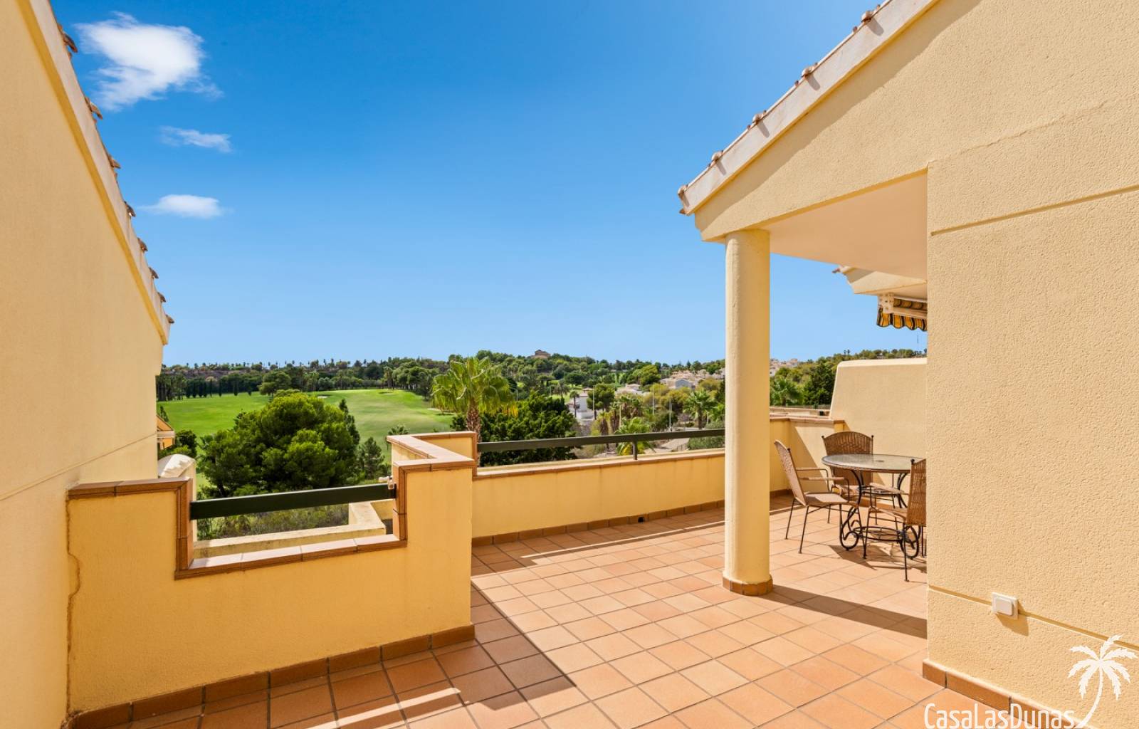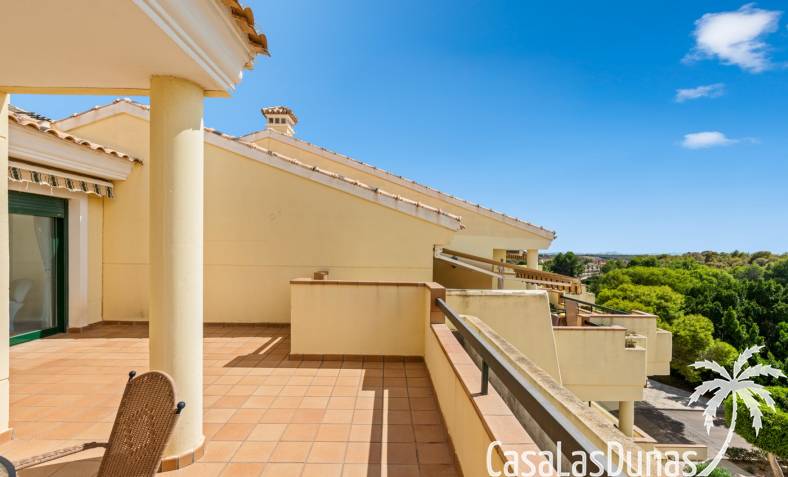 Ce magnifique appartement penthouse de 2 chambres avec une vue imprenable sur le parcours de golf et la mer Méditerranée est situé dans le magnifique quartier résidentiel verdoyant de Campoamor Golf, Alicante, à proximité de toutes les commodités locales et des terrains de golf. La propriété dispose d'un spacieux salon/salle à manger confortable, d'une cuisine indépendante entièrement équipée avec débarras/buanderie, de deux chambres avec placards, de deux salles de bains et d'une spacieuse terrasse orientée sud/ouest avec une vue fantastique. Il y a un bel espace commun avec piscine pour profiter du climat espagnol 365 jours par an ! Proche de toutes les commodités dans le quartier recherché d'Orihuela Costa, à distance de marche des commerces, bars et restaurants. À quelques minutes en voiture se trouve la bande animée de Cabo Roig, pleine de bars et de restaurants, ainsi que les plages de Campoamor, Cabo Roig et La Zenia. Il y a plusieurs terrains de golf à proximité tels que Las Colinas, Las Ramblas, Campoamor et Villamartin et le centre commercial La Fuente est également à deux pas. Le fantastique centre commercial La Zenia Boulevard se trouve à seulement 5 minutes en voiture. Les deux aéroports internationaux de Murcie et d'Alicante sont à 35 et 45 minutes.