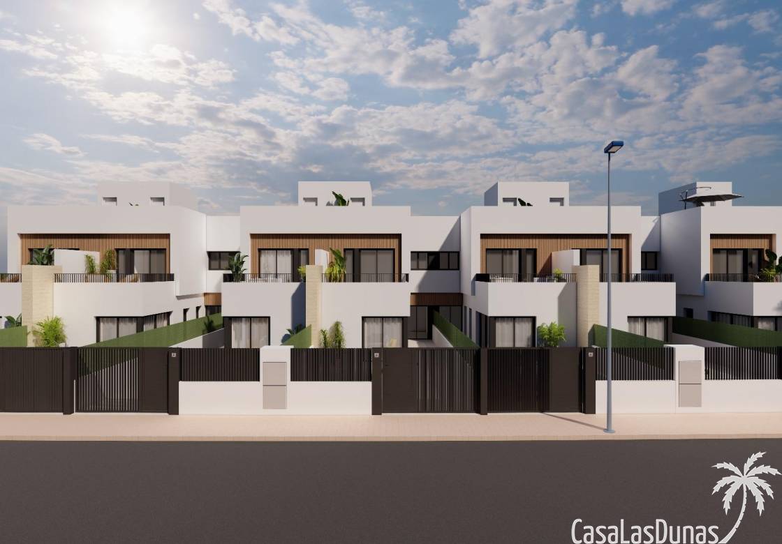 Découvrez cette promotion en édition limitée de villas mitoyennes situées à Santiago de la Ribera, une charmante ville côtière de la côte murcienne, connue pour son style de vie détendu, ses plages propres et son excellent climat tout au long de l'année. Ces nouvelles maisons sont situées à seulement 1 km de la côte de la Mar Menor, offrant la combinaison parfaite entre intimité, confort et proximité des services essentiels et des loisirs.