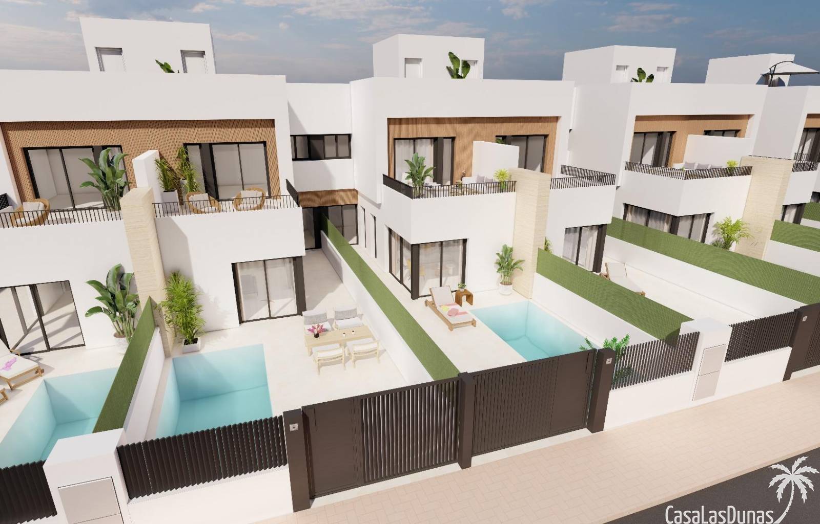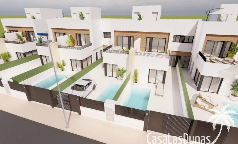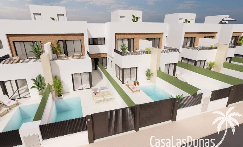 Villas modernes mitoyennes avec piscine privée près de la mer à Santiago de la Ribera