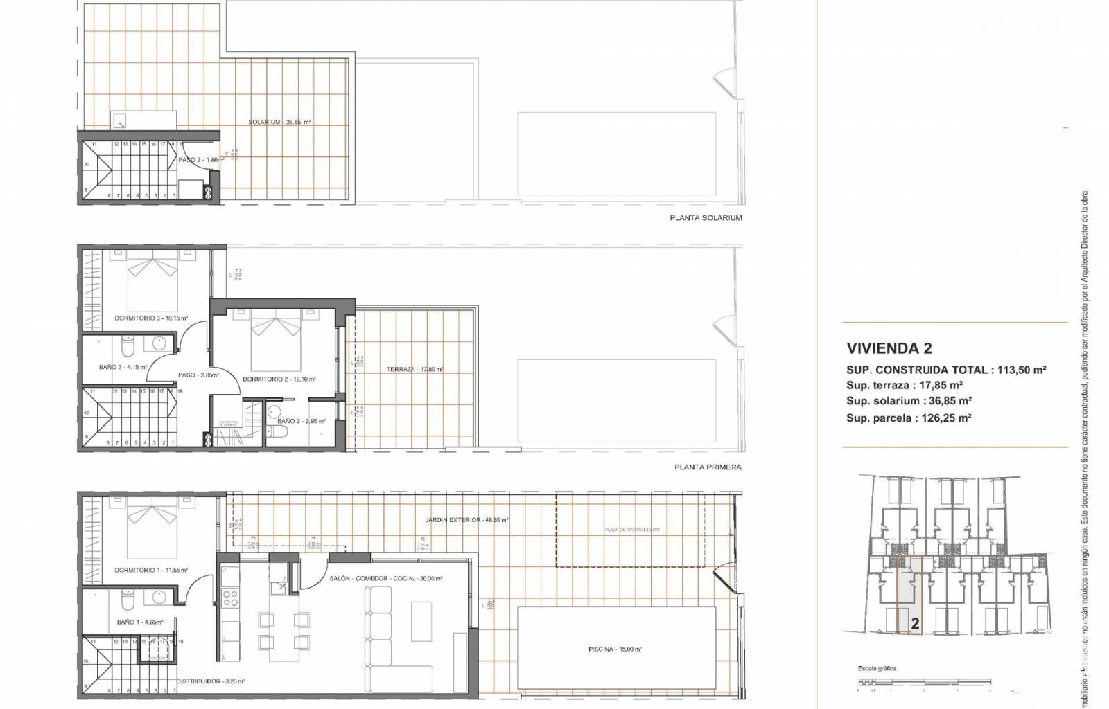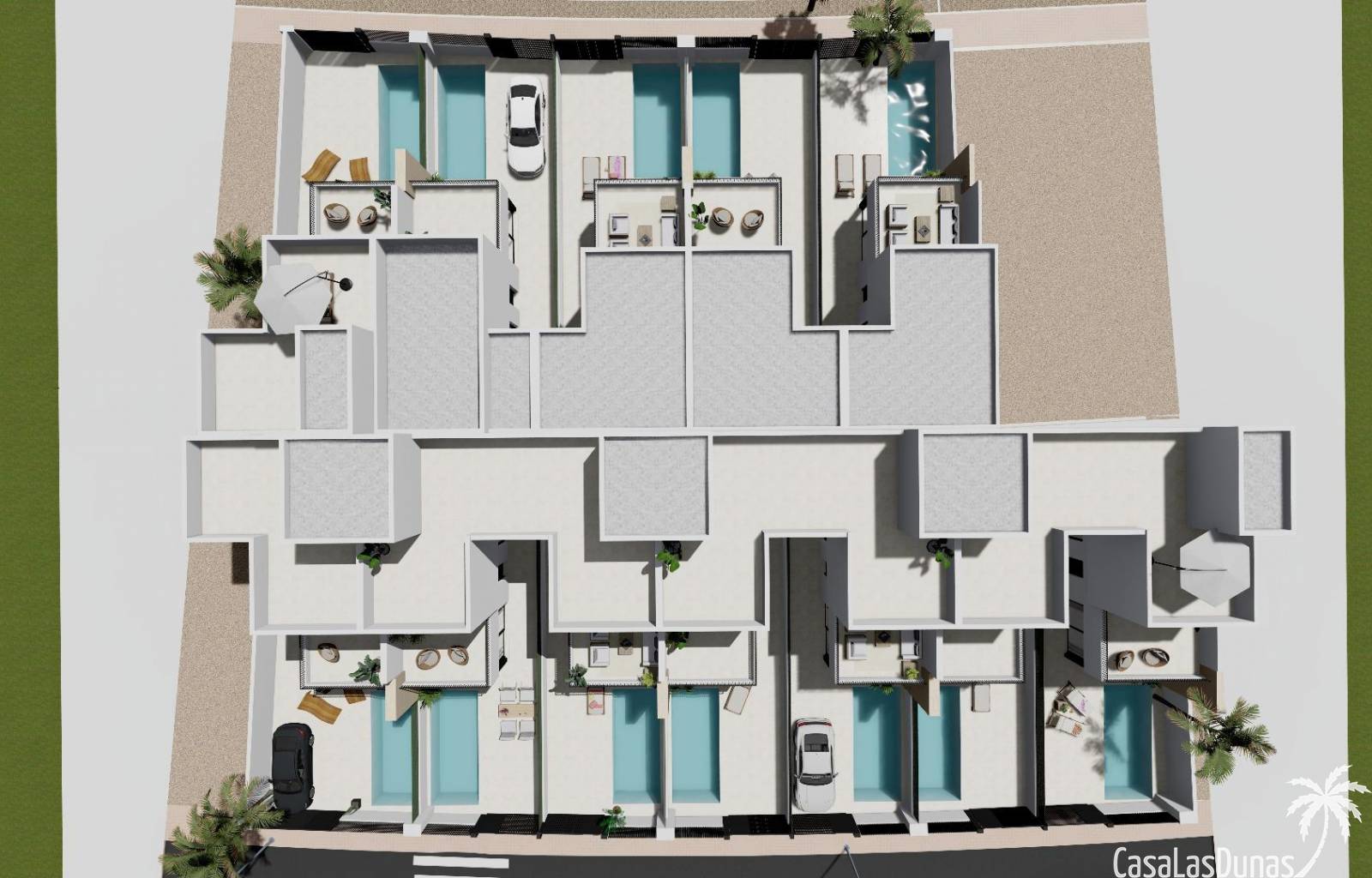 Ce programme comprend 12 villas de 3 chambres et 2/3 salles de bains, avec piscine privée, terrasse et solarium avec cuisine d'été dans certaines maisons.