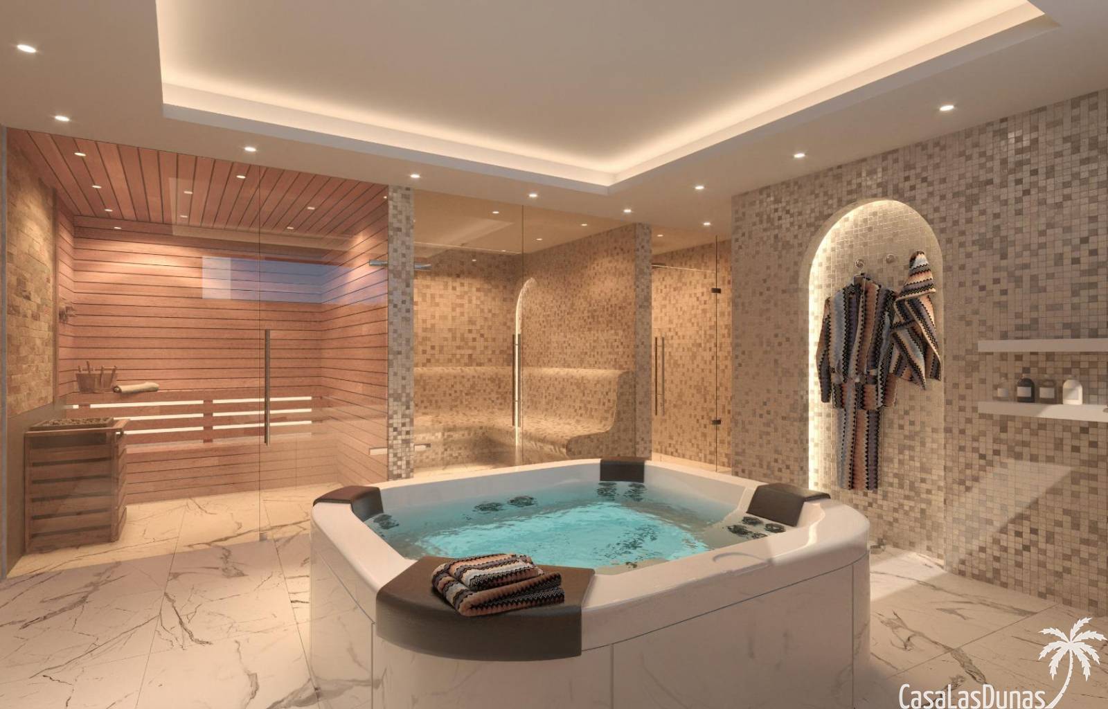 En descendant à l'étage inférieur, un monde de loisirs et de détente vous attend. Vous y trouverez une cave à vin, une salle de sport entièrement équipée et un spa relaxant avec sauna. L'accès par ascenseur vous permet de vous déplacer sans effort entre les différents niveaux. La chambre d'amis, la buanderie, le garde-manger et le dressing ont été conçus pour répondre à tous vos besoins.