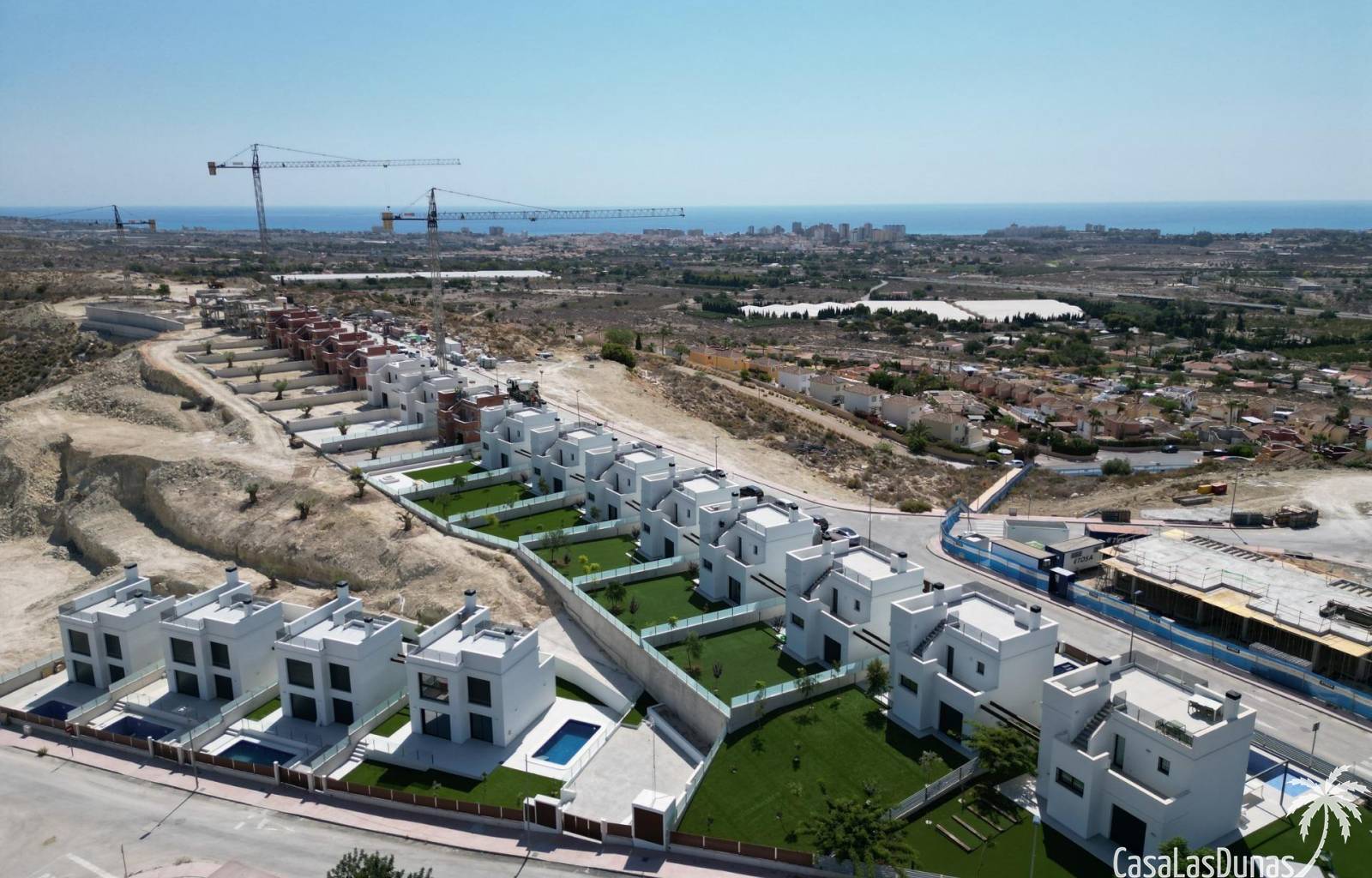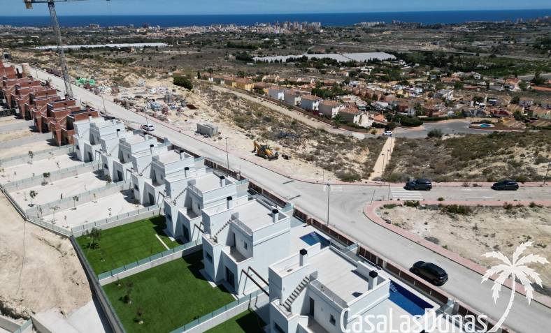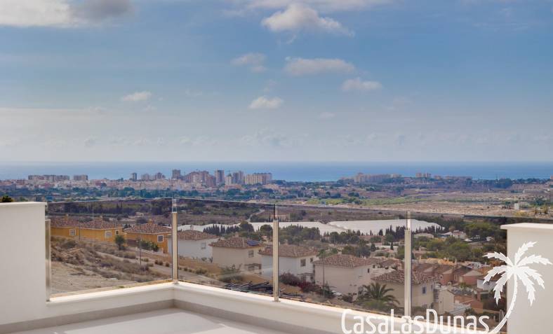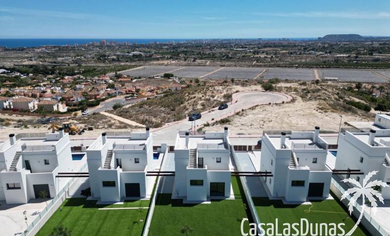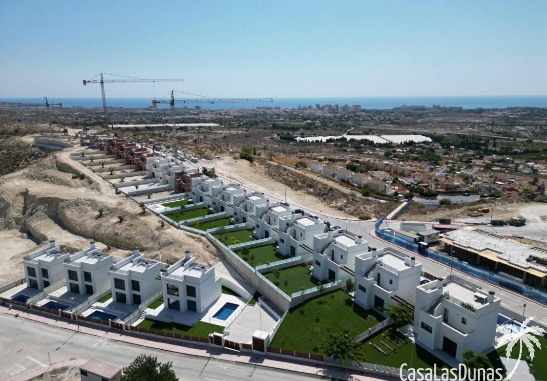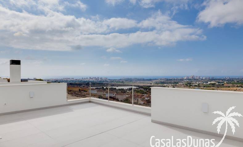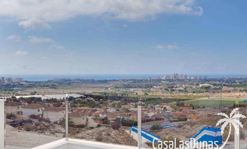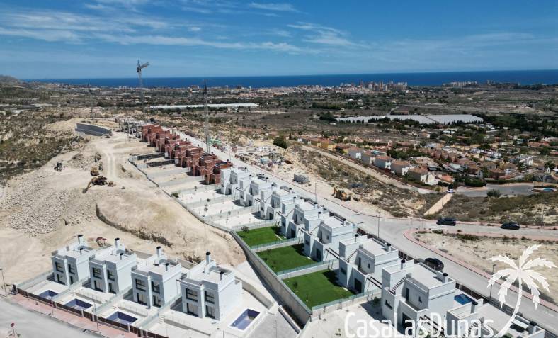 Les maisons se composent de 2 étages et vous avez également accès au solarium avec une vue imprenable sur la mer. Sur de grandes parcelles d'environ 550 m2. Son emplacement surélevé offre une vue magnifique sur les montagnes, la ville d'Alicante et la mer.