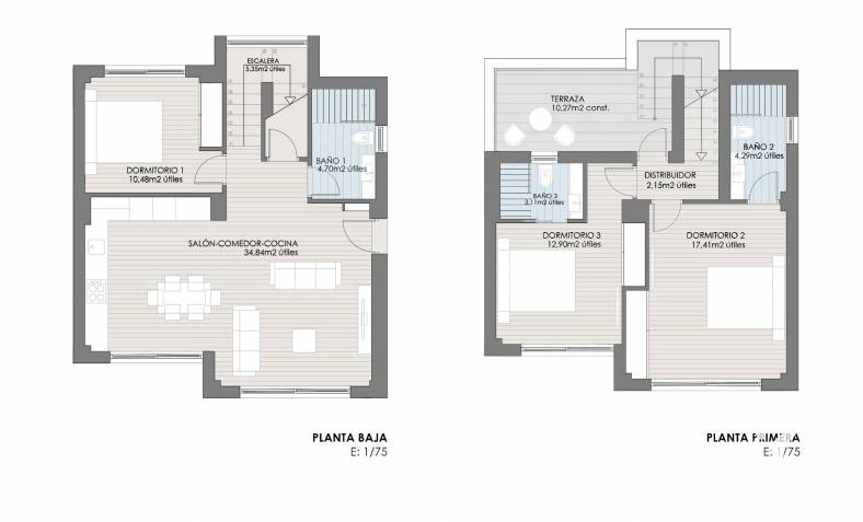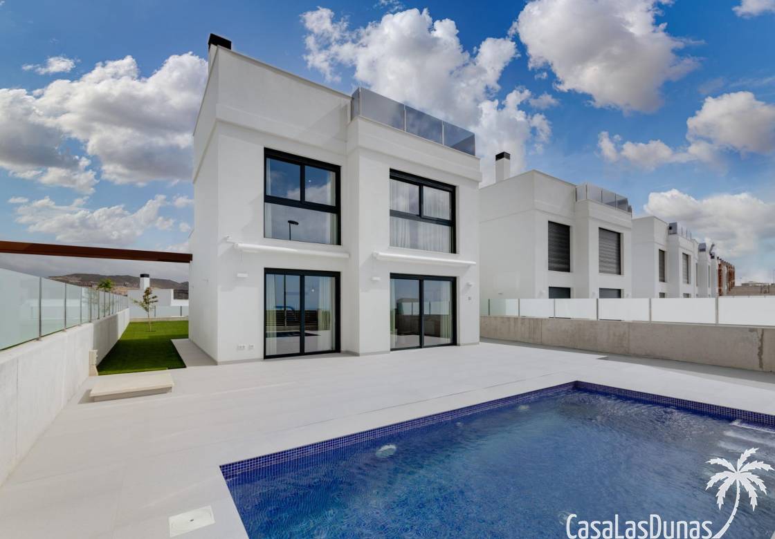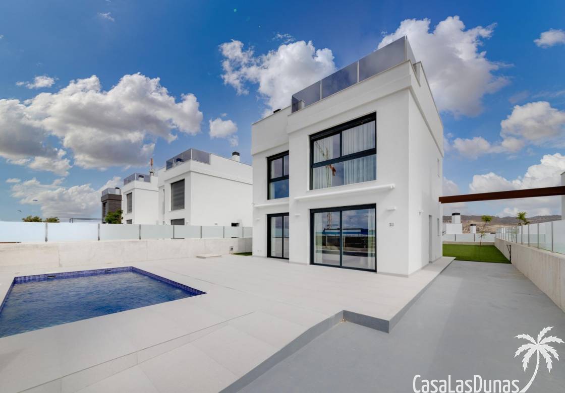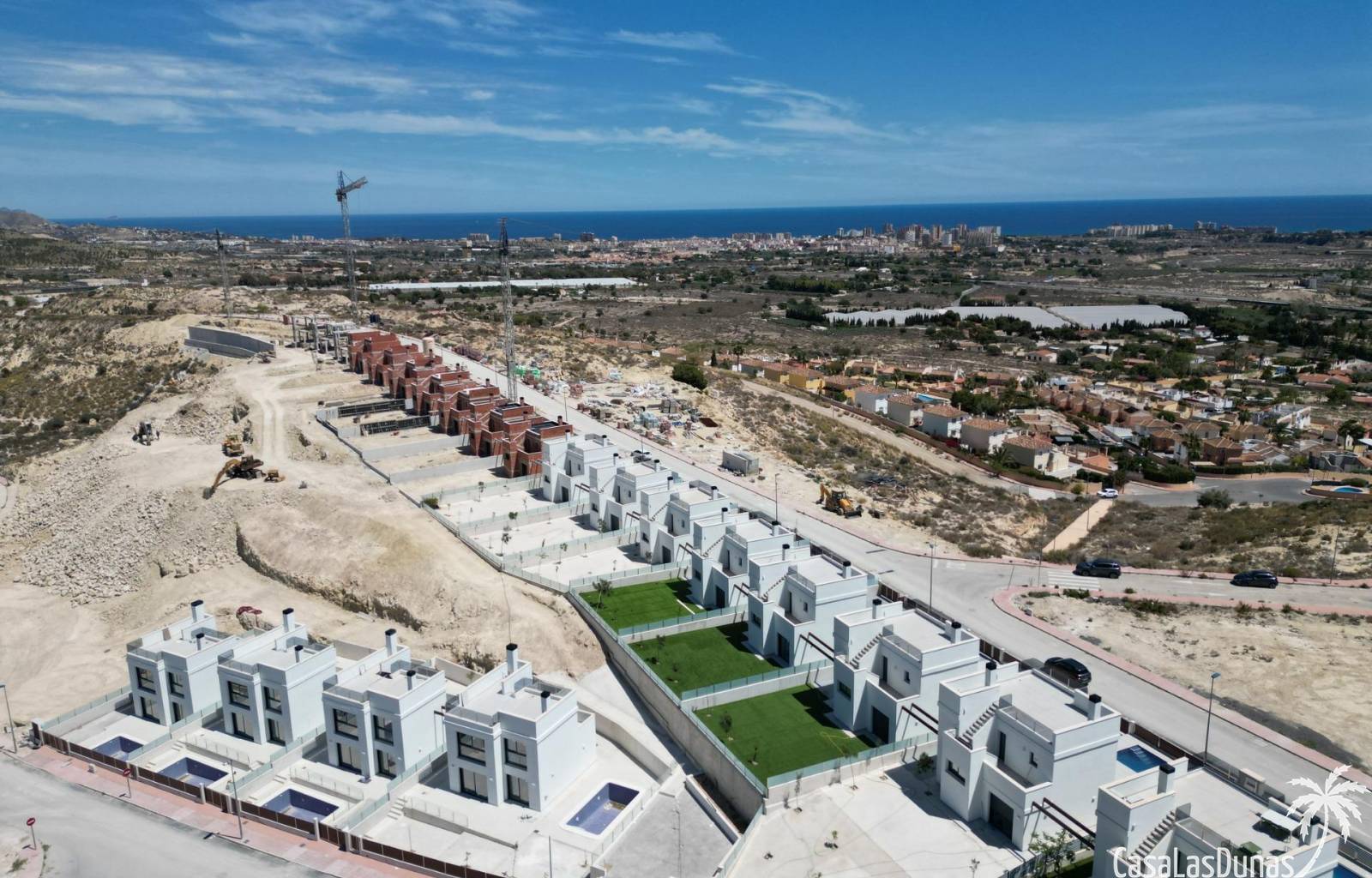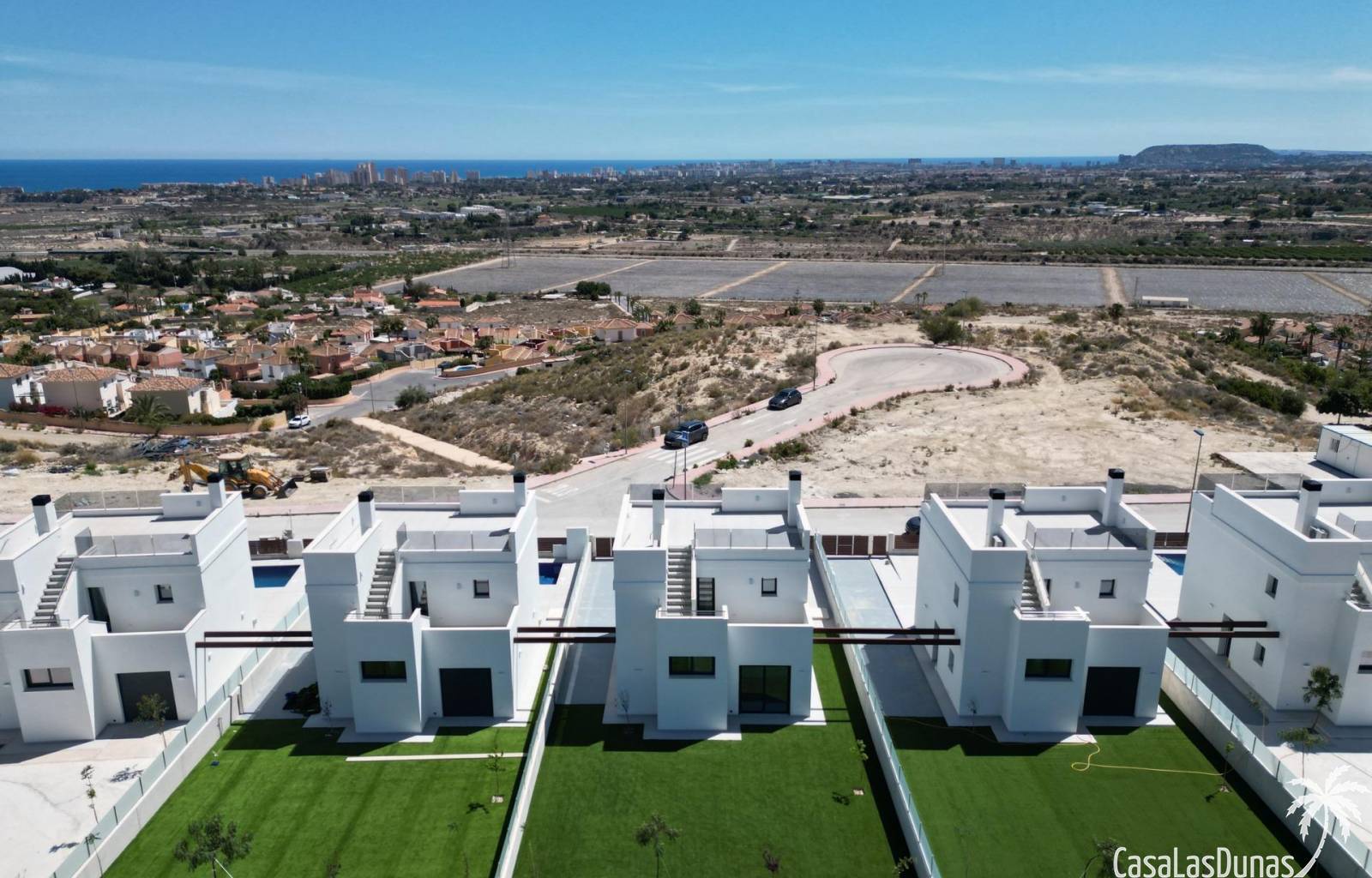 Les maisons se composent de 2 étages et vous avez également accès au solarium avec une vue imprenable sur la mer. Sur de grandes parcelles d'environ 550 m2. Son emplacement surélevé offre une vue magnifique sur les montagnes, la ville d'Alicante et la mer.