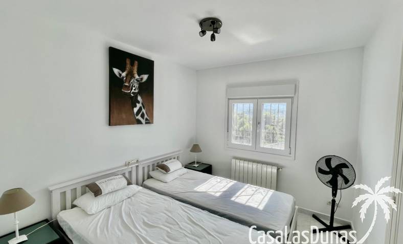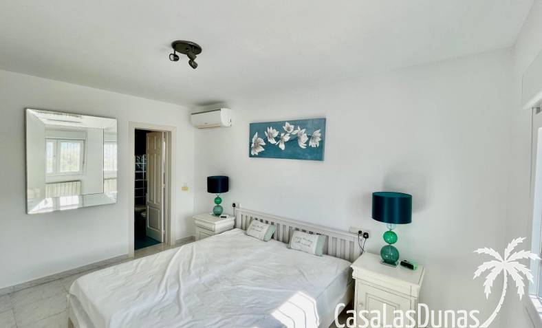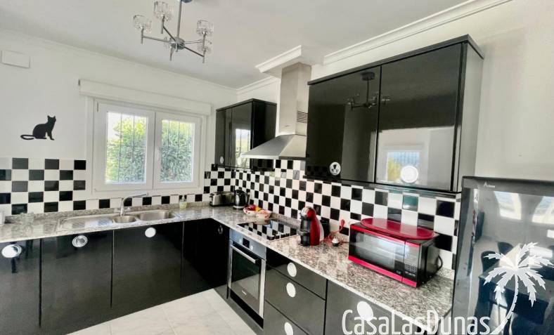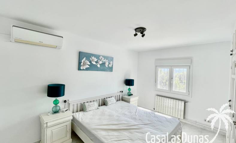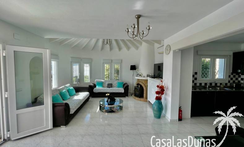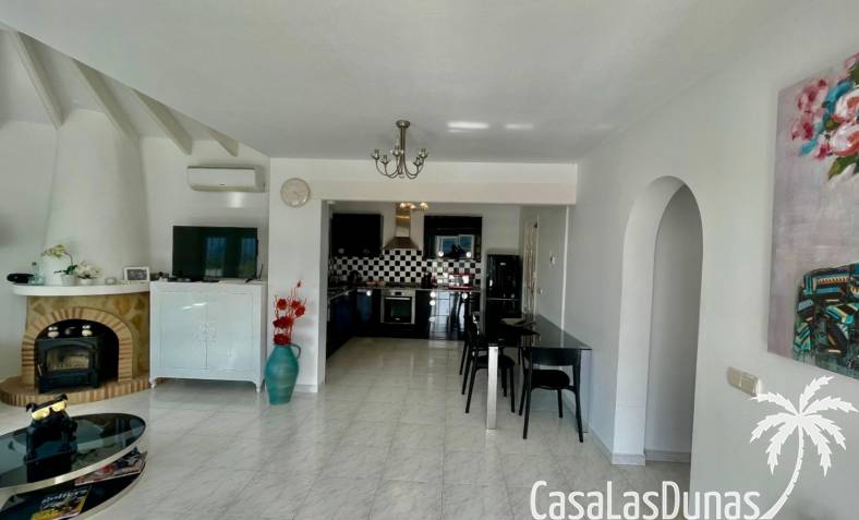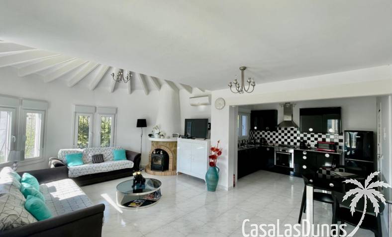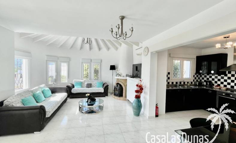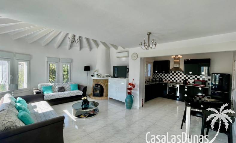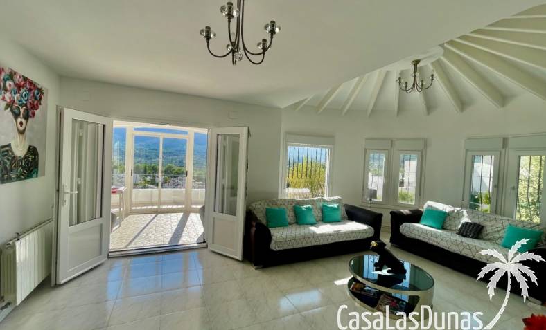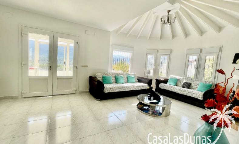 Villa individuelle moderne offrant une vue imprenable sur les montagnes et la vallée, exposée plein sud, située dans le quartier résidentiel prisé de Puerta del Valle. De plain-pied, elle se compose d'un vaste séjour/salle à manger ouvert avec cheminée en pierre et poêle à bois, plafond cathédrale orné d'une grande fenêtre, climatisation réversible, double porte-fenêtre donnant sur une véranda vitrée offrant une vue magnifique sur la vallée et un balcon ensoleillé. La cuisine luxueuse, entièrement équipée, s'ouvre sur une terrasse privée à l'arrière. Un couloir dessert la suite parentale avec deux placards doubles intégrés, climatisation réversible et salle de douche attenante. À ce même niveau se trouvent deux autres chambres avec placards intégrés et une salle de douche familiale. La propriété comprend également un appartement indépendant avec coin salon, cuisine équipée, ventilateur de plafond, chambre avec deux lits simples, espace de rangement et salle de douche attenante. Un grand cellier complète ce bien. À l'extérieur, vous trouverez une piscine de 8 m x 4 m avec terrasses privatives ensoleillées, une douche extérieure, des voiles d'ombrage pour les repas en plein air, ainsi qu'un jardin méditerranéen en terrasses, facile d'entretien et équipé d'un système d'irrigation. La villa dispose d'une entrée sécurisée avec portail et de deux allées : l'une au niveau inférieur et l'autre menant à l'entrée principale de la maison. Un vaste parking est disponible, pouvant accueillir également des camping-cars. Cette propriété bénéficie de fenêtres à double vitrage haut de gamme et d'un chauffage central au gaz. Ce bien exceptionnel serait une superbe résidence familiale ou un excellent investissement locatif saisonnier. Une visite s'impose pour apprécier pleinement ses nombreux atouts et ses vues à couper le souffle.