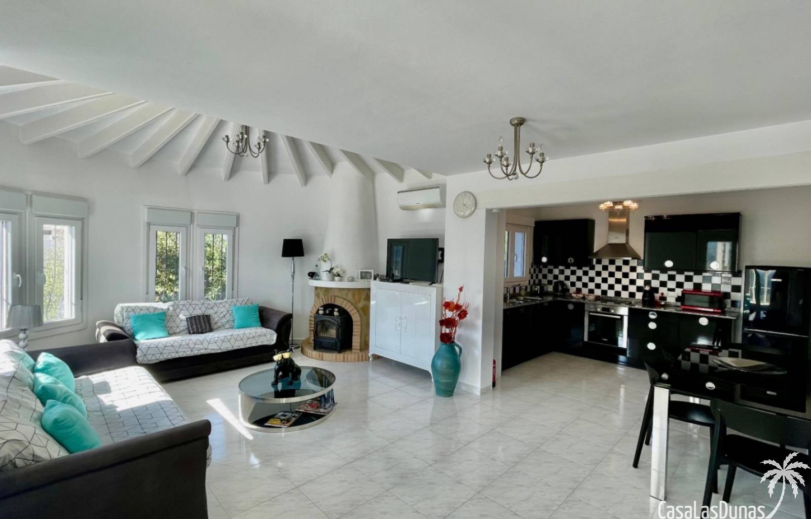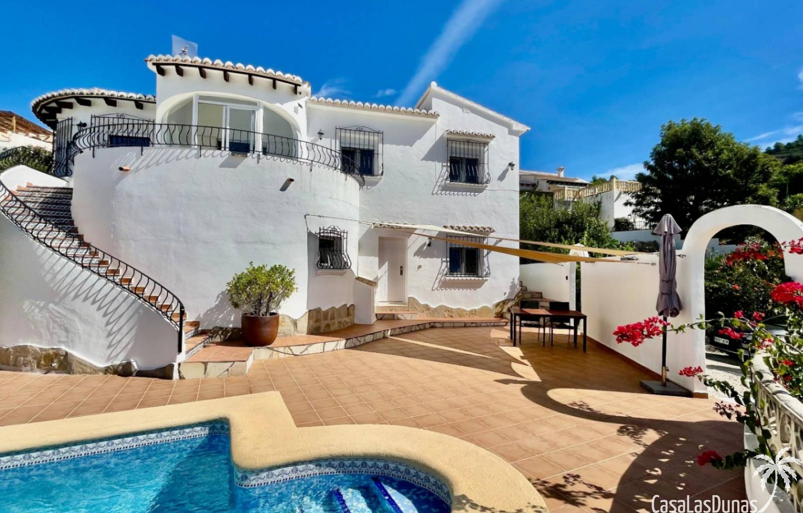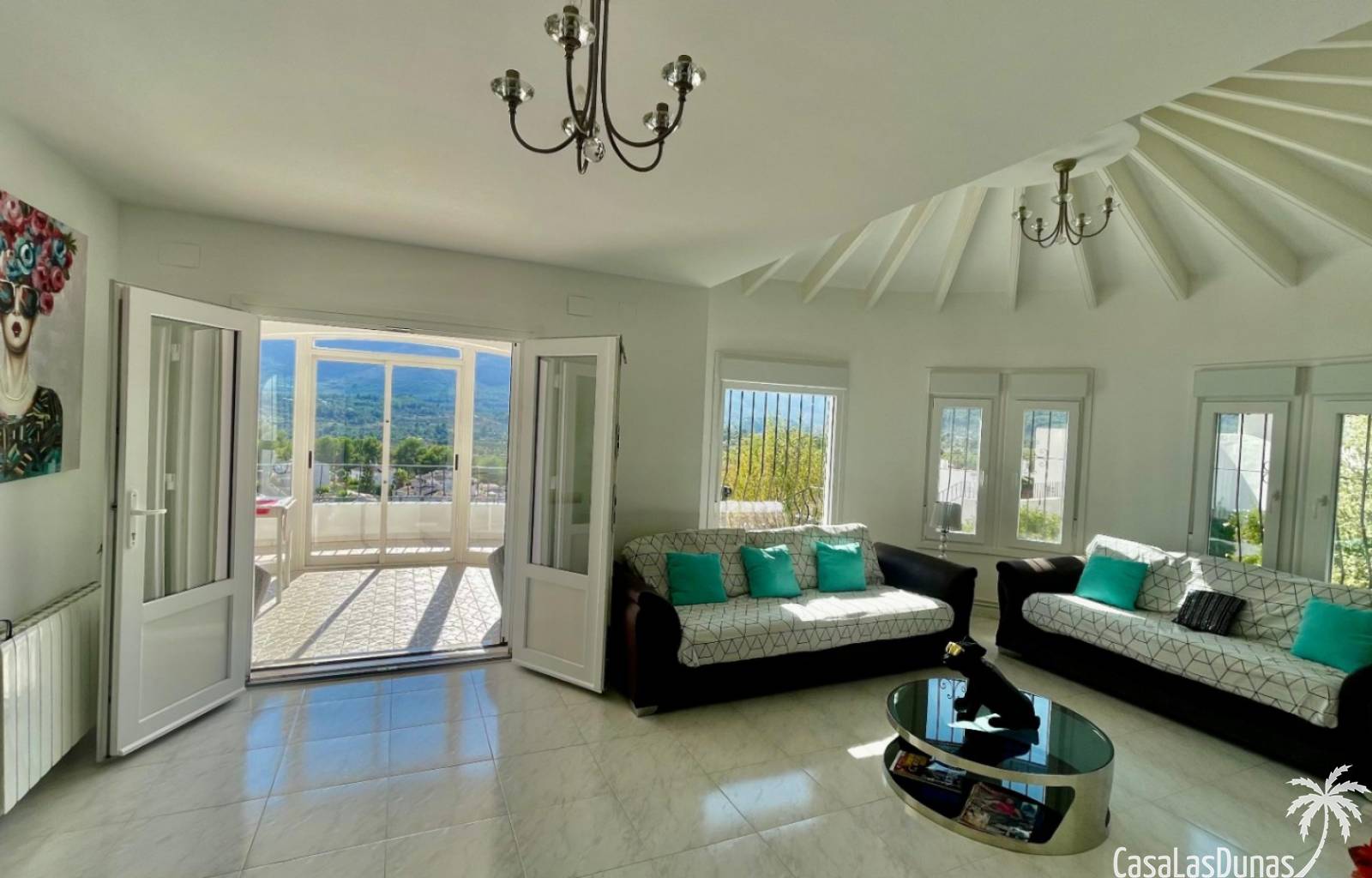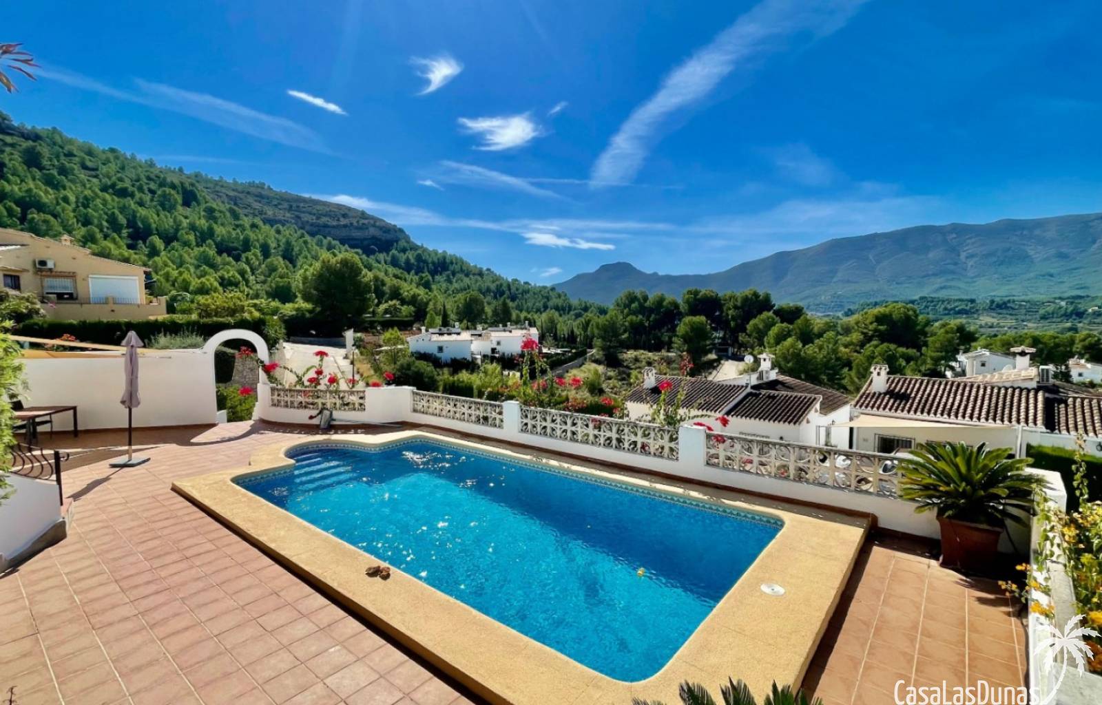 Villa individuelle moderne offrant une vue imprenable sur les montagnes et la vallée, exposée plein sud, située dans le quartier résidentiel prisé de Puerta del Valle. De plain-pied, elle se compose d'un vaste séjour/salle à manger ouvert avec cheminée en pierre et poêle à bois, plafond cathédrale orné d'une grande fenêtre, climatisation réversible, double porte-fenêtre donnant sur une véranda vitrée offrant une vue magnifique sur la vallée et un balcon ensoleillé. La cuisine luxueuse, entièrement équipée, s'ouvre sur une terrasse privée à l'arrière. Un couloir dessert la suite parentale avec deux placards doubles intégrés, climatisation réversible et salle de douche attenante. À ce même niveau se trouvent deux autres chambres avec placards intégrés et une salle de douche familiale. La propriété comprend également un appartement indépendant avec coin salon, cuisine équipée, ventilateur de plafond, chambre avec deux lits simples, espace de rangement et salle de douche attenante. Un grand cellier complète ce bien. À l'extérieur, vous trouverez une piscine de 8 m x 4 m avec terrasses privatives ensoleillées, une douche extérieure, des voiles d'ombrage pour les repas en plein air, ainsi qu'un jardin méditerranéen en terrasses, facile d'entretien et équipé d'un système d'irrigation. La villa dispose d'une entrée sécurisée avec portail et de deux allées : l'une au niveau inférieur et l'autre menant à l'entrée principale de la maison. Un vaste parking est disponible, pouvant accueillir également des camping-cars. Cette propriété bénéficie de fenêtres à double vitrage haut de gamme et d'un chauffage central au gaz. Ce bien exceptionnel serait une superbe résidence familiale ou un excellent investissement locatif saisonnier. Une visite s'impose pour apprécier pleinement ses nombreux atouts et ses vues à couper le souffle.