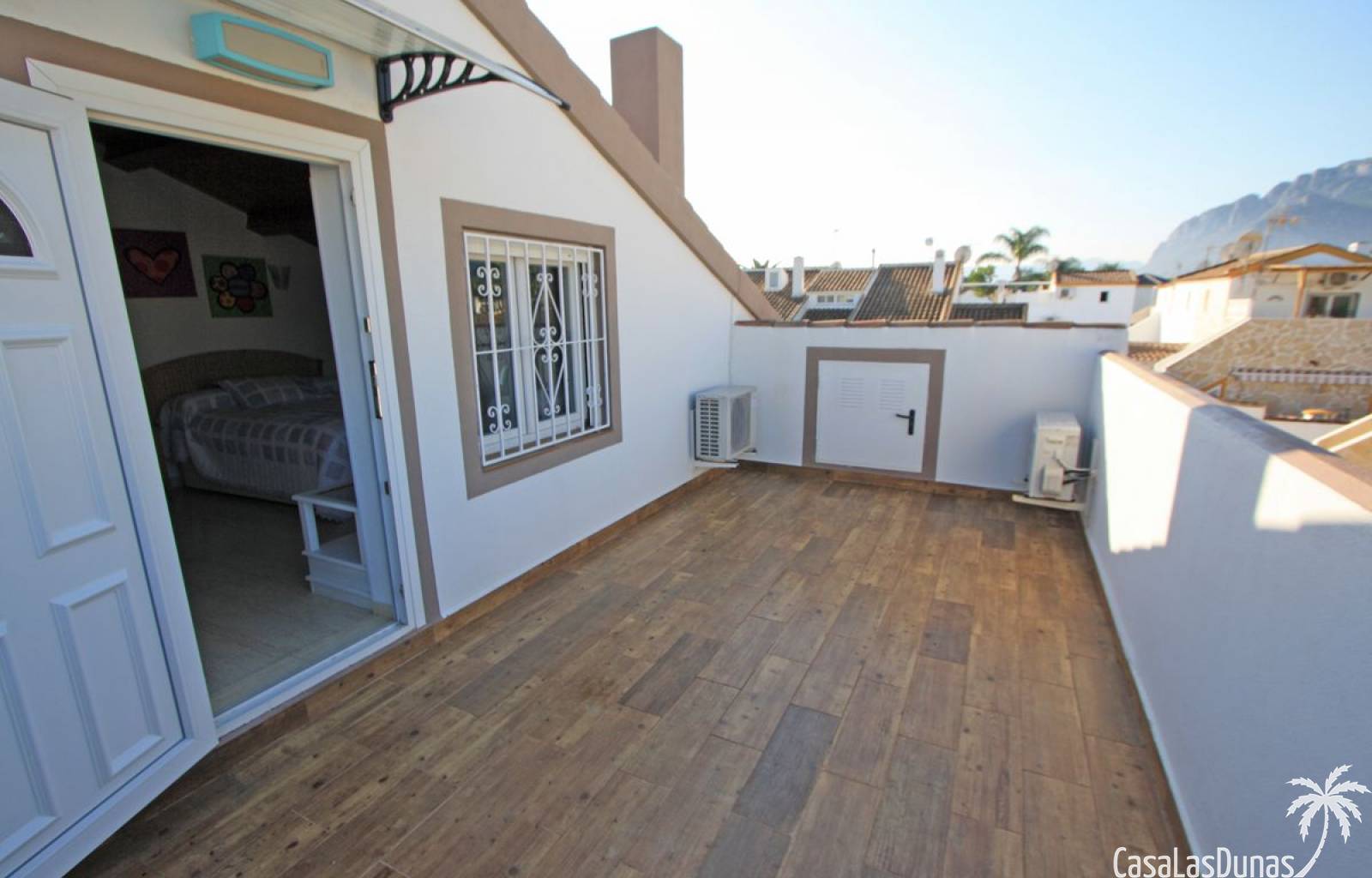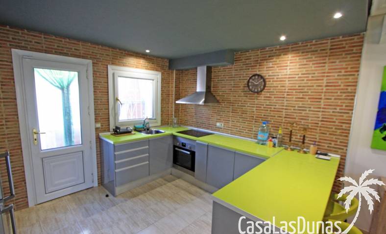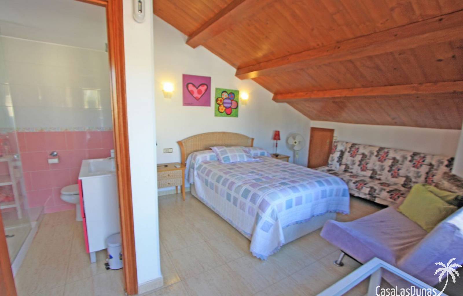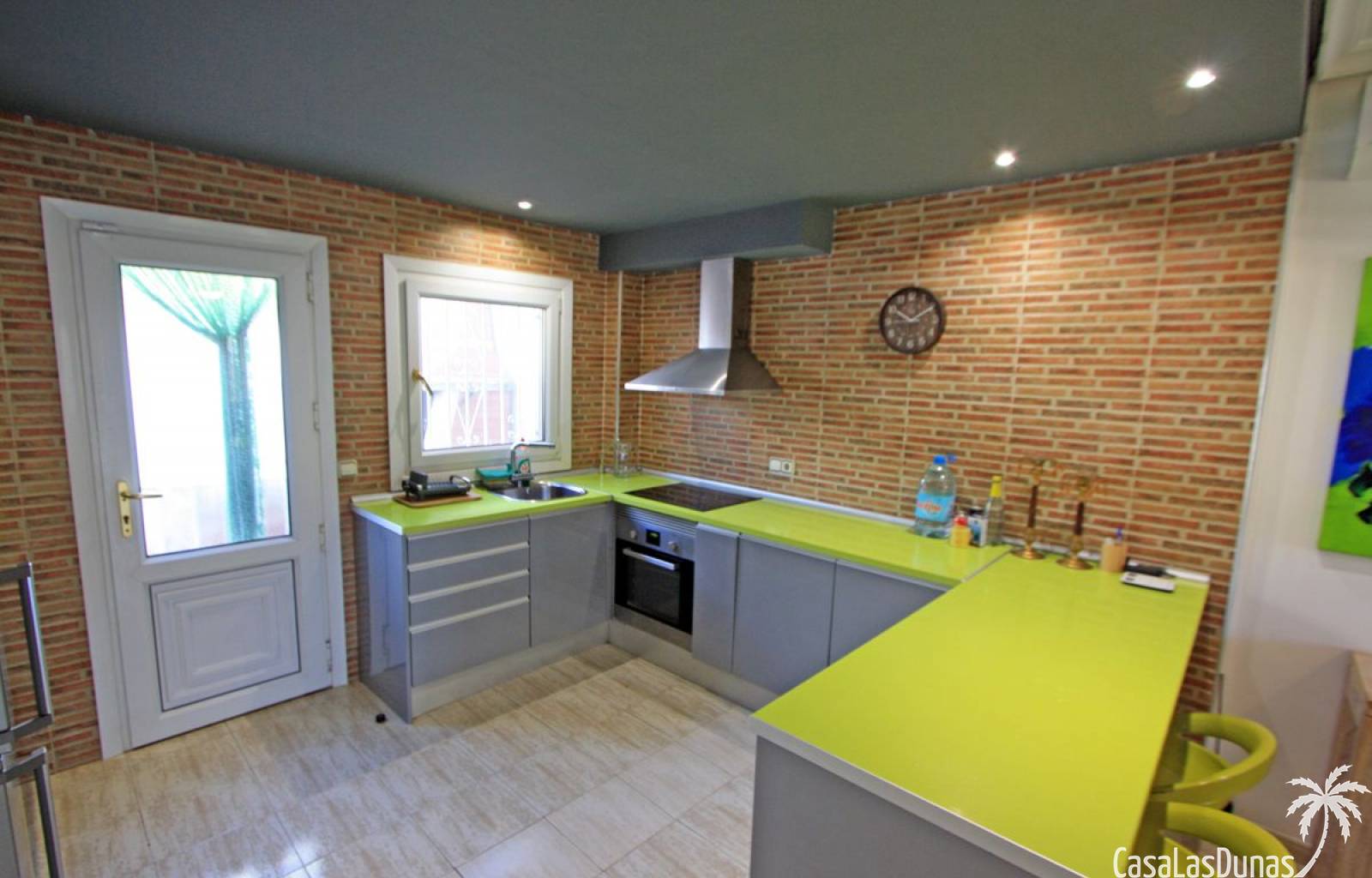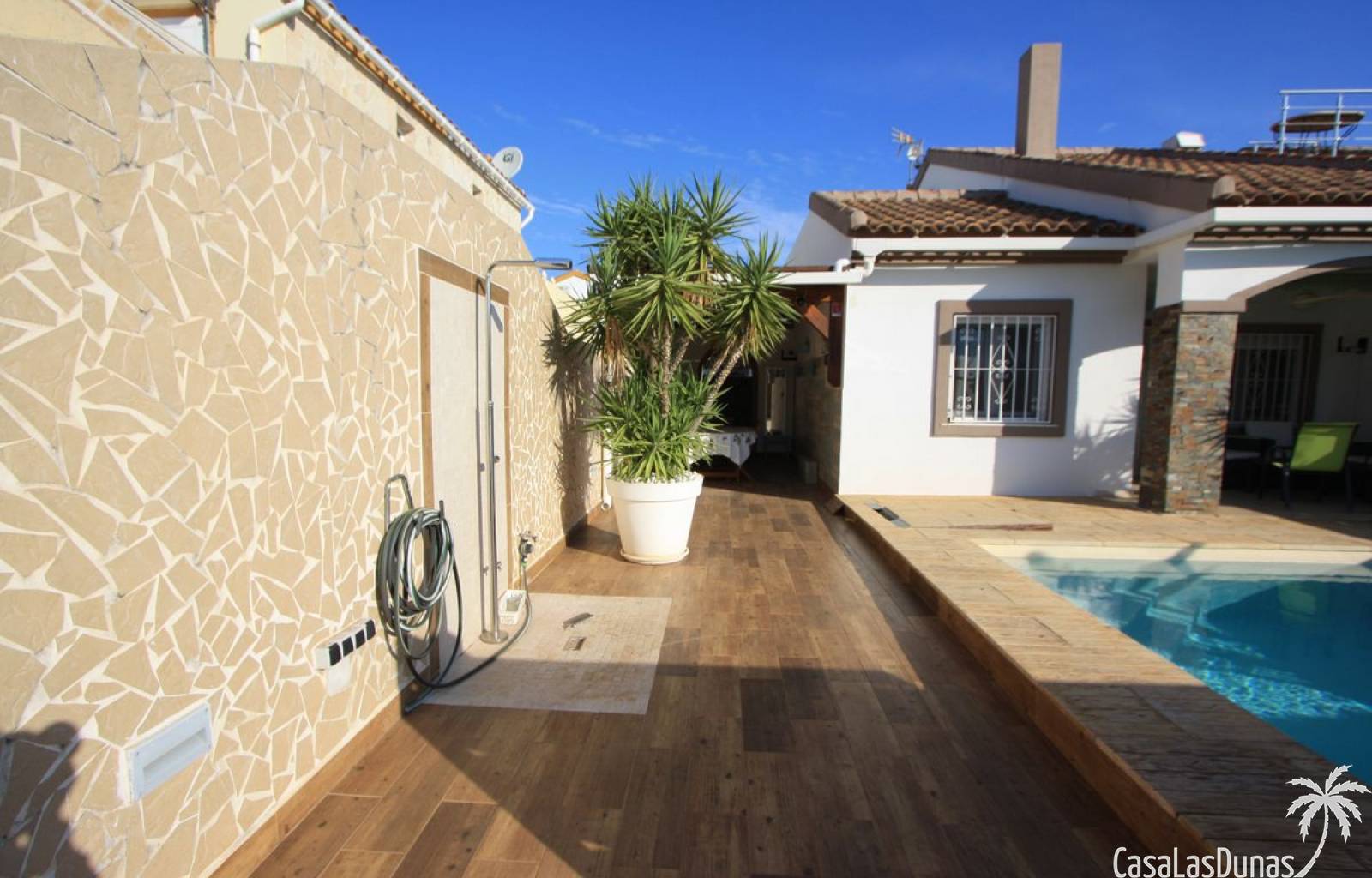 Charmante villa mitoyenne avec petite piscine privée, située à 500 mètres des vastes plages de sable d'El Vergel. Le rez-de-chaussée comprend un séjour/salle à manger avec cuisine ouverte et accès à une terrasse couverte à l'avant et à un patio à l'arrière. On y trouve également deux chambres et une salle de bains. À l'étage (avec accès indépendant), se trouve une chambre d'amis avec salle de bains et terrasse sur le toit.