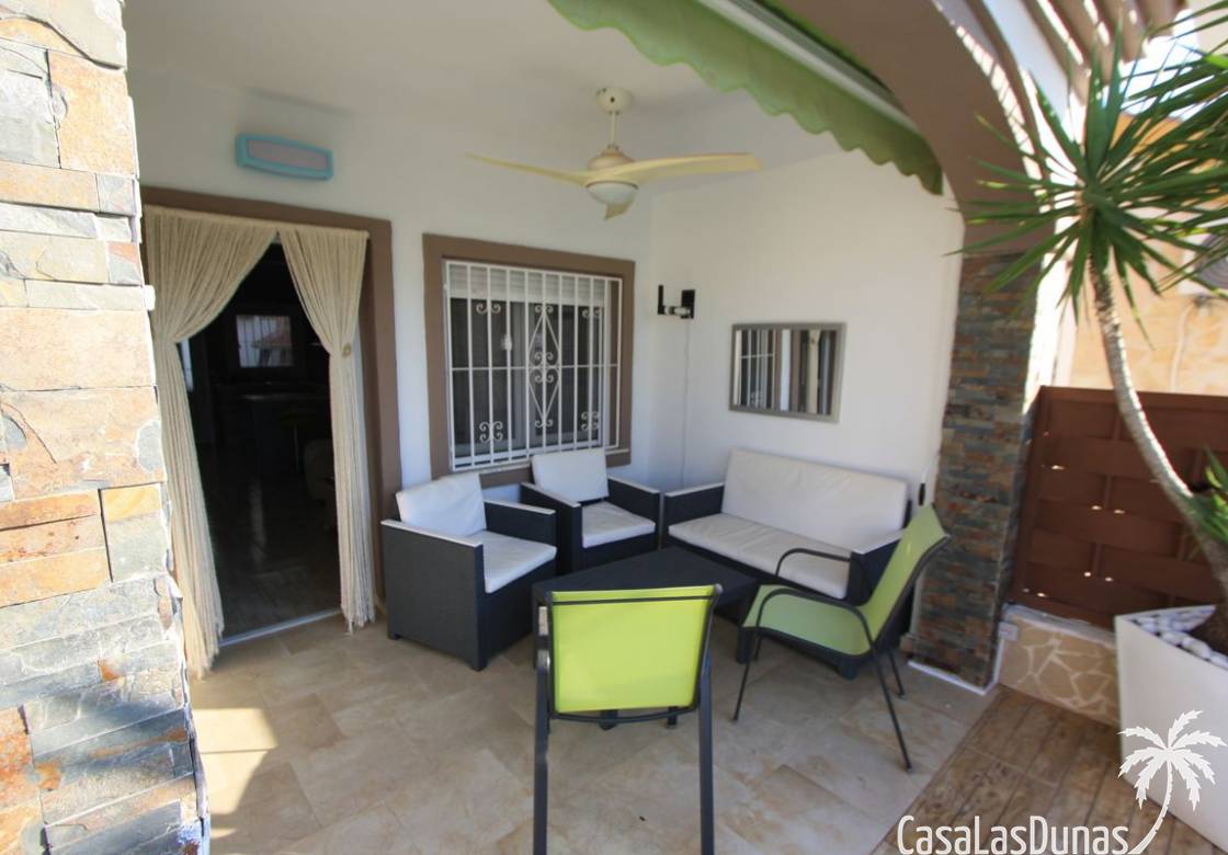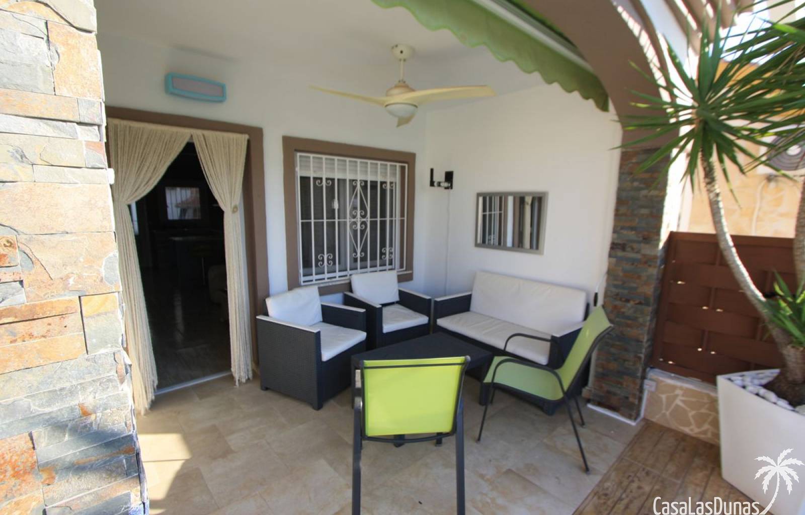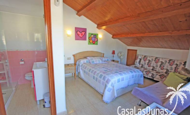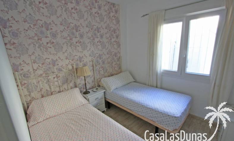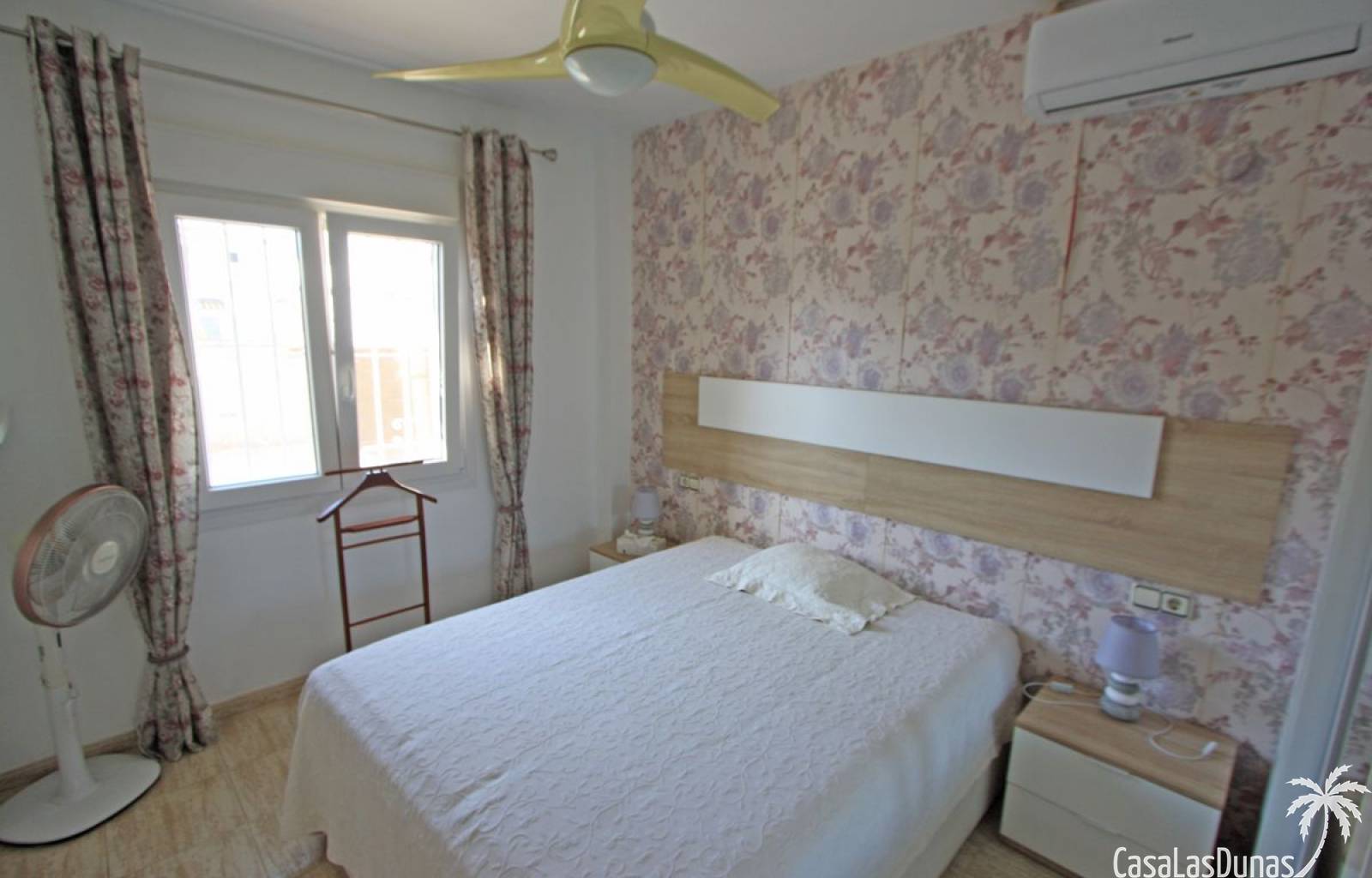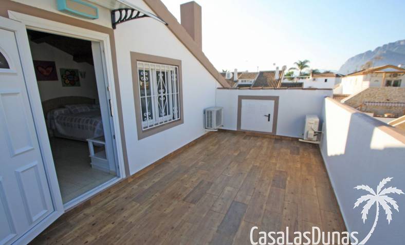 Charmante villa mitoyenne avec petite piscine privée, située à 500 mètres des vastes plages de sable d'El Vergel. Le rez-de-chaussée comprend un séjour/salle à manger avec cuisine ouverte et accès à une terrasse couverte à l'avant et à un patio à l'arrière. On y trouve également deux chambres et une salle de bains. À l'étage (avec accès indépendant), se trouve une chambre d'amis avec salle de bains et terrasse sur le toit.