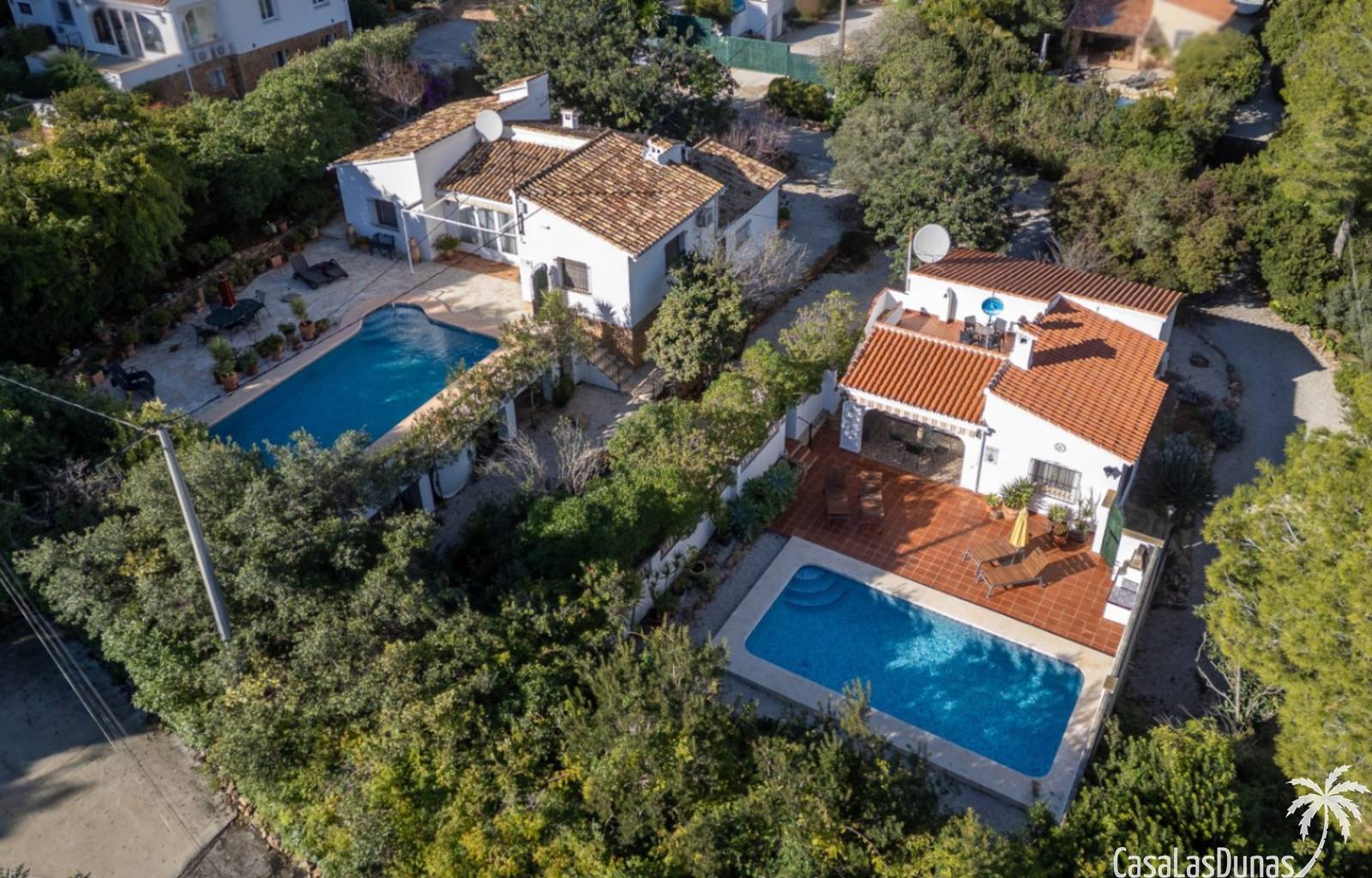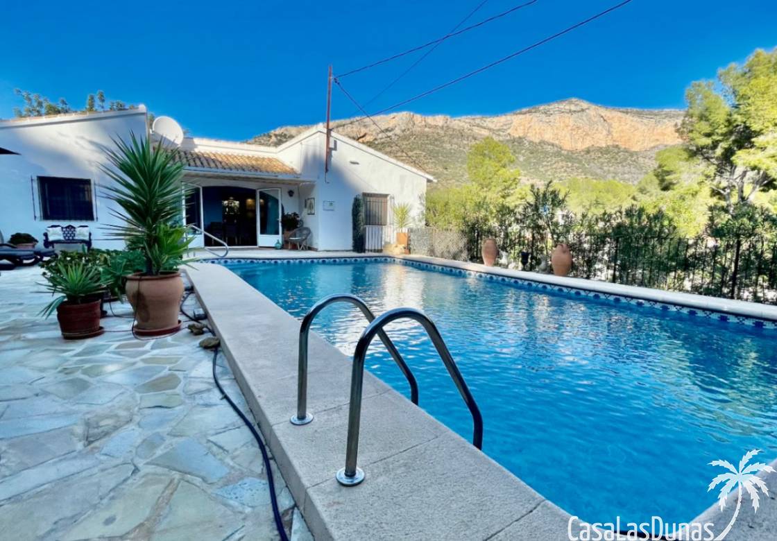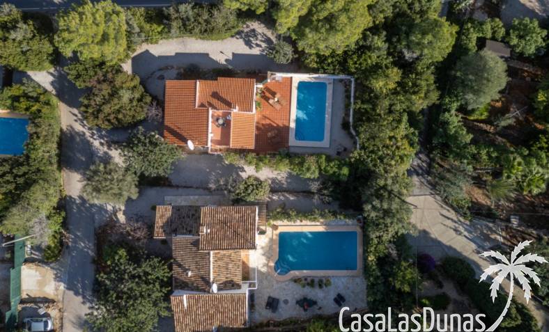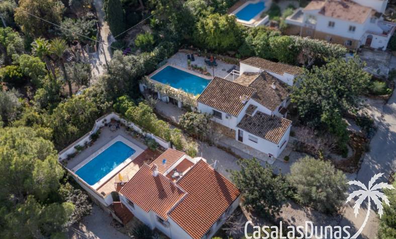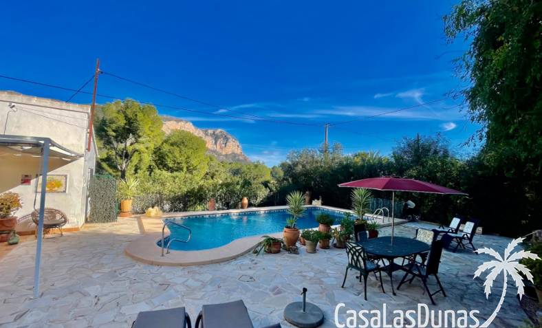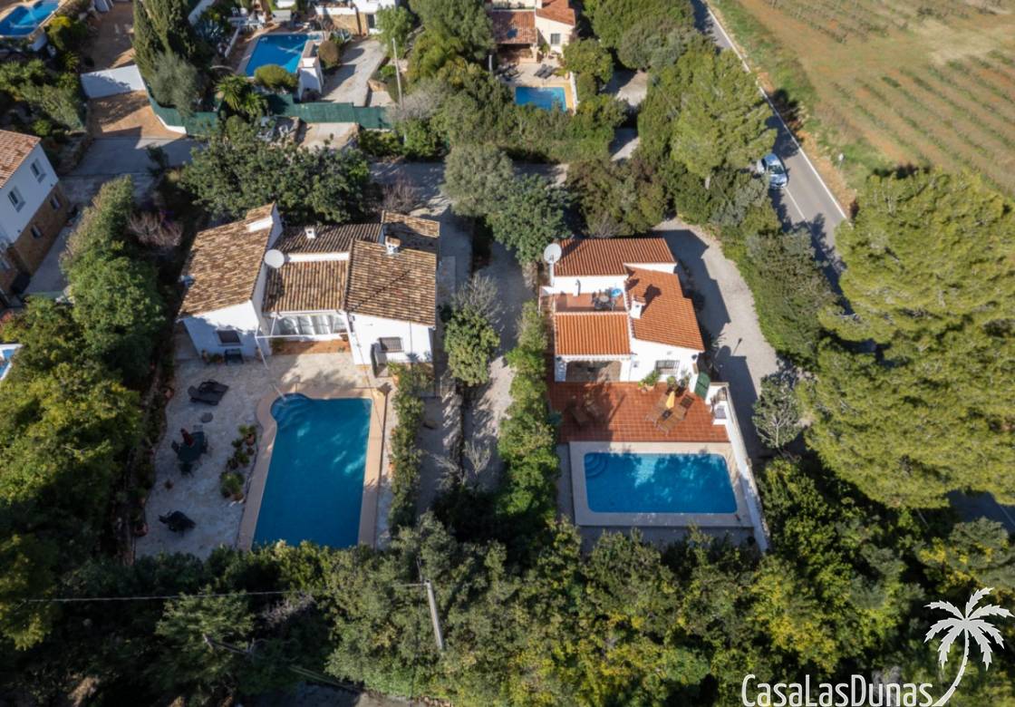 Deux magnifiques fincas avec piscines, situées sur un terrain privé de 2000 m² offrant une vue imprenable sur le majestueux Montgó, à proximité du village de Jesús Pobre. Entourées d'une charmante végétation méditerranéenne et de jardins luxuriants, ces fincas proposent de nombreux espaces de détente et terrasses accueillantes. La plus grande des deux villas dispose d'un vaste séjour/salle à manger avec cheminée, d'une cuisine américaine moderne, de deux grandes chambres doubles (dont une avec salle d'eau privative) et d'une salle d'eau séparée, offrant espace et confort. Une pièce polyvalente, à quelques pas de la cuisine, peut servir de troisième chambre double. Un sous-sol spacieux offre un potentiel d'aménagement supplémentaire ou un grand espace de rangement. La terrasse ensoleillée de la piscine (10 x 5 m) offre une vue incomparable sur le Montgó et invite à la relaxation. La plus petite des deux maisons propose un séjour/salle à manger chaleureux avec cheminée, une cuisine séparée, deux chambres doubles (dont une avec salle d'eau privative) et une salle d'eau. Le jardin aménagé avec soin, agrémenté d'une piscine de 8 x 4 m et d'un vaste espace solarium, offre un véritable havre de paix. Une terrasse sur le toit complète cet ensemble et offre une vue imprenable sur la campagne environnante. Les deux maisons disposent de vastes parkings pouvant accueillir plusieurs véhicules, garantissant ainsi un confort optimal à leurs occupants. Une maison de rêve, idéale pour une famille multigénérationnelle, deux familles, une colocation ou encore un investissement locatif. Ne manquez pas cette occasion unique de tomber sous le charme de ces fincas exceptionnelles !