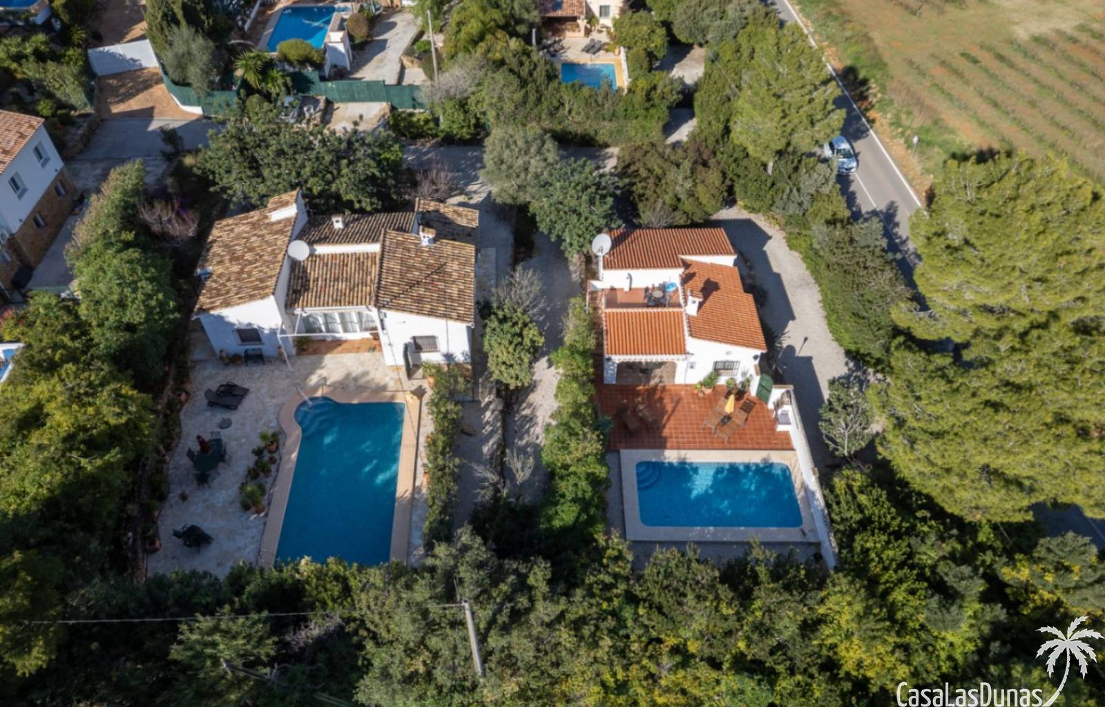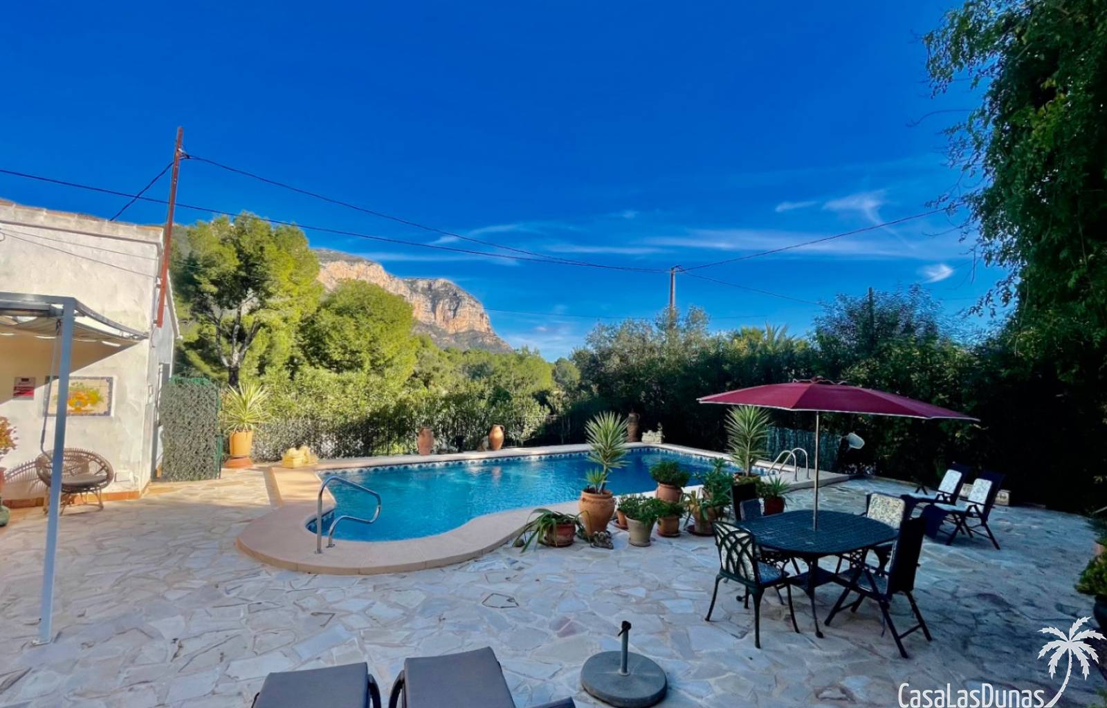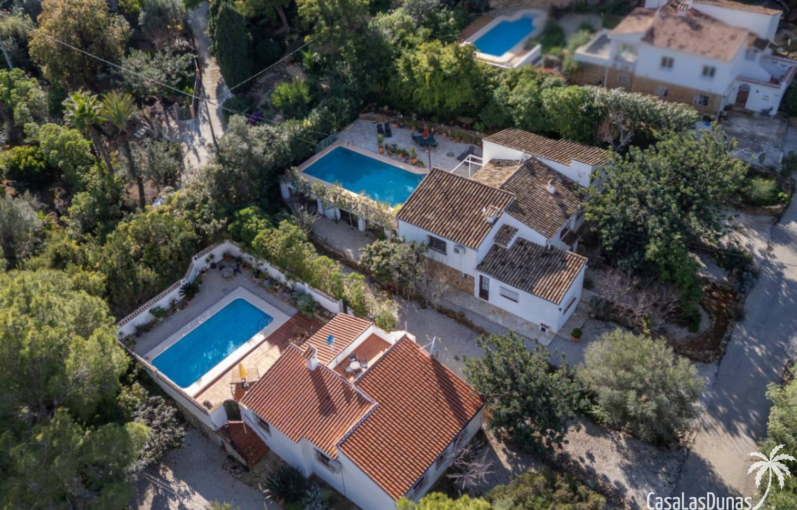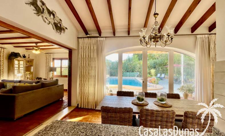 Deux magnifiques fincas avec piscines, situées sur un terrain privé de 2000 m² offrant une vue imprenable sur le majestueux Montgó, à proximité du village de Jesús Pobre. Entourées d'une charmante végétation méditerranéenne et de jardins luxuriants, ces fincas proposent de nombreux espaces de détente et terrasses accueillantes. La plus grande des deux villas dispose d'un vaste séjour/salle à manger avec cheminée, d'une cuisine américaine moderne, de deux grandes chambres doubles (dont une avec salle d'eau privative) et d'une salle d'eau séparée, offrant espace et confort. Une pièce polyvalente, à quelques pas de la cuisine, peut servir de troisième chambre double. Un sous-sol spacieux offre un potentiel d'aménagement supplémentaire ou un grand espace de rangement. La terrasse ensoleillée de la piscine (10 x 5 m) offre une vue incomparable sur le Montgó et invite à la relaxation. La plus petite des deux maisons propose un séjour/salle à manger chaleureux avec cheminée, une cuisine séparée, deux chambres doubles (dont une avec salle d'eau privative) et une salle d'eau. Le jardin aménagé avec soin, agrémenté d'une piscine de 8 x 4 m et d'un vaste espace solarium, offre un véritable havre de paix. Une terrasse sur le toit complète cet ensemble et offre une vue imprenable sur la campagne environnante. Les deux maisons disposent de vastes parkings pouvant accueillir plusieurs véhicules, garantissant ainsi un confort optimal à leurs occupants. Une maison de rêve, idéale pour une famille multigénérationnelle, deux familles, une colocation ou encore un investissement locatif. Ne manquez pas cette occasion unique de tomber sous le charme de ces fincas exceptionnelles !