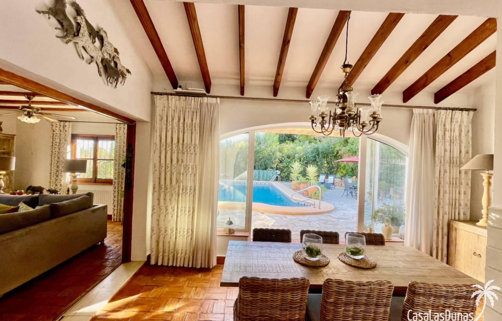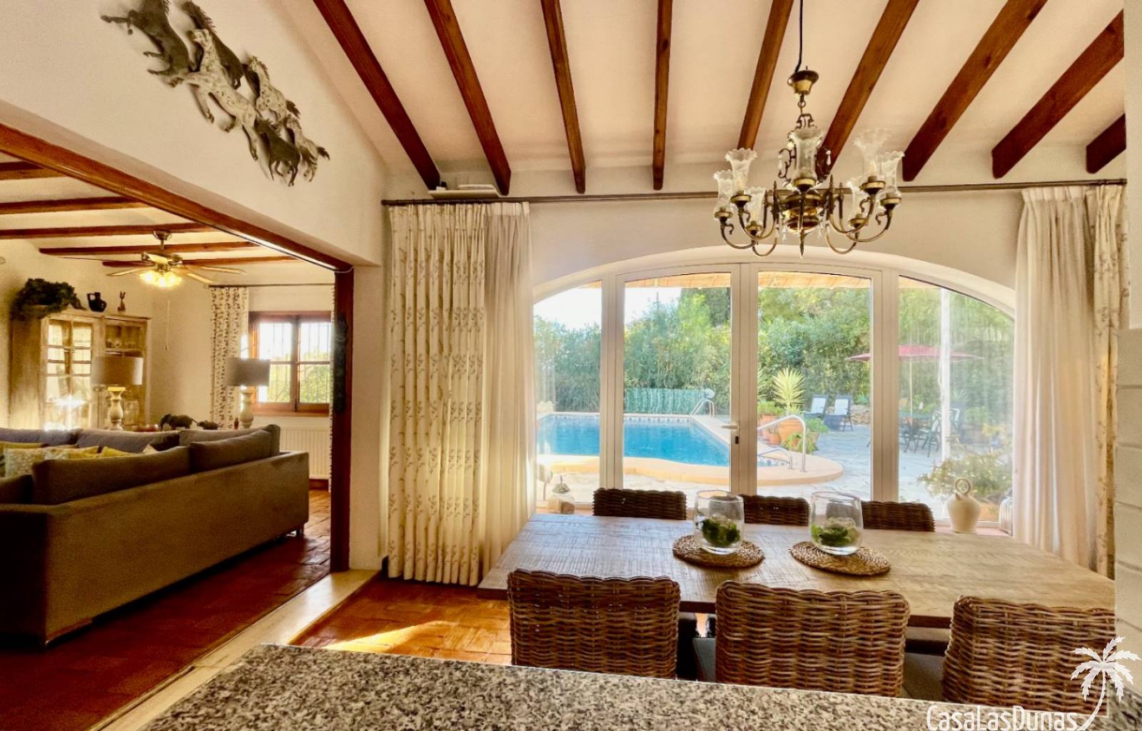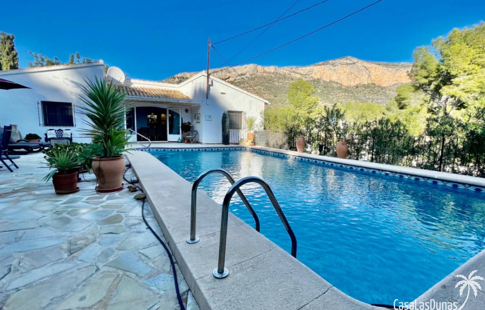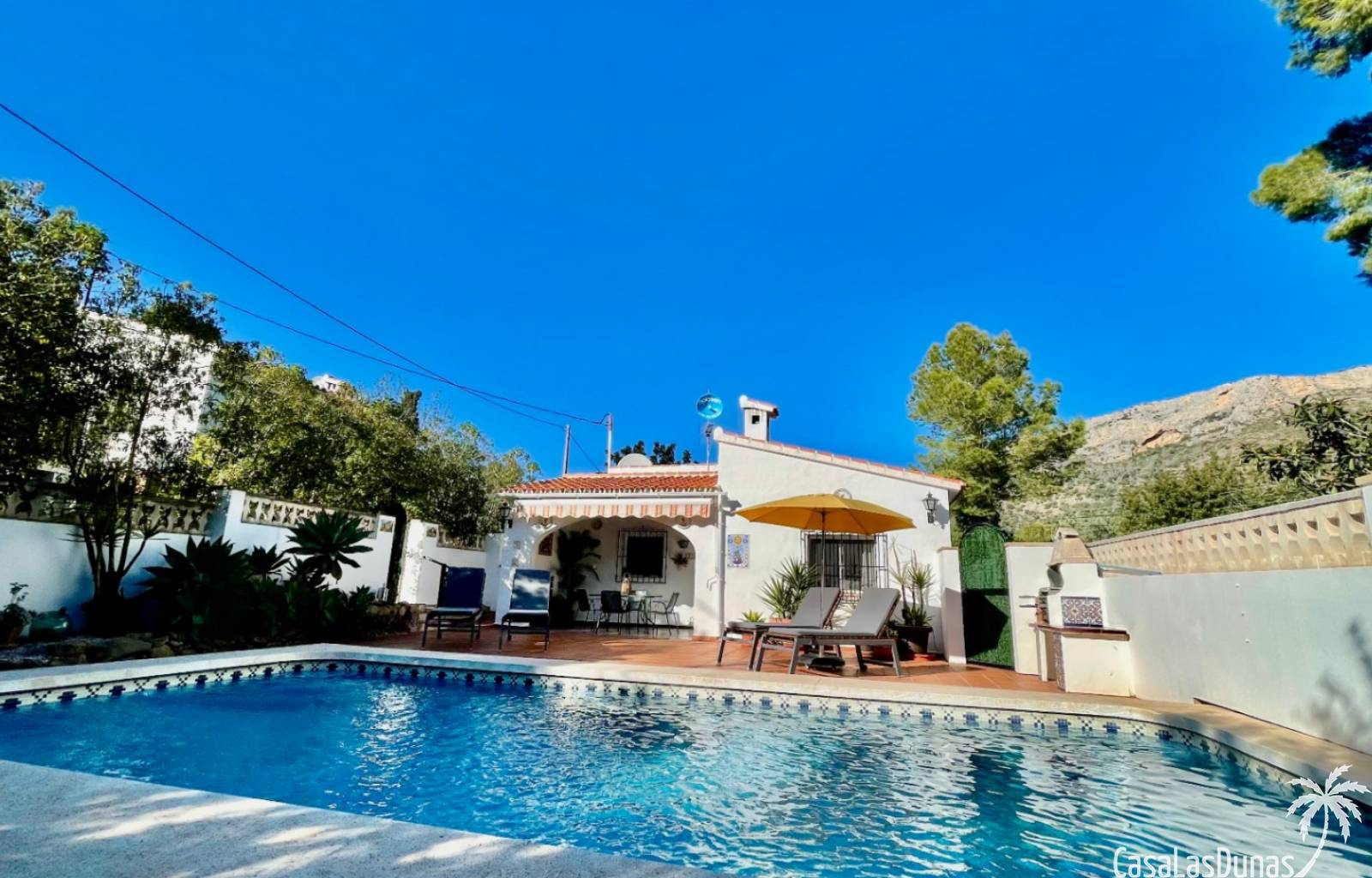 Deux magnifiques fincas avec piscines, situées sur un terrain privé de 2000 m² offrant une vue imprenable sur le majestueux Montgó, à proximité du village de Jesús Pobre. Entourées d'une charmante végétation méditerranéenne et de jardins luxuriants, ces fincas proposent de nombreux espaces de détente et terrasses accueillantes. La plus grande des deux villas dispose d'un vaste séjour/salle à manger avec cheminée, d'une cuisine américaine moderne, de deux grandes chambres doubles (dont une avec salle d'eau privative) et d'une salle d'eau séparée, offrant espace et confort. Une pièce polyvalente, à quelques pas de la cuisine, peut servir de troisième chambre double. Un sous-sol spacieux offre un potentiel d'aménagement supplémentaire ou un grand espace de rangement. La terrasse ensoleillée de la piscine (10 x 5 m) offre une vue incomparable sur le Montgó et invite à la relaxation. La plus petite des deux maisons propose un séjour/salle à manger chaleureux avec cheminée, une cuisine séparée, deux chambres doubles (dont une avec salle d'eau privative) et une salle d'eau. Le jardin aménagé avec soin, agrémenté d'une piscine de 8 x 4 m et d'un vaste espace solarium, offre un véritable havre de paix. Une terrasse sur le toit complète cet ensemble et offre une vue imprenable sur la campagne environnante. Les deux maisons disposent de vastes parkings pouvant accueillir plusieurs véhicules, garantissant ainsi un confort optimal à leurs occupants. Une maison de rêve, idéale pour une famille multigénérationnelle, deux familles, une colocation ou encore un investissement locatif. Ne manquez pas cette occasion unique de tomber sous le charme de ces fincas exceptionnelles !
