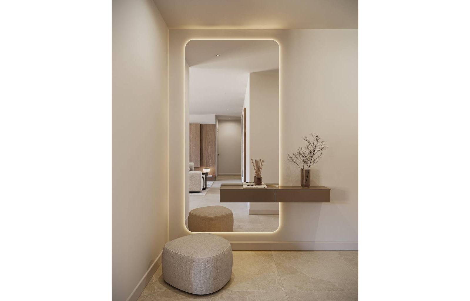 Chaque logement a été soigneusement conçu pour optimiser la lumière, l'espace et le confort. Les agencements spacieux et ouverts s'intègrent parfaitement aux grandes terrasses, idéales pour se détendre ou recevoir. Les matériaux haut de gamme, les cuisines entièrement meublées et équipées, ainsi que le chauffage au sol dans toutes les pièces (avec chauffage électrique dans les salles de bains) créent une atmosphère chaleureuse et accueillante tout au long de l'année.