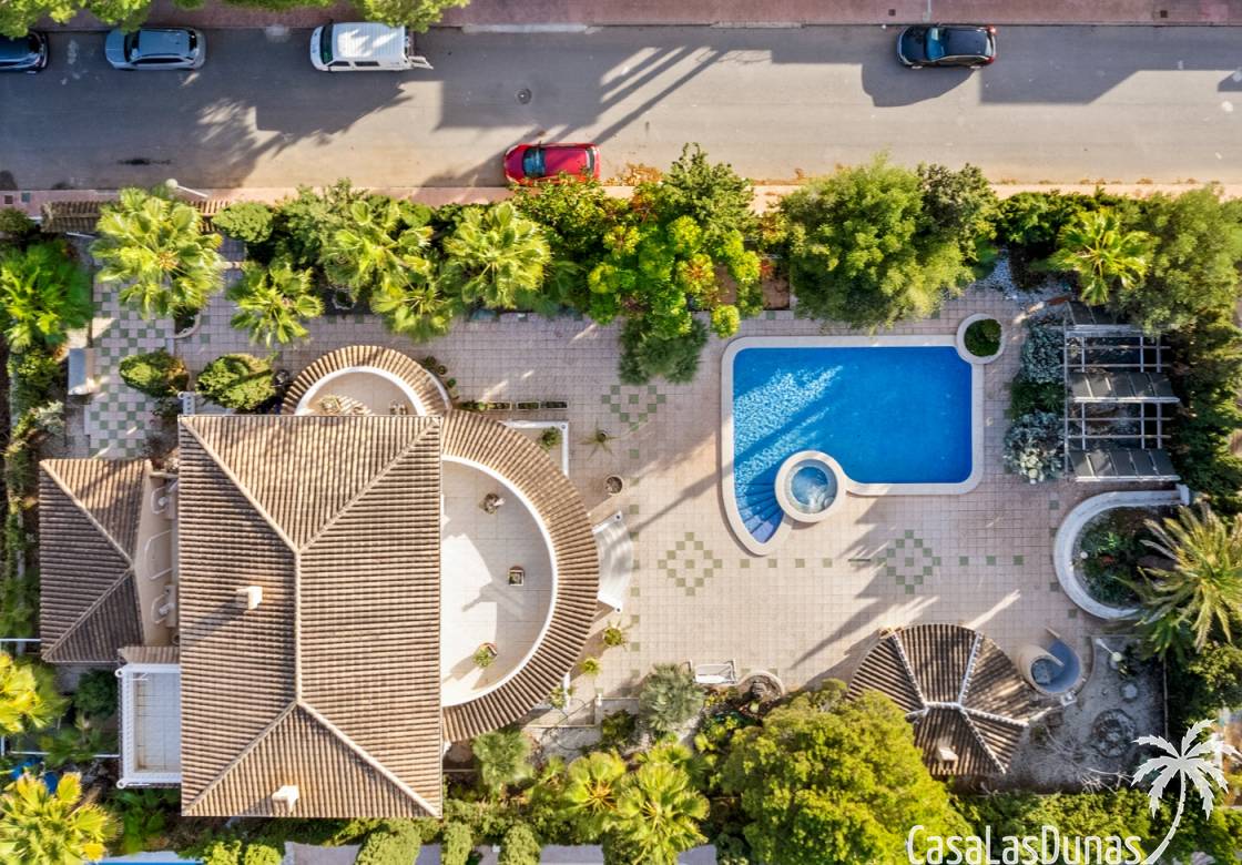 L’environnement extérieur est l’un des plus grands atouts de cette villa. Le vaste jardin privé entoure la maison et apporte un sentiment de sérénité et d’intimité. La piscine privée, avec jacuzzi intégré, est l’endroit idéal pour profiter des journées ensoleillées.
