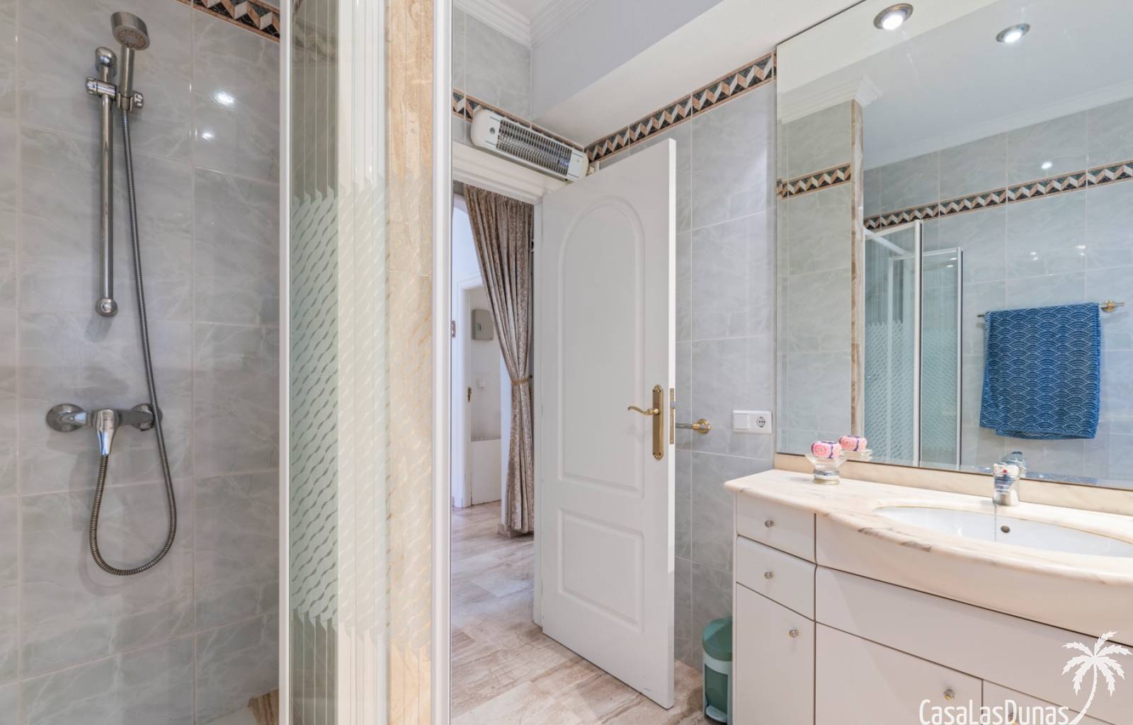 À l'étage supérieur se trouvent les chambres, toutes spacieuses et équipées de placards intégrés. La suite parentale est un véritable bijou, avec deux terrasses privées offrant des vues spectaculaires et un espace de détente exclusif. Cette chambre comprend également une salle de bains en suite élégamment conçue, avec baignoire et douche pour un maximum de confort.