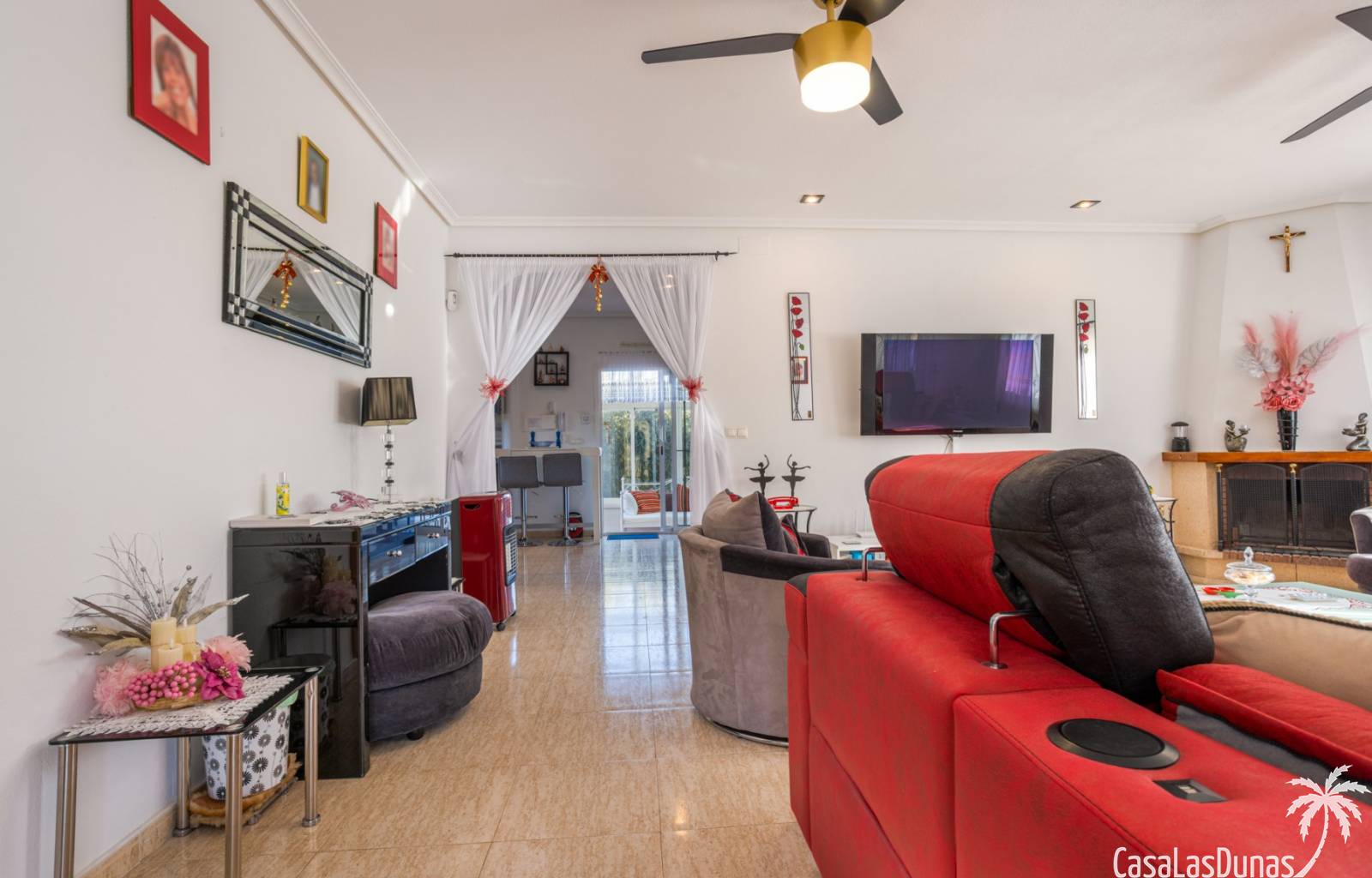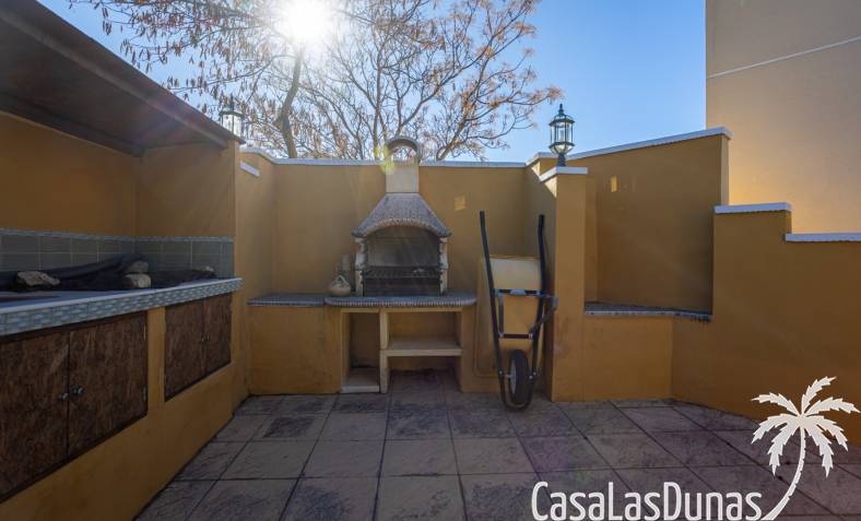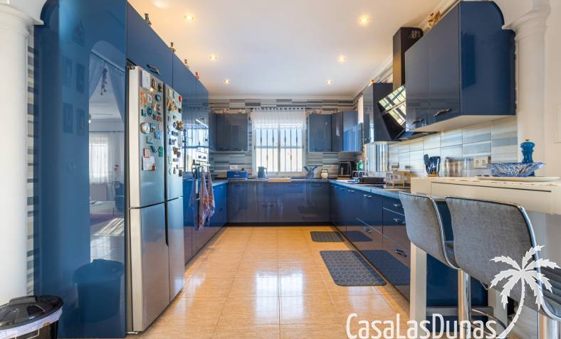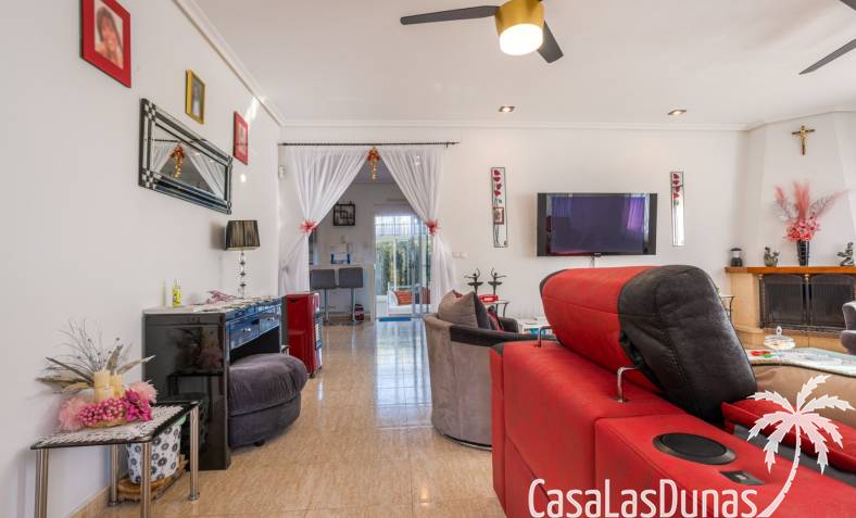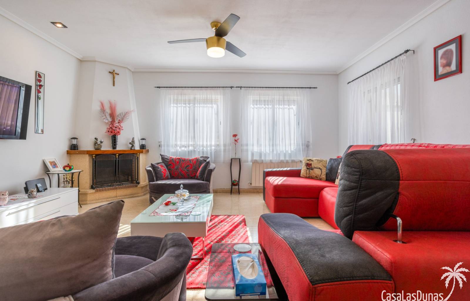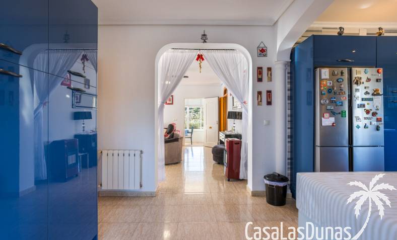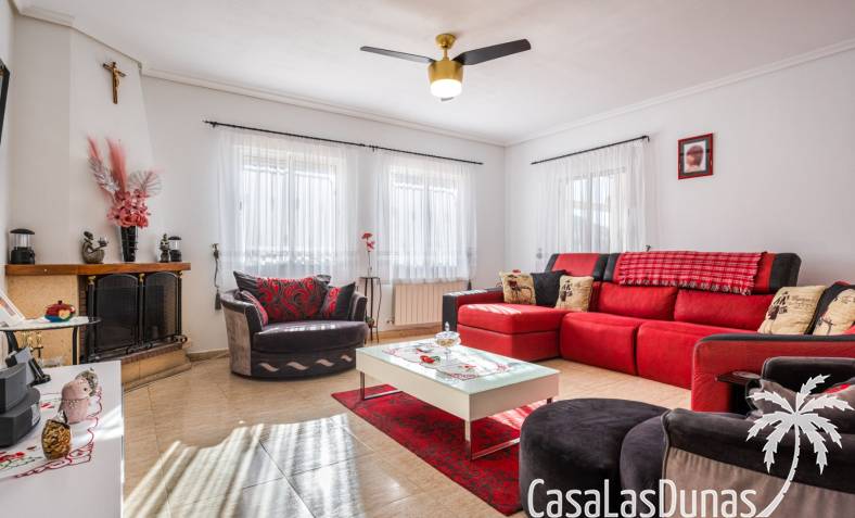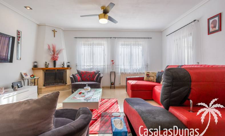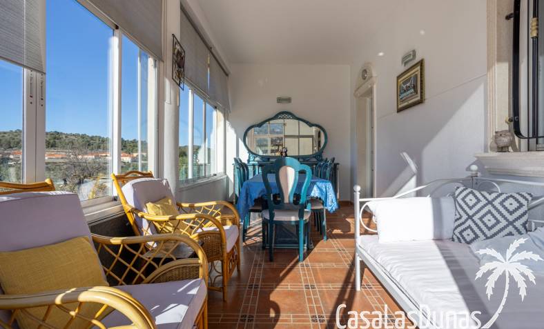 Le salon est l'un des atouts majeurs de la maison. Sa cheminée lui confère chaleur et caractère, en faisant un lieu idéal pour les mois plus frais. La maison est équipée de la climatisation, du chauffage central et d'un système de chauffage autonome, garantissant un confort optimal toute l'année. De plus, elle est vendue entièrement meublée et équipée de tous les appareils électroménagers, prête à emménager sans travaux.