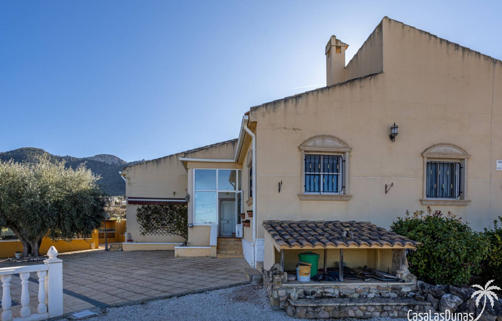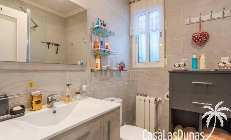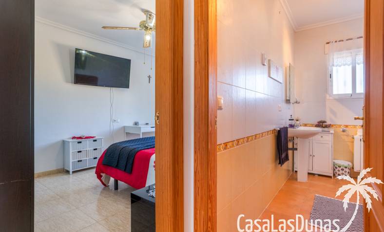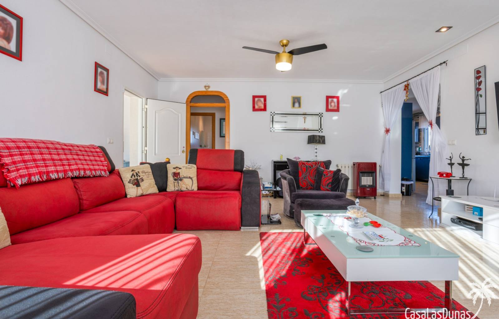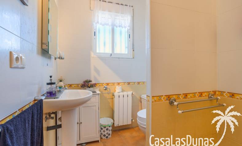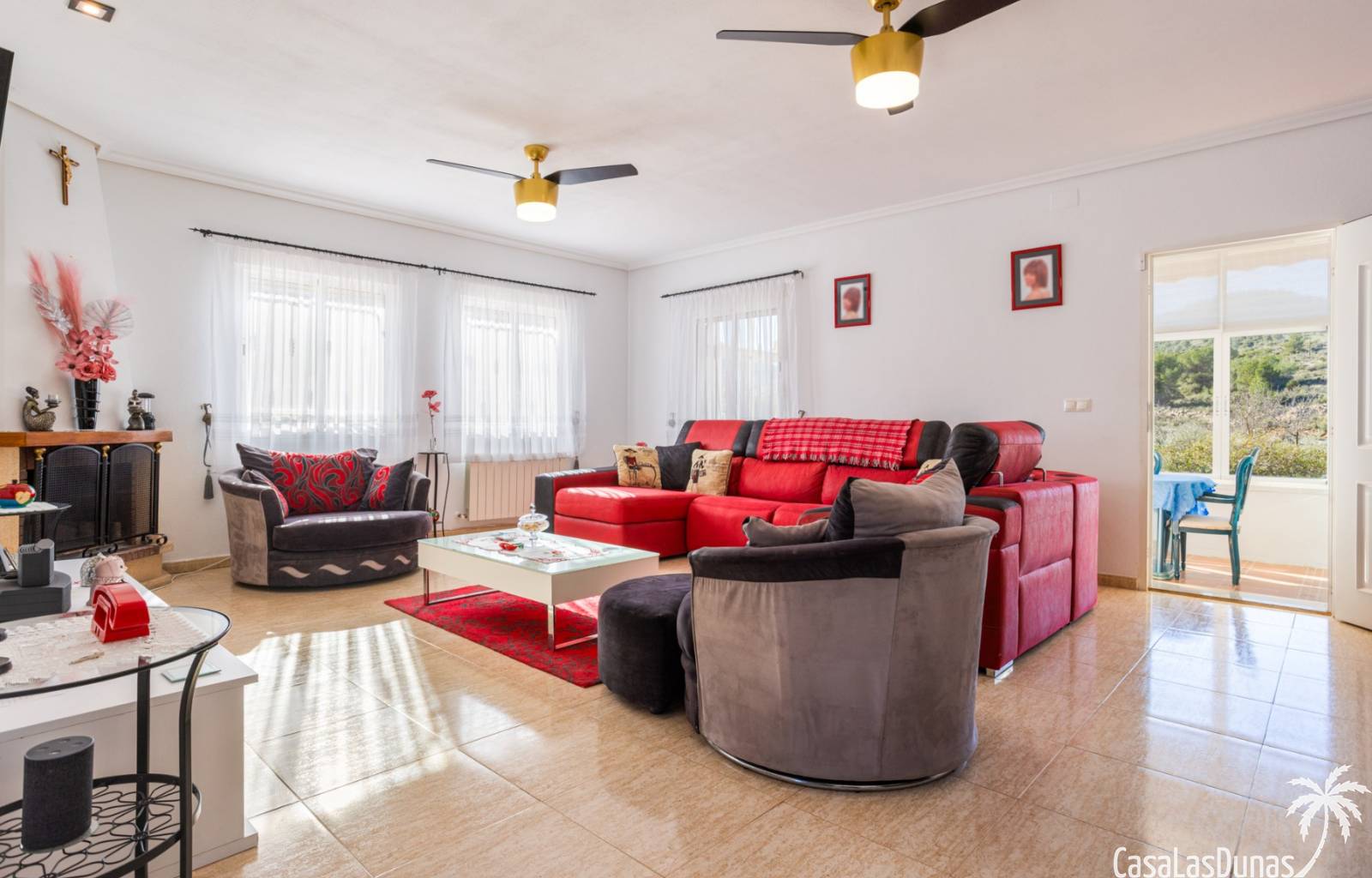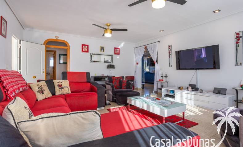 Le salon est l'un des atouts majeurs de la maison. Sa cheminée lui confère chaleur et caractère, en faisant un lieu idéal pour les mois plus frais. La maison est équipée de la climatisation, du chauffage central et d'un système de chauffage autonome, garantissant un confort optimal toute l'année. De plus, elle est vendue entièrement meublée et équipée de tous les appareils électroménagers, prête à emménager sans travaux.