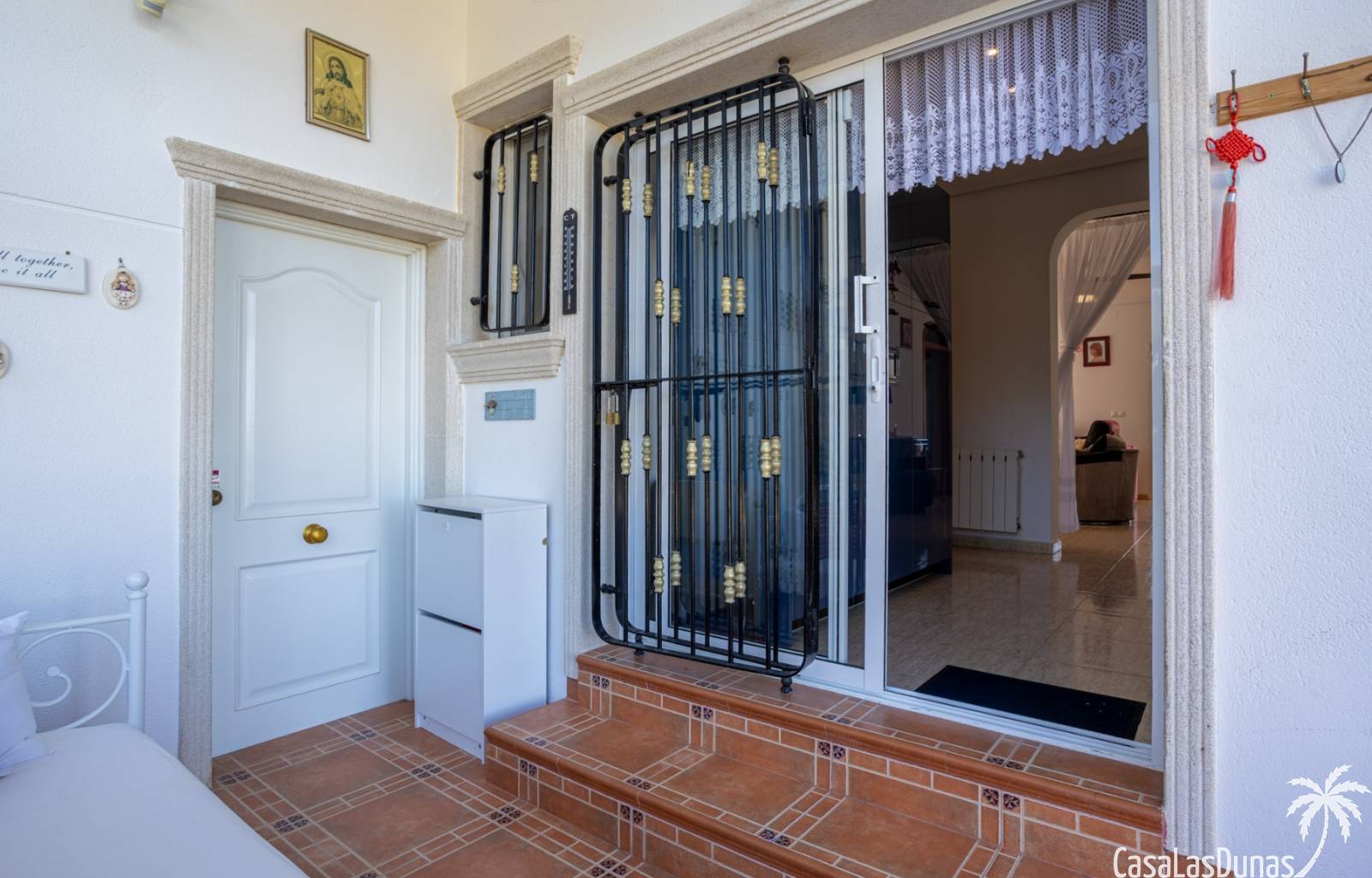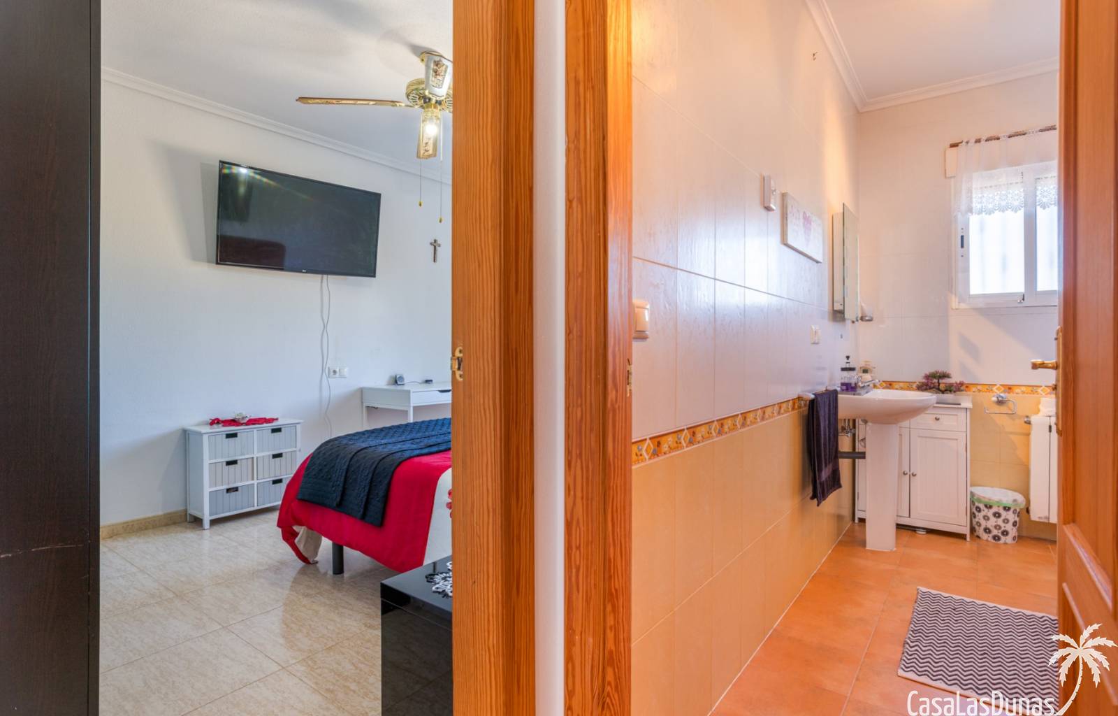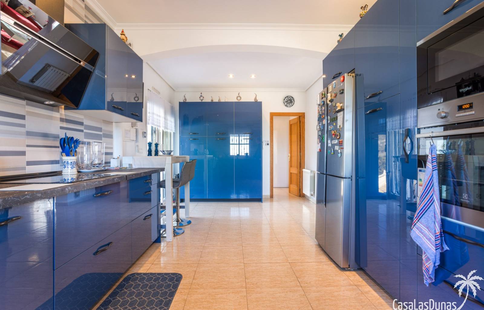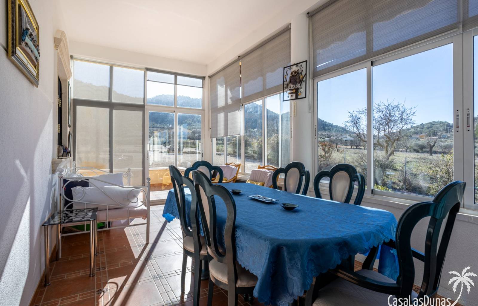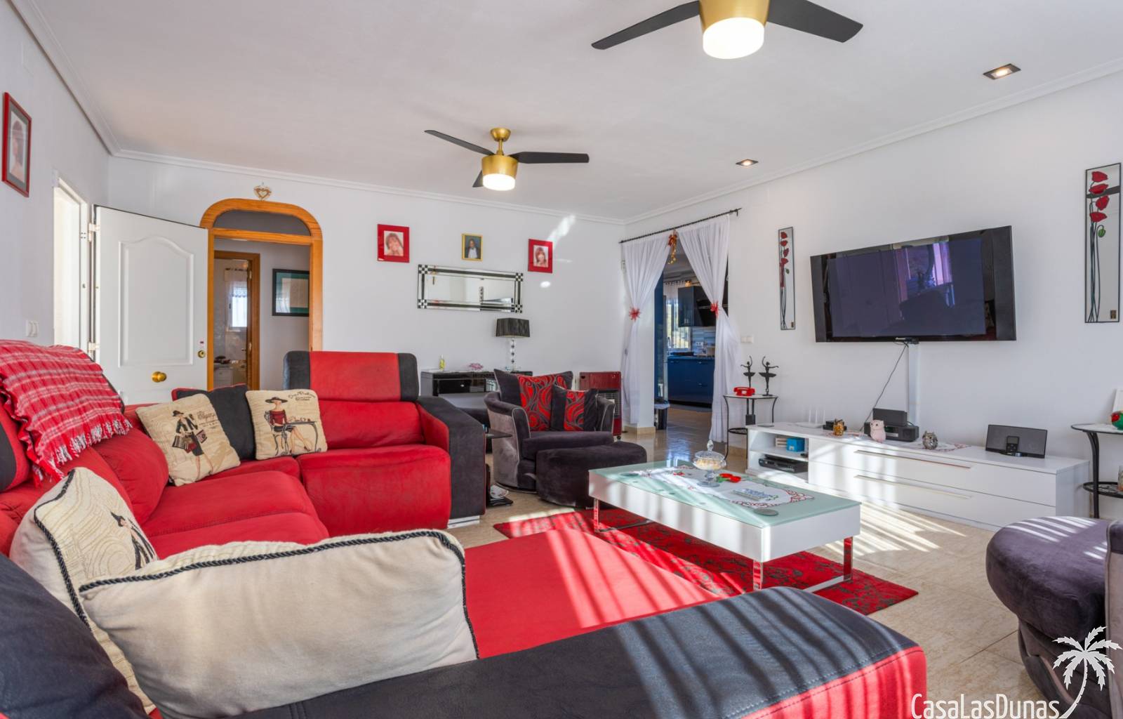 Le salon est l'un des atouts majeurs de la maison. Sa cheminée lui confère chaleur et caractère, en faisant un lieu idéal pour les mois plus frais. La maison est équipée de la climatisation, du chauffage central et d'un système de chauffage autonome, garantissant un confort optimal toute l'année. De plus, elle est vendue entièrement meublée et équipée de tous les appareils électroménagers, prête à emménager sans travaux.