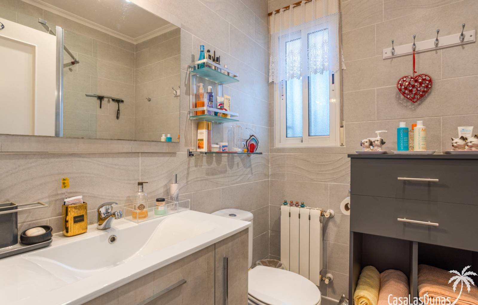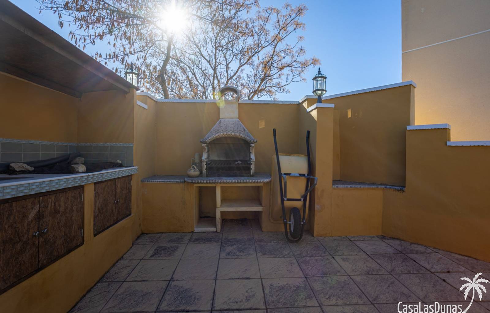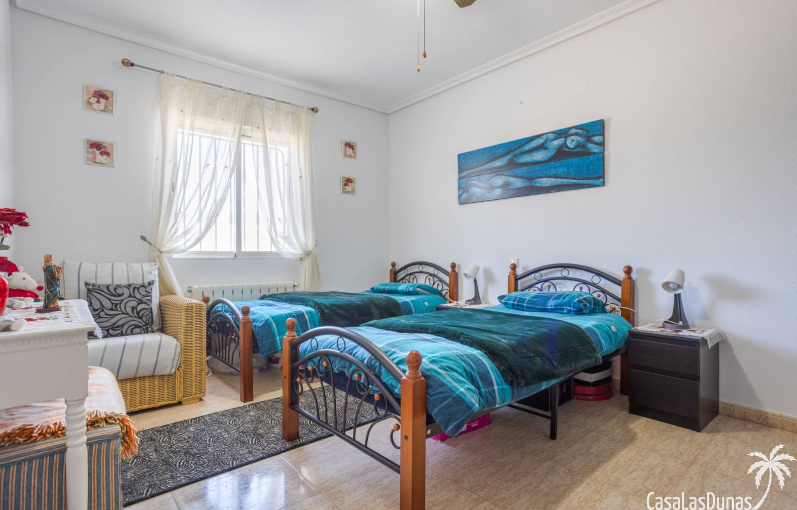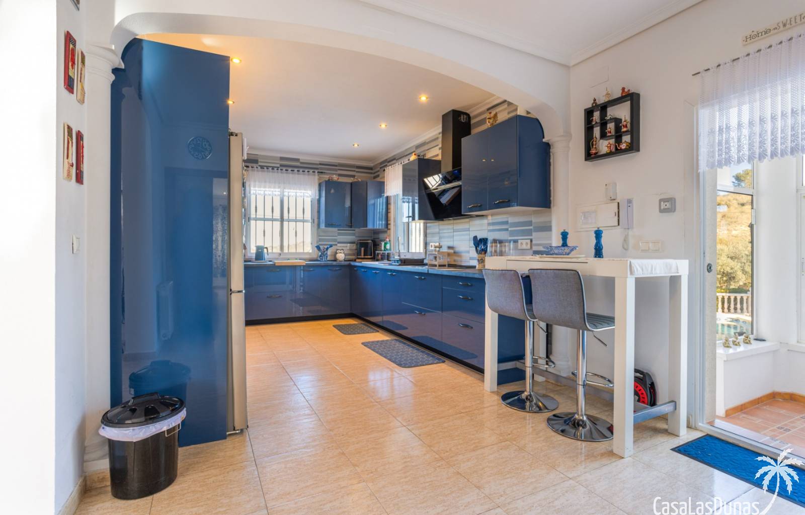 Le salon est l'un des atouts majeurs de la maison. Sa cheminée lui confère chaleur et caractère, en faisant un lieu idéal pour les mois plus frais. La maison est équipée de la climatisation, du chauffage central et d'un système de chauffage autonome, garantissant un confort optimal toute l'année. De plus, elle est vendue entièrement meublée et équipée de tous les appareils électroménagers, prête à emménager sans travaux.
