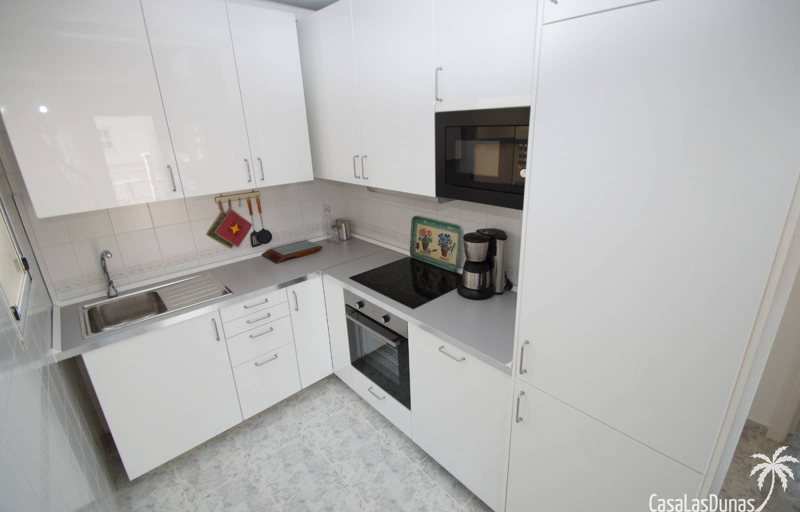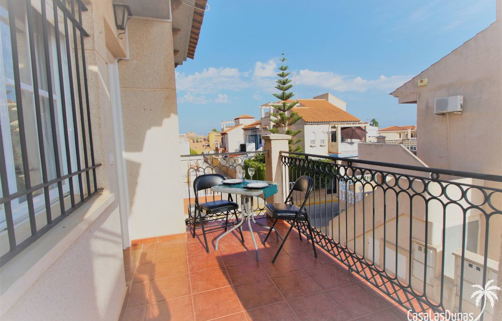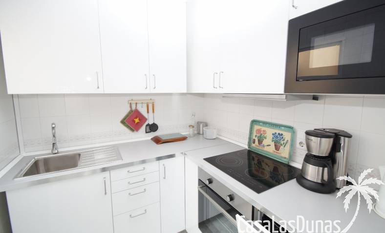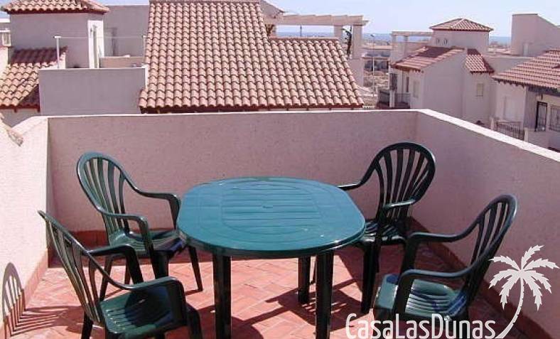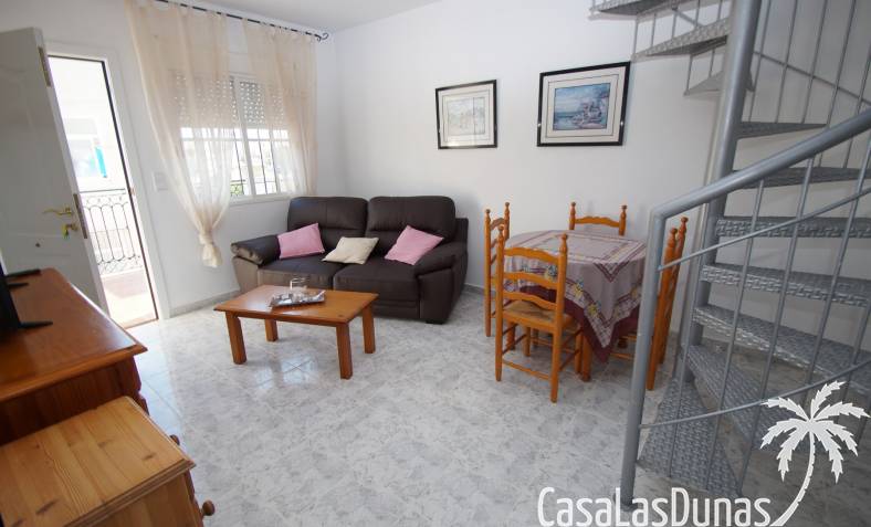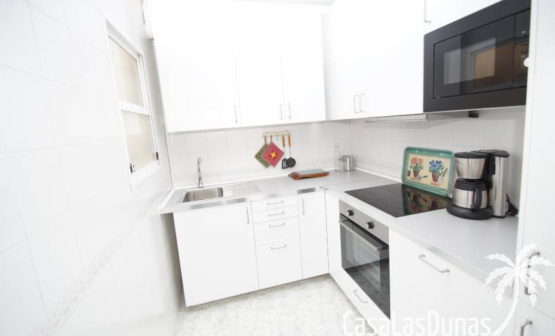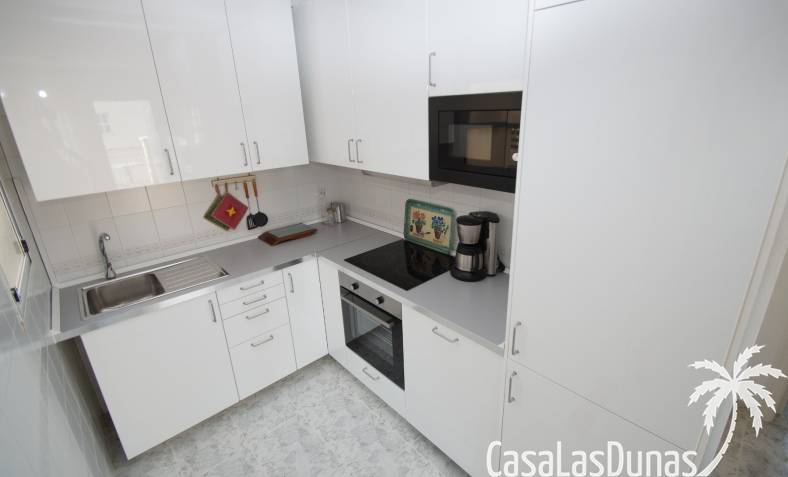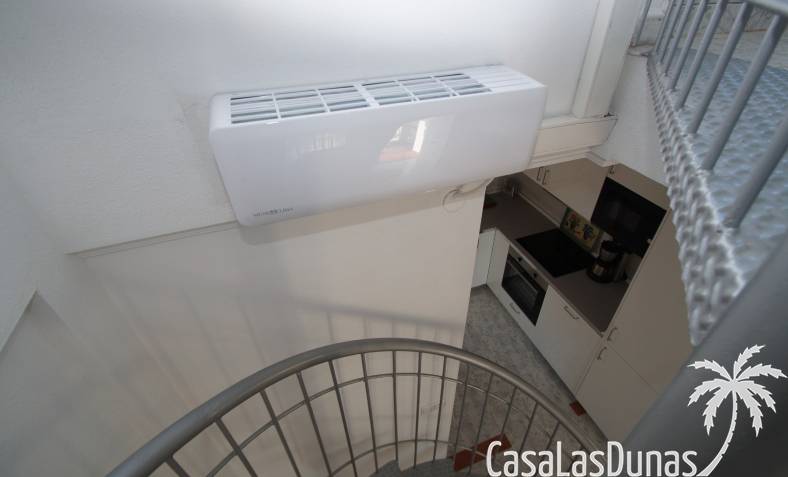 Bungalow au dernier étage avec un escalier intérieur menant à une terrasse privée sur le toit. Orienté plein sud, donc soleil en terrasse toute la journée. La maison a une nouvelle cuisine en 2020 et semble toute neuve. Vendu avec tous les meubles et électroménagers, sauf TV. La maison dispose d'une nouvelle climatisation dans le salon/cuisine.
