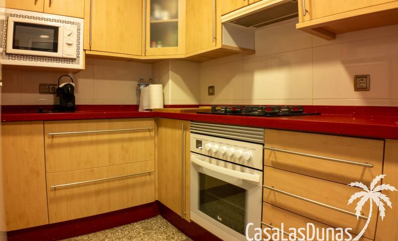 Il dispose de 2 salles de bains complètes, d’une cuisine indépendante entièrement équipée et d’un salon spacieux avec de grandes fenêtres donnant sur la terrasse.