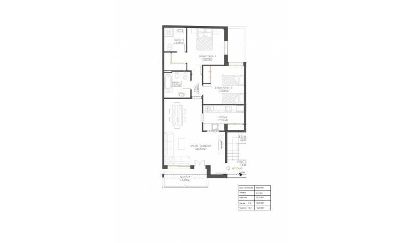 Le lotissement se compose de 13 maisons bien conçues, comprenant 2 chambres et 2 salles de bains, dont une en suite. Les acheteurs peuvent choisir entre des propriétés au rez-de-chaussée avec un patio privé ou des unités à l'étage supérieur avec une terrasse. Veuillez noter que le bâtiment ne dispose pas d'ascenseur, offrant ainsi un style de vie plus traditionnel dans un immeuble de faible hauteur. Toutes les maisons comprennent un solarium privé sur le toit, idéal pour prendre le soleil, se détendre ou profiter d'une vue imprenable sur les environs.