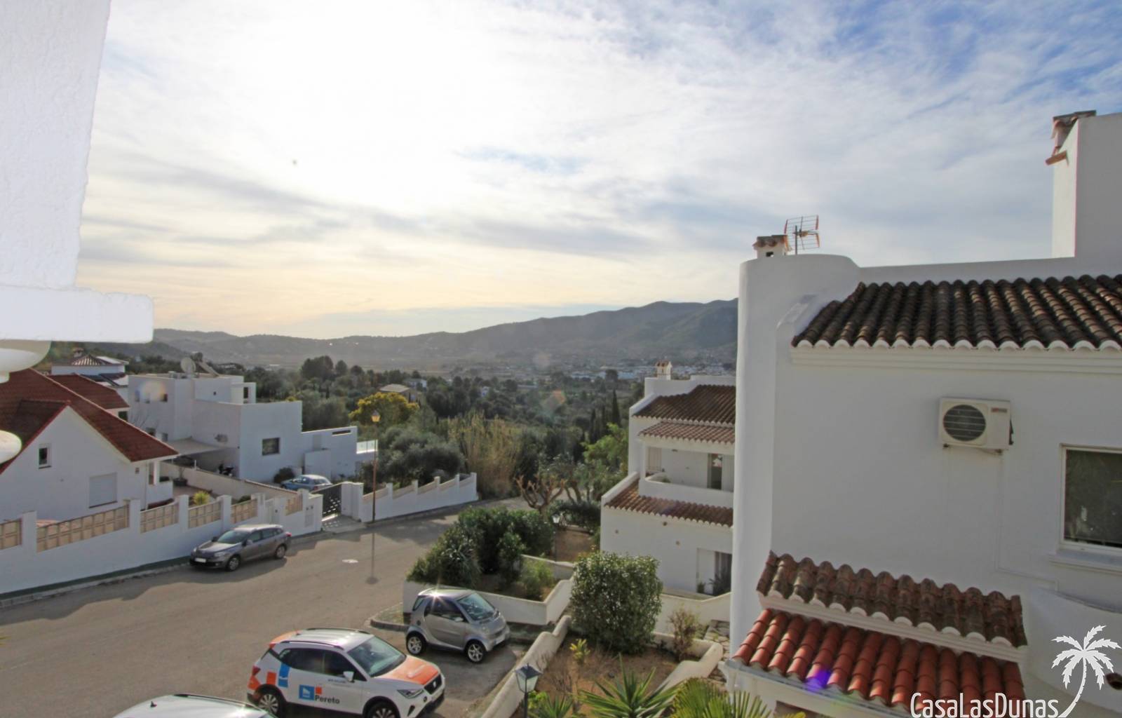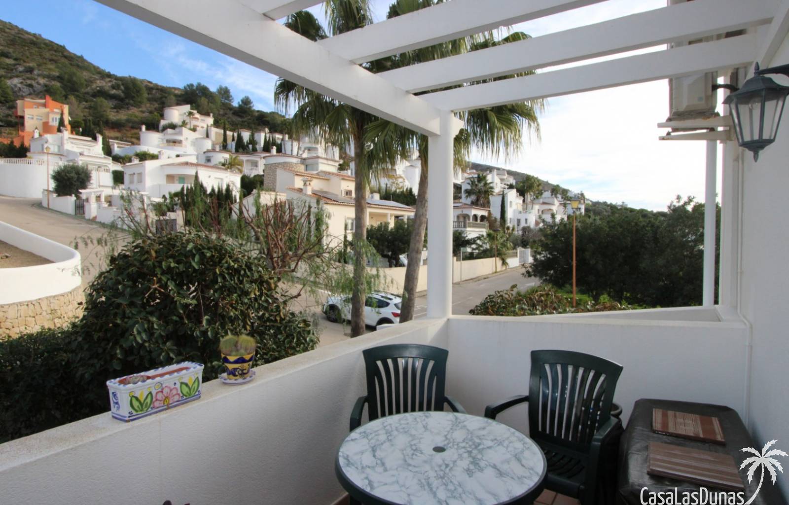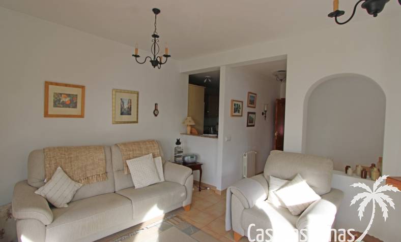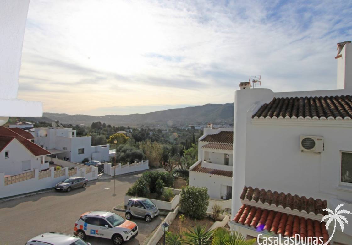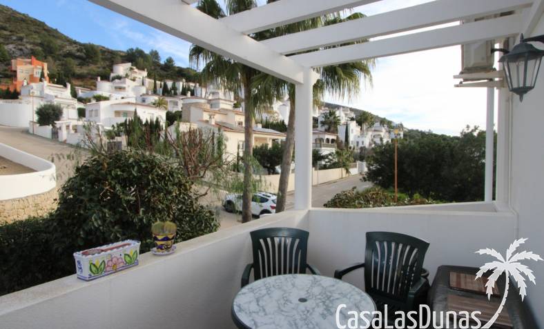 Cette charmante maison est située dans un quartier résidentiel agréable, à proximité de la charmante ville de Jalón, et offre une vue imprenable sur la vallée et les montagnes environnantes. Au rez-de-chaussée, vous trouverez un vaste séjour/salle à manger avec cheminée, climatisation, chauffage central, une cuisine entièrement équipée, une salle de bains et une chambre, avec accès direct à une terrasse couverte et à un jardin privatif magnifiquement entretenu. À l'étage, deux chambres avec placards intégrés, chacune donnant sur une terrasse et offrant une vue magnifique, ainsi qu'une deuxième salle de bains. La propriété est entièrement équipée avec double vitrage, climatisation, chauffage central, système d'alarme et parking privé au sein de la résidence. Le quartier résidentiel, très bien entretenu, propose une piscine récemment rénovée, des terrasses ensoleillées et une pelouse avec vue panoramique, idéale comme résidence principale ou secondaire.