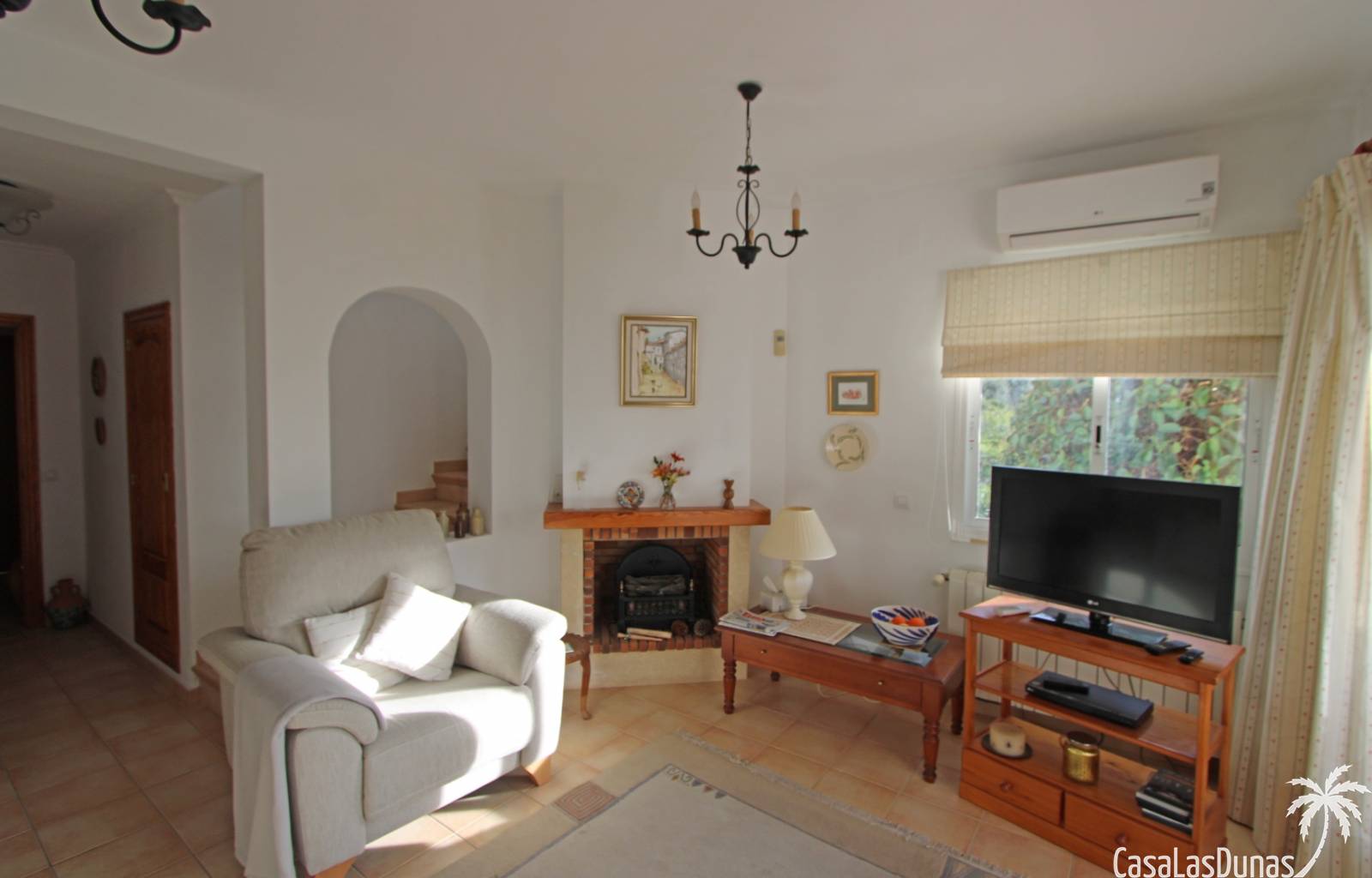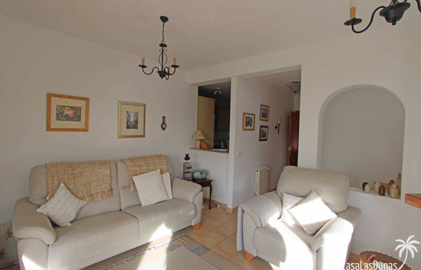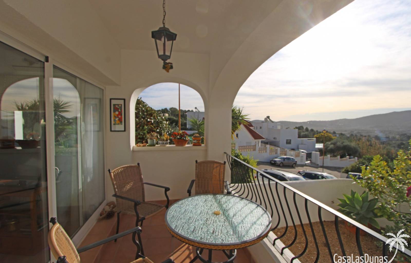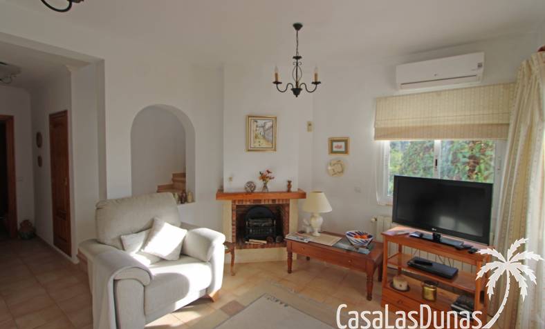 Cette charmante maison est située dans un quartier résidentiel agréable, à proximité de la charmante ville de Jalón, et offre une vue imprenable sur la vallée et les montagnes environnantes. Au rez-de-chaussée, vous trouverez un vaste séjour/salle à manger avec cheminée, climatisation, chauffage central, une cuisine entièrement équipée, une salle de bains et une chambre, avec accès direct à une terrasse couverte et à un jardin privatif magnifiquement entretenu. À l'étage, deux chambres avec placards intégrés, chacune donnant sur une terrasse et offrant une vue magnifique, ainsi qu'une deuxième salle de bains. La propriété est entièrement équipée avec double vitrage, climatisation, chauffage central, système d'alarme et parking privé au sein de la résidence. Le quartier résidentiel, très bien entretenu, propose une piscine récemment rénovée, des terrasses ensoleillées et une pelouse avec vue panoramique, idéale comme résidence principale ou secondaire.