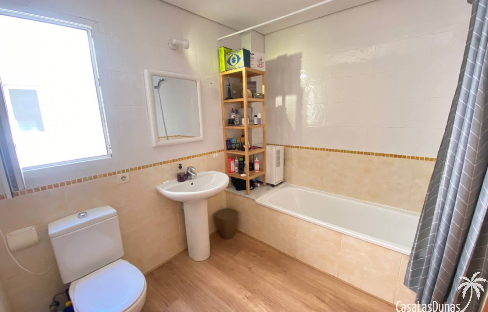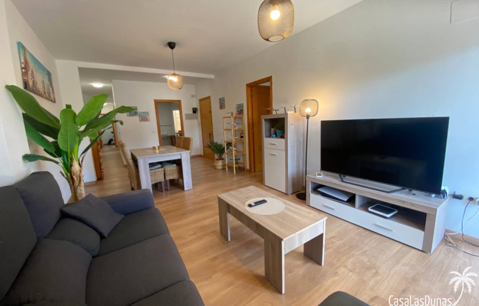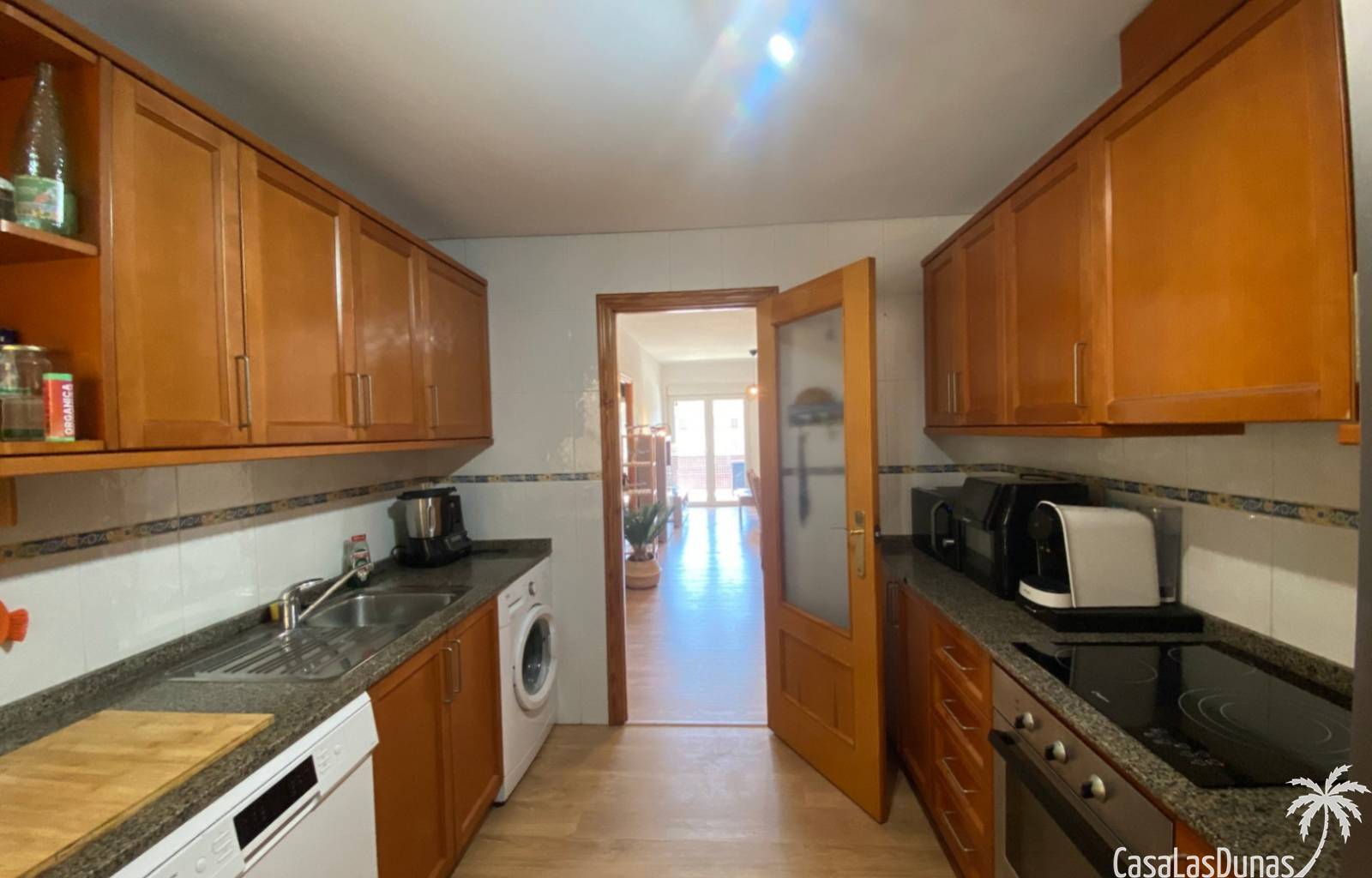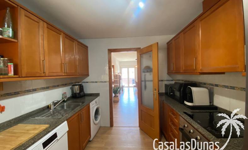 Ce magnifique penthouse de style méditerranéen, parfaitement entretenu, est situé dans un quartier calme de Jalon, à proximité immédiate de toutes les commodités. Il comprend trois chambres spacieuses et deux salles de bains, idéal pour les familles ou pour ceux qui apprécient un style de vie décontracté. Le lumineux séjour/salle à manger ouvert constitue le cœur de l'appartement et donne accès à une terrasse de 12 m² exposée plein sud, parfaite pour bronzer, prendre un petit-déjeuner en plein air ou dîner avec vue. La cuisine fonctionnelle s'intègre harmonieusement à l'espace de vie, tandis que les chambres offrent calme et intimité. Parmi les autres atouts, citons une place de parking privée dans l'immeuble, un grand espace de rangement et l'accès à une terrasse commune ensoleillée sur le toit. Commerces, cafés, restaurants et marché hebdomadaire se trouvent à proximité.