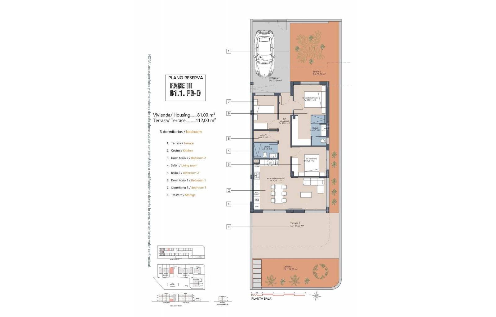 Le complexe se compose de 29 logements modernes de 2 ou 3 chambres, conçus avec des lignes architecturales épurées et des finitions de haute qualité. Les acheteurs peuvent choisir entre des appartements au rez-de-chaussée avec jardin et terrasse privés, des logements à l'étage intermédiaire avec terrasses spacieuses ou des penthouses avec terrasse privée et solarium sur le toit offrant une vue dégagée. La plupart des propriétés bénéficient d'une vue sur le Serena Golf et la Mar Menor, créant un cadre de vie calme et agréable.