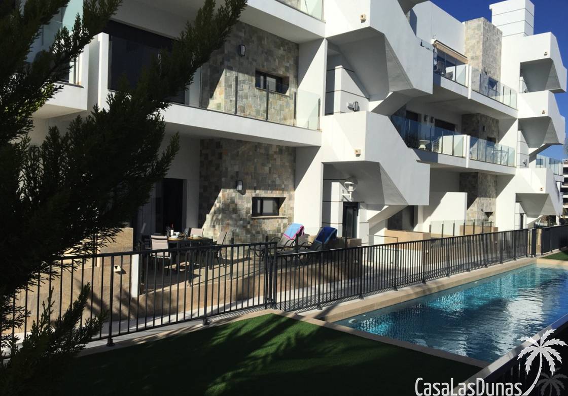 L'appartement dispose d'une belle piscine dans un magnifique cadre verdoyant. Que vous soyez jeune ou vieux, tout le monde appréciera cet appartement. La voiture dispose de sa propre place de parking et d'un débarras. Il suffit de marcher 5 minutes pour sentir la plage de sable d'Arenales del Sol sous vos pieds.