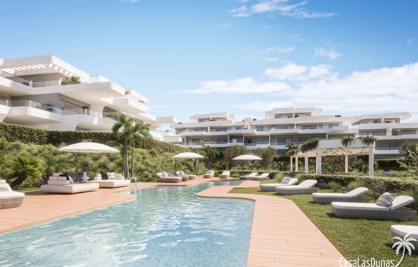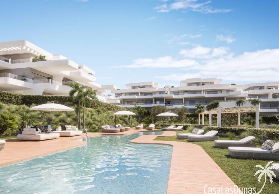 Vi välkomnar dig att ta en titt på detta fantastiska nybyggnadsprojekt som ligger i Estepona. Denna utveckling består av 40 lägenheter, uppbyggda av 5 trevåningshus. Du hittar fastigheter på bottenvåningen med trädgård och möjlighet att lägga in en privat pool, lägenheter på mitten med rymliga terrasser och takvåningar med stort solarium. Lägenheterna har stora, välplanerade innerutrymmen med stora fönster för att säkerställa naturligt ljus. Ljus, klimat och komfort kombinerat i en högkvalitativ utveckling med en elegant design. Varje bostad får en parkeringsplats och förråd som ingår i priset. De gemensamma utrymmena har utformats för att ge ett utrymme där du kan njuta och koppla av, för att avbryta din rutin och framför allt för att öka livskvaliteten. Du kommer att kunna välja mellan ett dopp i poolen, koppla av i den stora trädgården, göra yoga eller träna i utomhusgym... allt inom ett säkert och säkert område. Dessa hem har ett fantastiskt och centralt läge, eftersom det bara är 5 minuter med bil från Estepona, 10 minuter från Puerto Banús och 20 minuter från Marbella. Vill du veta mer om denna fantastiska utveckling? Tveka inte att höra av er till oss.