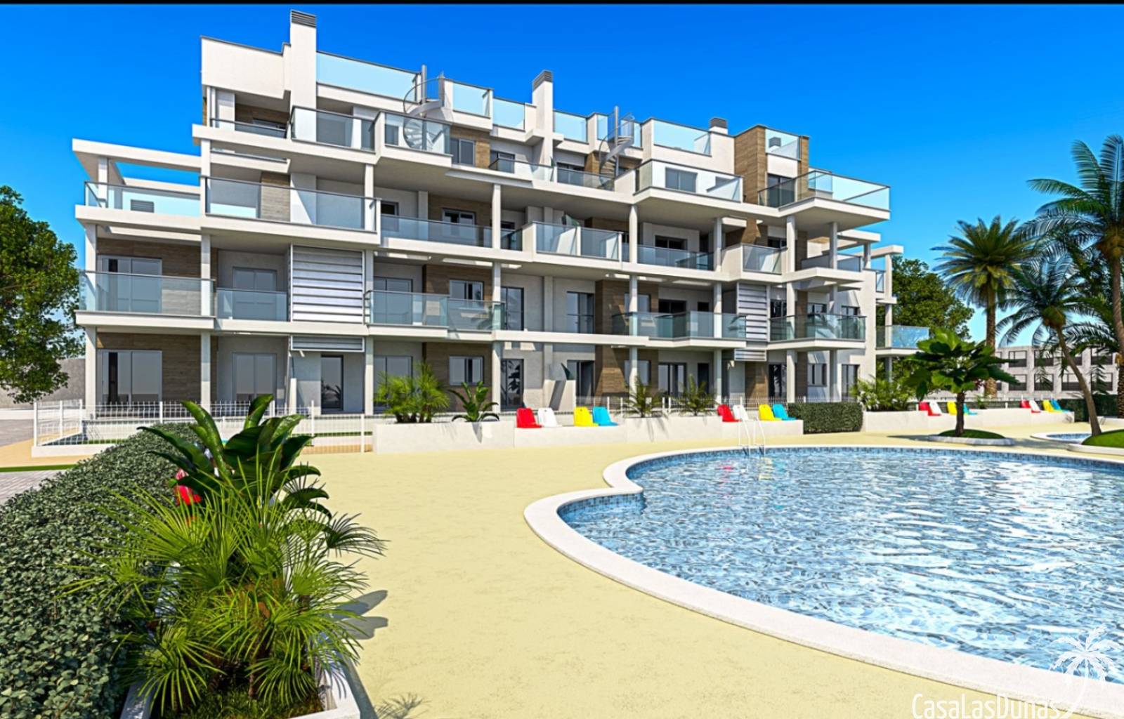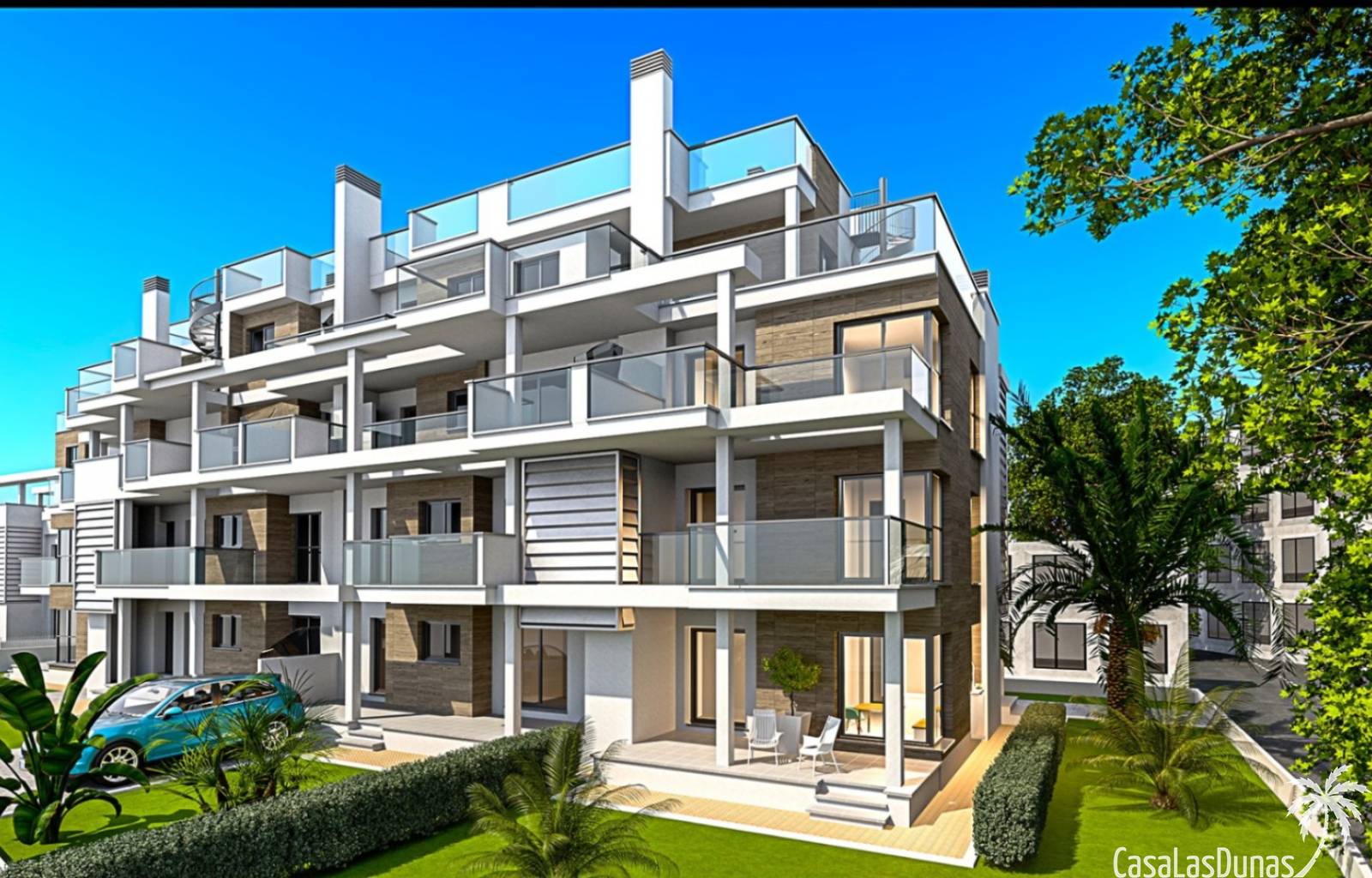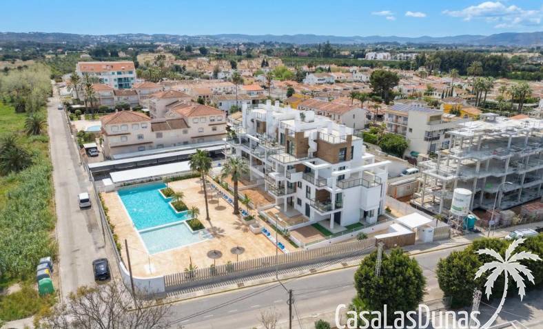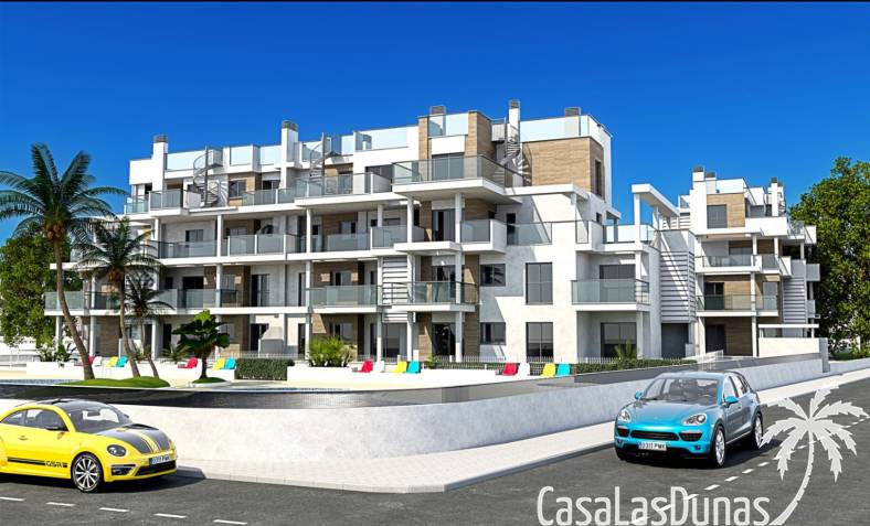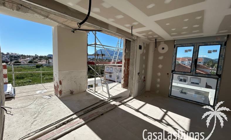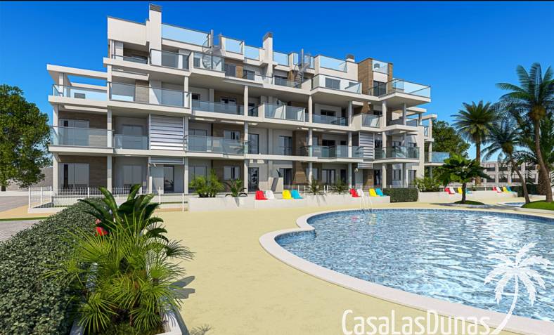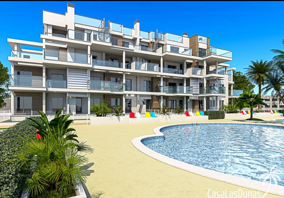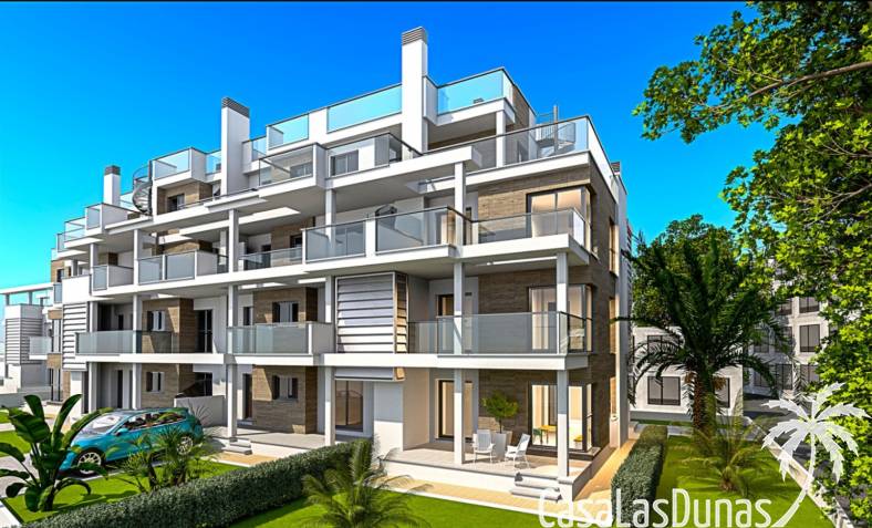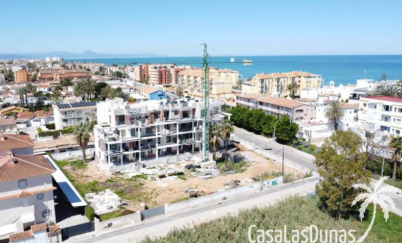 Denna nybyggda lägenhet på bottenvåningen har en privat trädgårdsterrass och byggs bara 100 meter från stranden och 2 km från centrum av Denia. Totalt kommer 29 lägenheter att byggas i två etapper. Bostäderna har stora fönster för att optimalt kunna njuta av utsikten och har rymliga terrasser. Det finns ett val mellan 2 och 3 sovrum och parkeringsplatser finns också tillgängliga. Anläggningen kommer att kompletteras med två pooler och ligger inom gångavstånd från alla bekvämligheter.