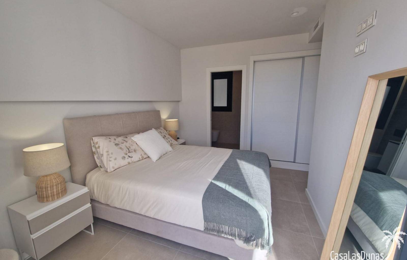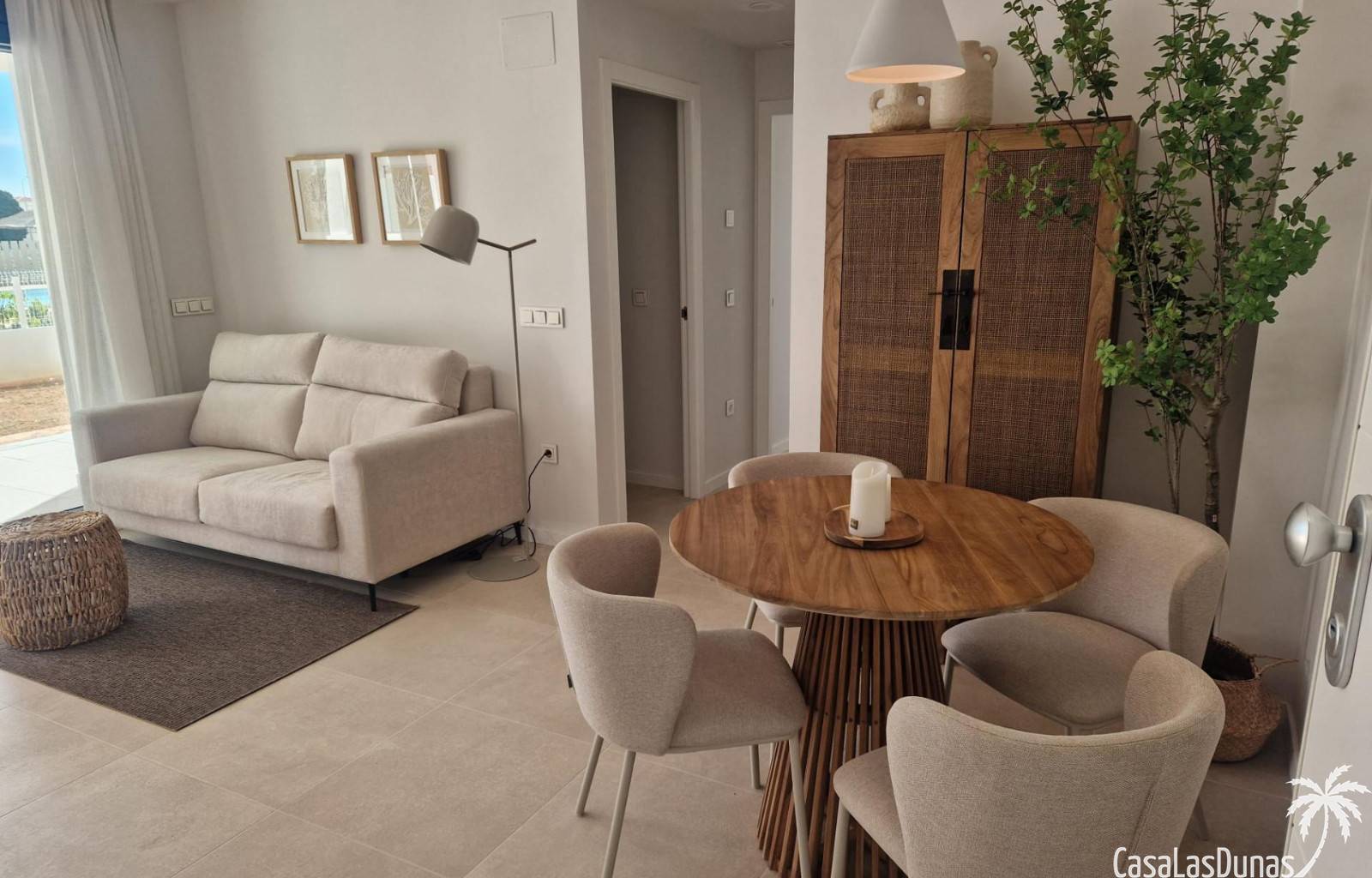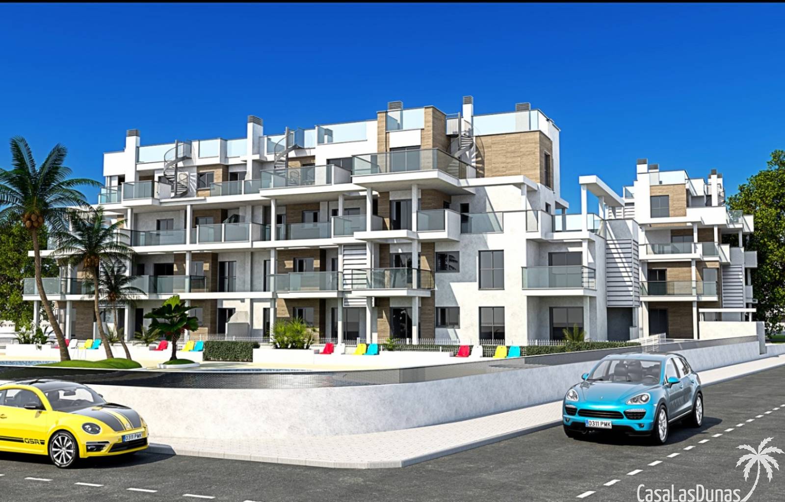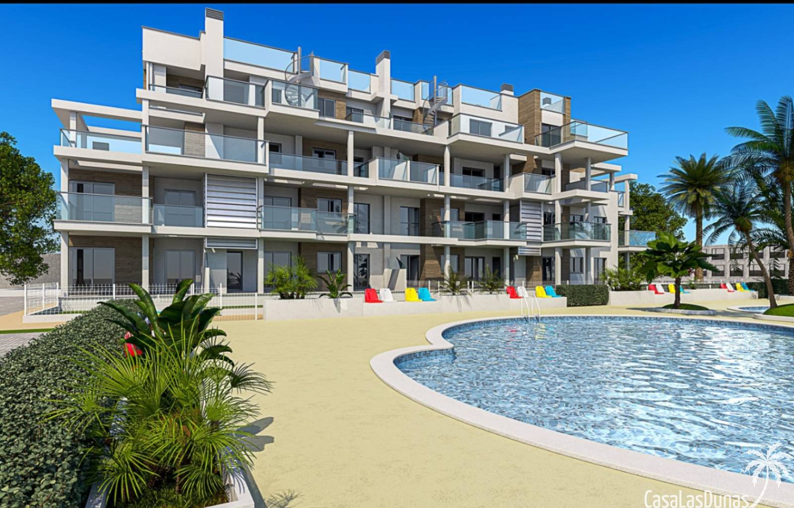Denna nybyggda lägenhet på bottenvåningen har en privat trädgårdsterrass och byggs bara 100 meter från stranden och 2 km från centrum av Denia. Totalt kommer 29 lägenheter att byggas i två etapper. Bostäderna har stora fönster för att optimalt kunna njuta av utsikten och har rymliga terrasser. Det finns ett val mellan 2 och 3 sovrum och parkeringsplatser finns också tillgängliga. Anläggningen kommer att kompletteras med två pooler och ligger inom gångavstånd från alla bekvämligheter.