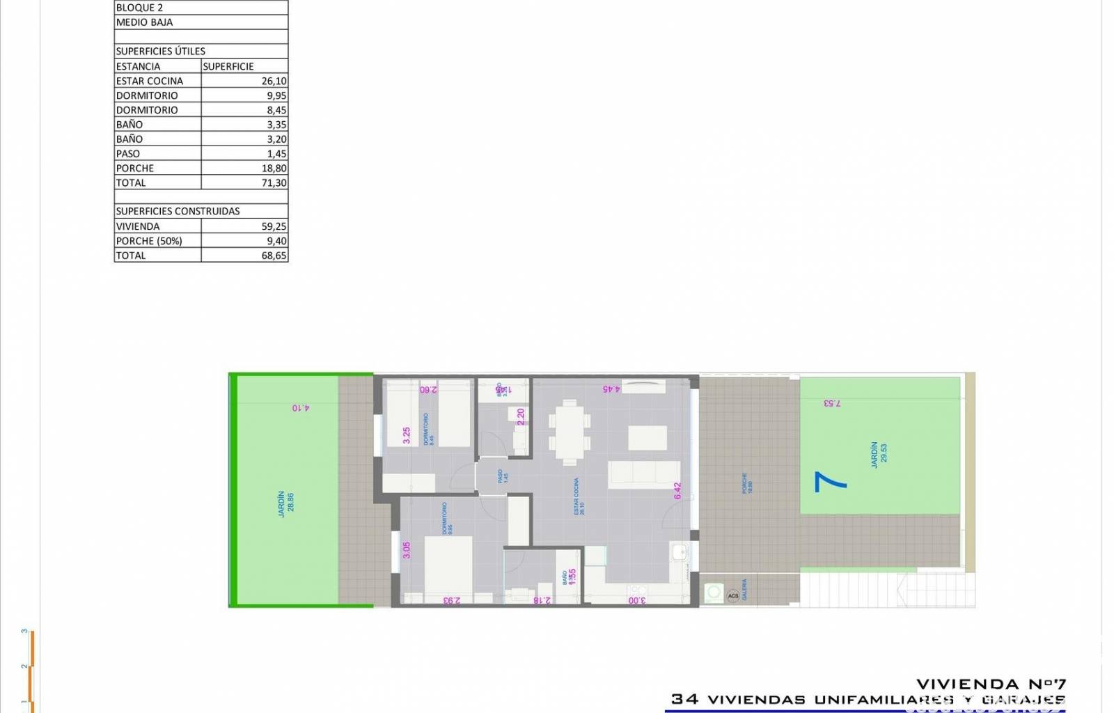 Nya bungalows med trädgård eller solterrass i Pilar